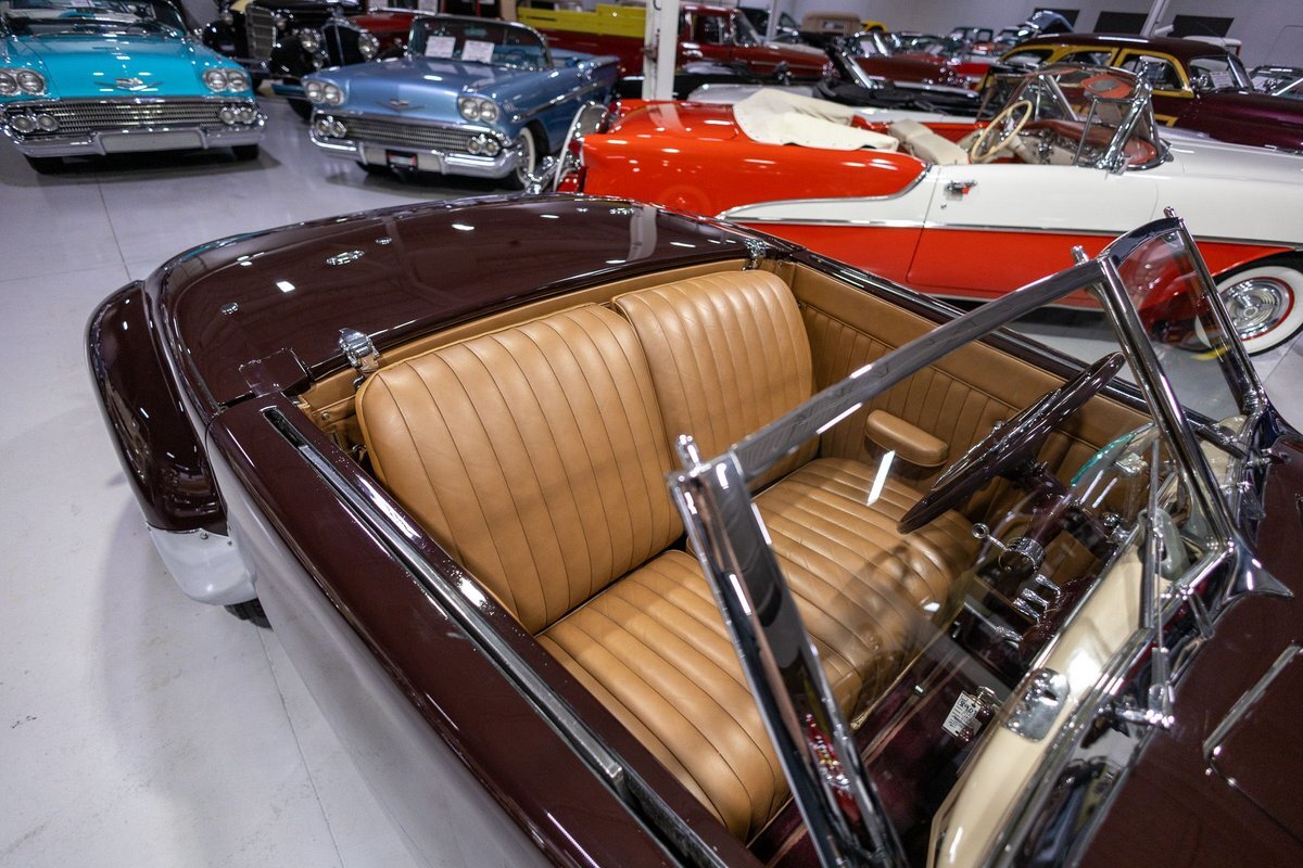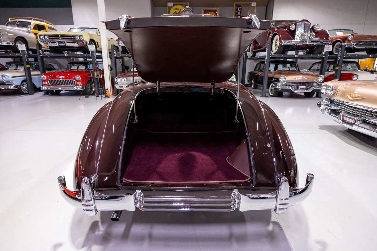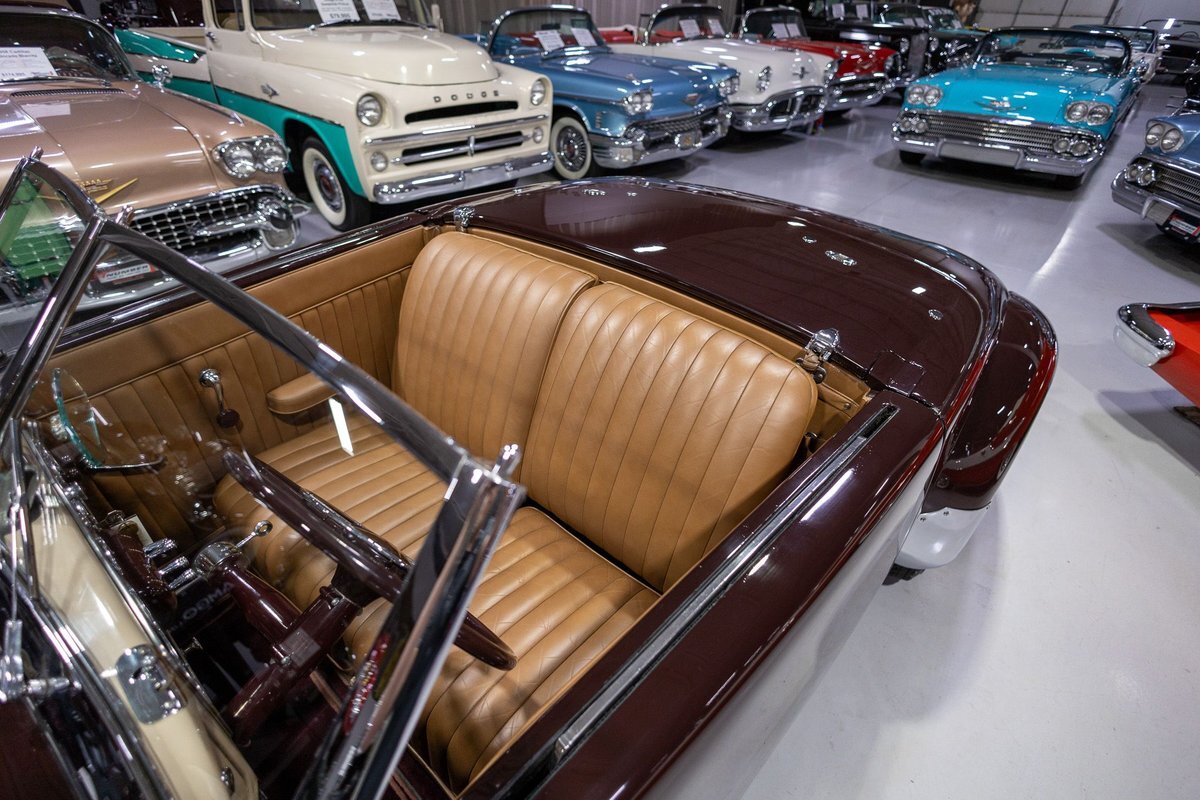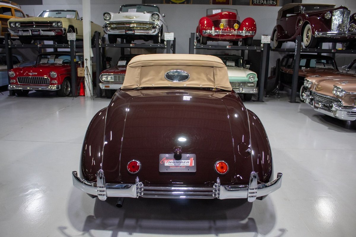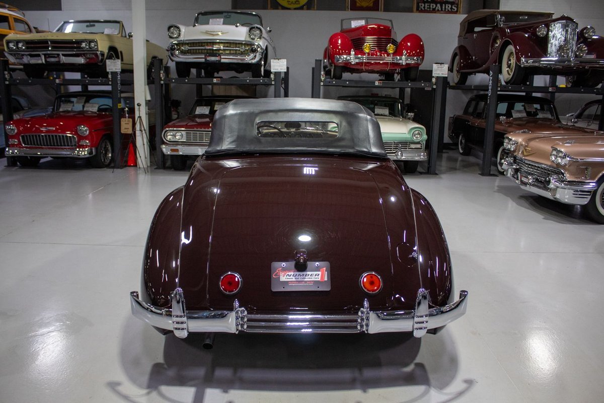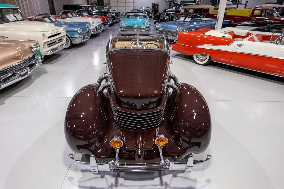 This 1937 Cord 812 Supercharged "Sportsman" Cabriolet is a beautiful, supercharged example of one of the most iconic and technologically advanced Pre-War cars ever produced. Established by namesake founder Errett Lobban "E.L." Cord in 1929, the Cord Corporation served as Mr. Cord's holding company for his automotive ventures, including his shares in the Auburn Automobile Company and Dusenberg, Inc., as well as engine builder, Lycoming Mfg. Co. To satisfy E.L. Cord's desire to produce his own namesake motor vehicle, Cord began producing the Cord L-29 in June of 1929 which served as a somewhat intermediate model sitting above the more affordably priced Auburn and below the top-of-the-line Duesenberg. Famously, the 1929 Cord L-29 beat out Ruxton to be "America's First Front-Drive Car;" however, in actuality, several automakers at the turn of the century had experimented with front wheel drive vehicles but none were particularly successful. Nonetheless, the 1929 release of the L-29 could not have come at a worse time, with the onset of the Great Depression starting in late 1929 and then continuing into 1930 and beyond. Consequently, Cord ceased production of the gorgeous L-29 at the end of 1931. By the mid-1930s however, the economy appeared as if it were beginning to recover from the horrific effects of the Depression and the Cord Corporation decided it was time to revive its novel front-wheel-drive automobiles, with a brand new design both inside and out. Styled by famed automobile designer Gordon Buehrig, the new Cord 810/812 models were essentially designed to be the "Baby Duesenberg" and featured an iconic "Coffin Nose" design. In addition to their unique style, the new Cord models are renowned for a number of revolutionary upgrades in automobile design including rear opening hoods, front wheel drive, "semi-automatic" transmissions, hide-away convertible tops, and "roll up headlights." Additionally, Cord's "coffin nose" front wheel drive design allowed for a lower ride height, which eliminated the need for running boards which would soon become obsolete across most American cars produced in the following decade or so. Of course, one of Cord's biggest innovations were introduced in 1937 with the incorporation of a supercharger that bumped the 812's horsepower from 125 to 170! In spite of all of the Cord's technological and design innovations, Cord's financial issues finally put a halt on production in August 1937, with the company producing a mere 2,992 810 and 812 models during its short run from 1936-1937. In total, a mere 2,992 "Coffin Nose" Cords were produced during their short production run from 1936 through 1937 and it is believed that just a handful of Supercharged "Sportsman" Cabriolet Convertible Coupes were produced in this configuration, which means that this particular example is quite a rare piece of automotive history. Due to its unique design, mechanical innovations, and overall rarity, the Classic Car Club of America (CCCA) has designated all Cord automobiles as Full Classics which means this '37 Cord 812 SC "Sportsman" is eligible to participate in CCCA events and CARavans. This particular example comes to us from the hands of a long line of prominent collectors, and most recently from an esteemed collection where it resided for a period of over ten years. Under the iconic, revolutionary rear-hinged hood on this '37 Cord 812 is a supercharged Lycoming 288.64 Cu. In. V8 fed by a single 2 barrel carburetor that together were said to have created an impressive 170 horsepower when new. The 289 Lycoming V8 is mated to a 4 speed manual transmission that shifted using the innovative remote controlled column-mounted pre-selector shifter. Unlike virtually all pre-war classic cars which were rear wheel drive, power is sent from the supercharged Lycoming powerplant via the transaxle to the front wheels on this front wheel drive Cord. This '37 Cord SC Sportsman rides on a set of wide whitewall bias-ply tires, accented with chrome wheelcovers and beauty rings which gives this convertible an upscale look whether parked at the local car show or cruising down the road. The luxurious look and feel of this 812 Sportsman Convertible is further supplemented with front and rear bumper guards and a pair of amber-lensed Cord-branded fog lights. In addition to the fog lamps, both headlights manually crank up and down which is one of the many technological and forward-thinking innovations of the Cord 810/812 series. This 1937 Sportsman is equipped with a manually operated beige cloth convertible soft top along with an accessory removable hardtop, both of which appear to be in wonderful condition. The exterior on this '37 Cord 812 Sportsman has been refinished in a beautiful Dark Thrust Brown paint that completes the stunning exterior look of the CCCA Full Classic. The interior on this 1937 Cord 812 Sportsman Convertible Coupe is absolutely gorgeous! The bench seat has been reupholstered with beautiful tan leather that provides a beautiful contrast from the rich exterior appearance. The matching upholstered door panels and armrests, along with the burgundy carpeting, dark ivory painted dash with its engine-turned instrument panel, and body color-matched steering wheel with chrome horn ring are all in fantastic condition as well and appear to be in their stock configuration. The instrument cluster features a wide array of instrumentation and gauges including a 150 MPH speedometer, 5,000 RPM tachometer, oil pressure gauge, temperature gauge, amp gauge, and fuel gauge. The dash is completed with an AM radio and full-size clock, as well as with a pair of locking gloveboxes that straddle the instrument panel. Whether you're buying your first full classic car or you're an established ACD or CCCA collector, this 1937 Cord 812 "Sportsman" Cabriolet would make an excellent choice. Give Ellingson's a call today at763-428-7337!