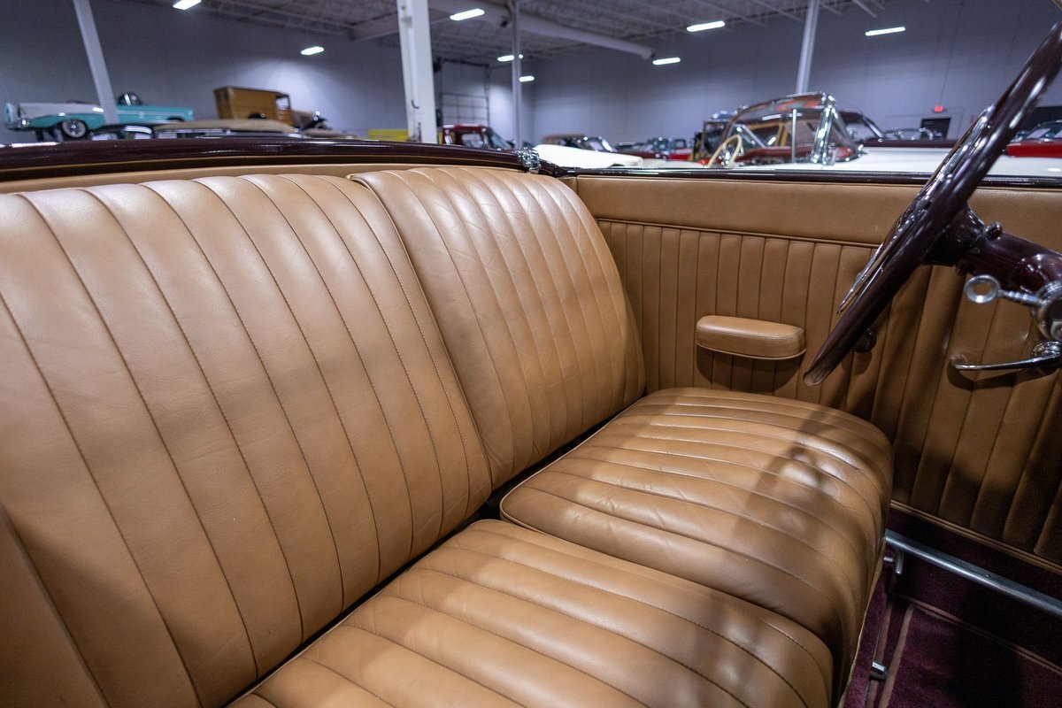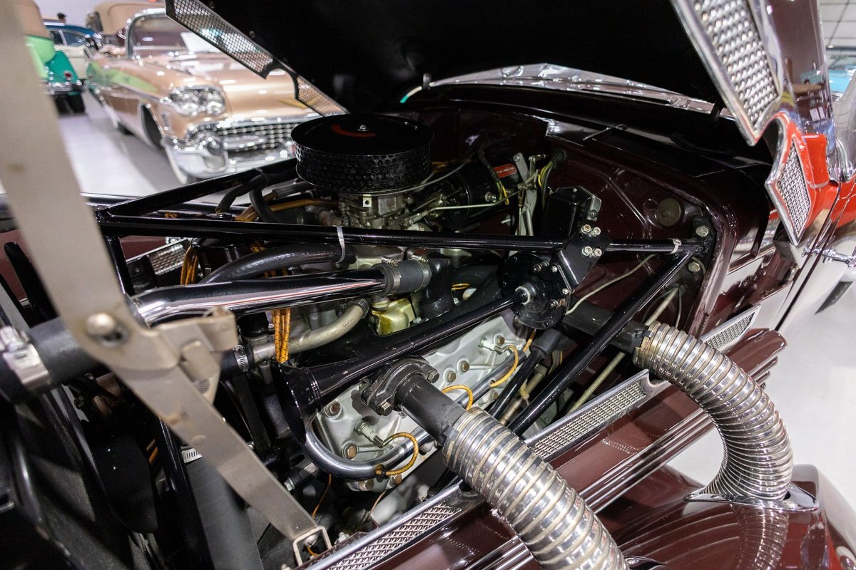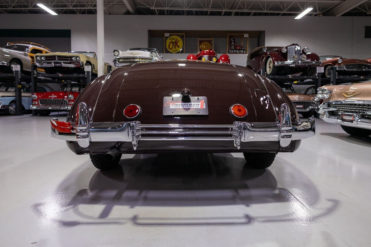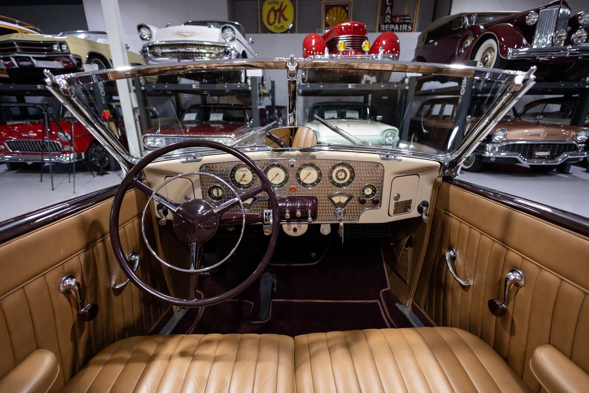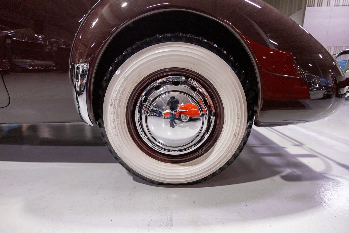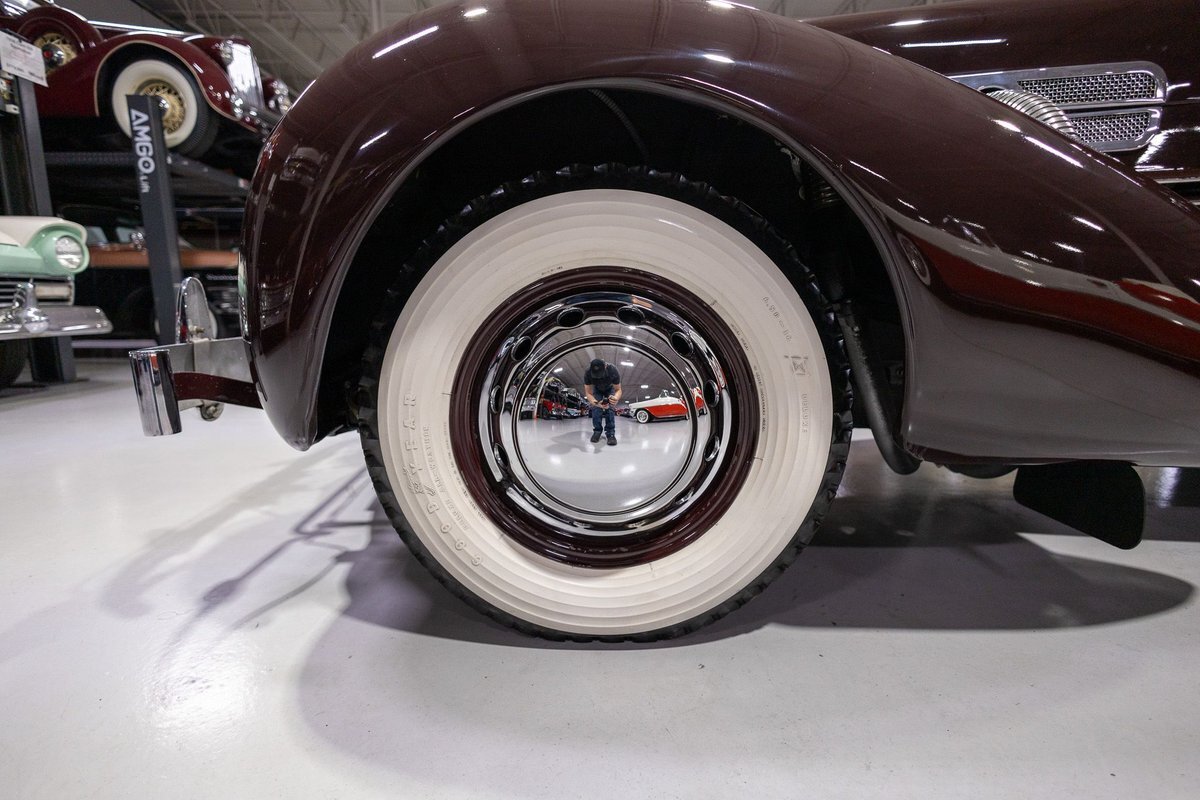 This 1937 Cord 812 Supercharged "Sportsman" Cabriolet is a beautiful, supercharged example of one of the most iconic and technologically advanced Pre-War cars ever produced. Established by namesake founder Errett Lobban "E.L." Cord in 1929, the Cord Corporation served as Mr. Cord's holding company for his automotive ventures, including his shares in the Auburn Automobile Company and Dusenberg, Inc., as well as engine builder, Lycoming Mfg. Co. To satisfy E.L. Cord's desire to produce his own namesake motor vehicle, Cord began producing the Cord L-29 in June of 1929 which served as a somewhat intermediate model sitting above the more affordably priced Auburn and below the top-of-the-line Duesenberg. Famously, the 1929 Cord L-29 beat out Ruxton to be "America's First Front-Drive Car;" however, in actuality, several automakers at the turn of the century had experimented with front wheel drive vehicles but none were particularly successful. Nonetheless, the 1929 release of the L-29 could not have come at a worse time, with the onset of the Great Depression starting in late 1929 and then continuing into 1930 and beyond. Consequently, Cord ceased production of the gorgeous L-29 at the end of 1931. By the mid-1930s however, the economy appeared as if it were beginning to recover from the horrific effects of the Depression and the Cord Corporation decided it was time to revive its novel front-wheel-drive automobiles, with a brand new design both inside and out. Styled by famed automobile designer Gordon Buehrig, the new Cord 810/812 models were essentially designed to be the "Baby Duesenberg" and featured an iconic "Coffin Nose" design. In addition to their unique style, the new Cord models are renowned for a number of revolutionary upgrades in automobile design including rear opening hoods, front wheel drive, "semi-automatic" transmissions, hide-away convertible tops, and "roll up headlights." Additionally, Cord's "coffin nose" front wheel drive design allowed for a lower ride height, which eliminated the need for running boards which would soon become obsolete across most American cars produced in the following decade or so. Of course, one of Cord's biggest innovations were introduced in 1937 with the incorporation of a supercharger that bumped the 812's horsepower from 125 to 170! In spite of all of the Cord's technological and design innovations, Cord's financial issues finally put a halt on production in August 1937, with the company producing a mere 2,992 810 and 812 models during its short run from 1936-1937. In total, a mere 2,992 "Coffin Nose" Cords were produced during their short production run from 1936 through 1937 and it is believed that just a handful of Supercharged "Sportsman" Cabriolet Convertible Coupes were produced in this configuration, which means that this particular example is quite a rare piece of automotive history. Due to its unique design, mechanical innovations, and overall rarity, the Classic Car Club of America (CCCA) has designated all Cord automobiles as Full Classics which means this '37 Cord 812 SC "Sportsman" is eligible to participate in CCCA events and CARavans. This particular example comes to us from the hands of a long line of prominent collectors, and most recently from an esteemed collection where it resided for a period of over ten years. Under the iconic, revolutionary rear-hinged hood on this '37 Cord 812 is a supercharged Lycoming 288.64 Cu. In. V8 fed by a single 2 barrel carburetor that together were said to have created an impressive 170 horsepower when new. The 289 Lycoming V8 is mated to a 4 speed manual transmission that shifted using the innovative remote controlled column-mounted pre-selector shifter. Unlike virtually all pre-war classic cars which were rear wheel drive, power is sent from the supercharged Lycoming powerplant via the transaxle to the front wheels on this front wheel drive Cord. This '37 Cord SC Sportsman rides on a set of wide whitewall bias-ply tires, accented with chrome wheelcovers and beauty rings which gives this convertible an upscale look whether parked at the local car show or cruising down the road. The luxurious look and feel of this 812 Sportsman Convertible is further supplemented with front and rear bumper guards and a pair of amber-lensed Cord-branded fog lights. In addition to the fog lamps, both headlights manually crank up and down which is one of the many technological and forward-thinking innovations of the Cord 810/812 series. This 1937 Sportsman is equipped with a manually operated beige cloth convertible soft top along with an accessory removable hardtop, both of which appear to be in wonderful condition. The exterior on this '37 Cord 812 Sportsman has been refinished in a beautiful Dark Thrust Brown paint that completes the stunning exterior look of the CCCA Full Classic. The interior on this 1937 Cord 812 Sportsman Convertible Coupe is absolutely gorgeous! The bench seat has been reupholstered with beautiful tan leather that provides a beautiful contrast from the rich exterior appearance. The matching upholstered door panels and armrests, along with the burgundy carpeting, dark ivory painted dash with its engine-turned instrument panel, and body color-matched steering wheel with chrome horn ring are all in fantastic condition as well and appear to be in their stock configuration. The instrument cluster features a wide array of instrumentation and gauges including a 150 MPH speedometer, 5,000 RPM tachometer, oil pressure gauge, temperature gauge, amp gauge, and fuel gauge. The dash is completed with an AM radio and full-size clock, as well as with a pair of locking gloveboxes that straddle the instrument panel. Whether you're buying your first full classic car or you're an established ACD or CCCA collector, this 1937 Cord 812 "Sportsman" Cabriolet would make an excellent choice. Give Ellingson's a call today at763-428-7337!