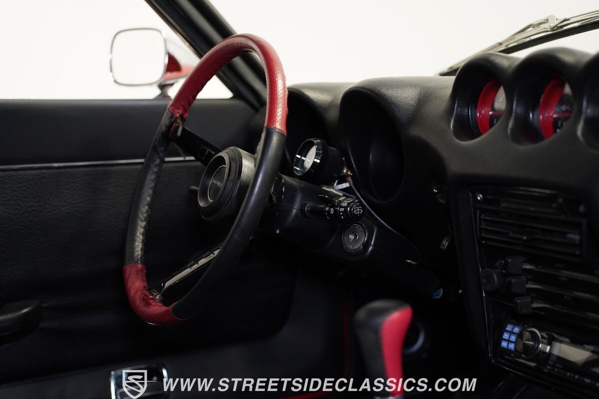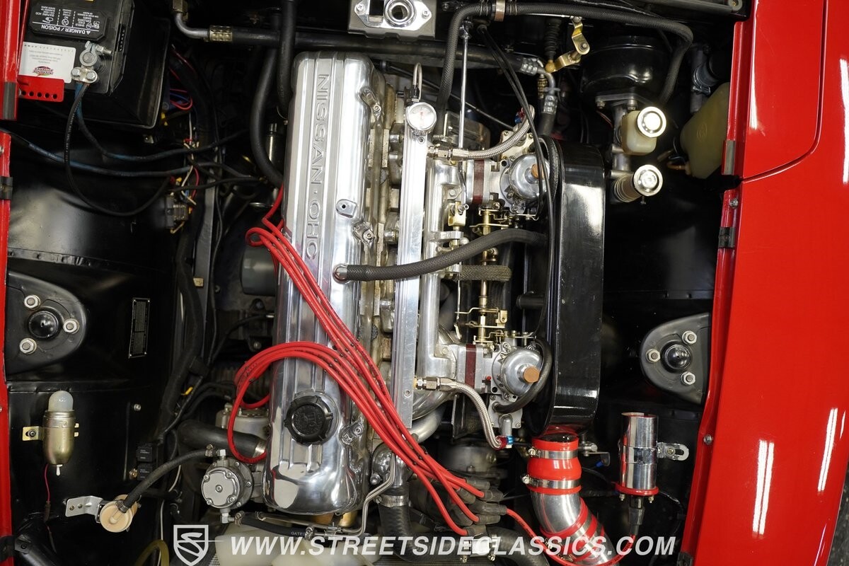 The 2.8L L28 powerplant sourced from a 280Z. Rebuilt with an overbore, flat-top pistons, and mated to 280ZX heads. Dual SU carbs, a custom fresh air intake, and an aluminum radiator keep it breathing deep and running cool. The power flows through a rebuilt 280Z 5-speed manual trans and rear end, both ready to handle whatever you throw at them. Eibach springs, KYB struts, Energy Suspension bushings, upgraded sway bars, and coilovers ensure this Z corners like it's on rails. And when it's time to rein it in, the Toyota 4x4 pickup twin-piston calipers up front and power drums out back have your back.