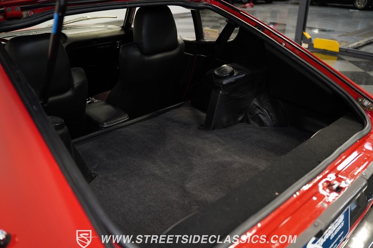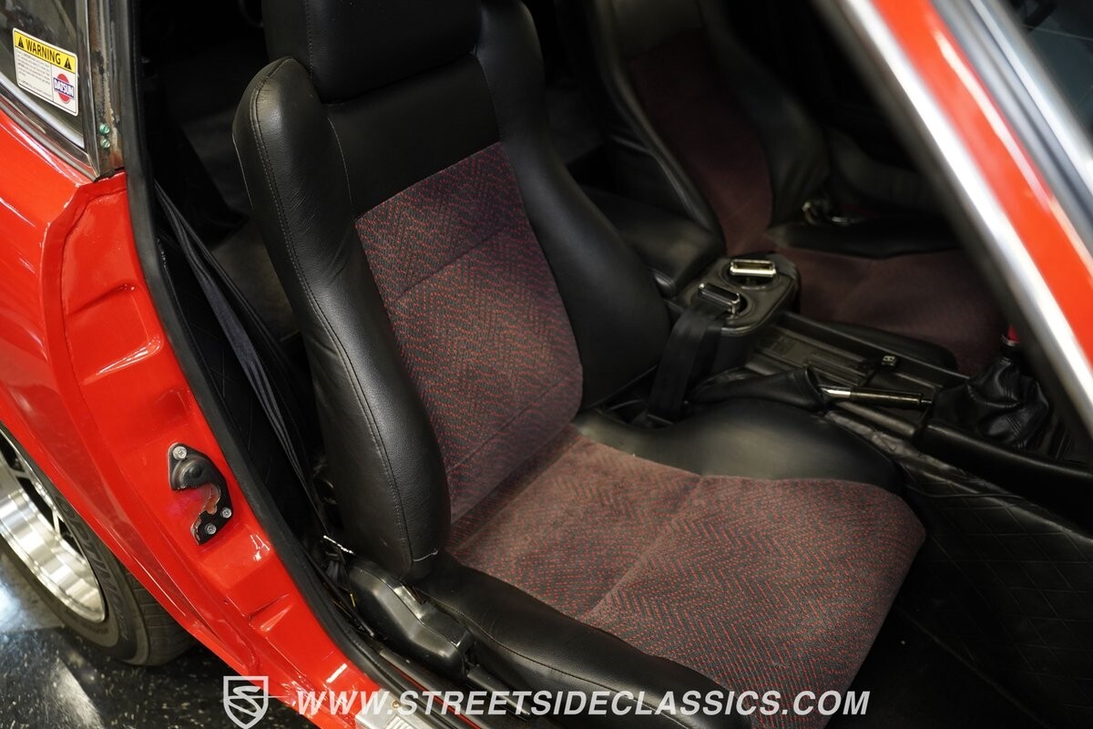 As you open the door, you're welcomed by a masterfully modernized interior. The confetti-patterned bucket seats from a '91 CRX hug you tight, while the black and red vinyl-clad steering wheel and shift knob beg to be gripped. The Alpine stereo, fat mat sound deadening, and strategically placed speakers create an immersive audio experience. Keep an eye on the AEM AFR gauge, cleverly mounted on the steering column, to stay in tune with your ride's performance.