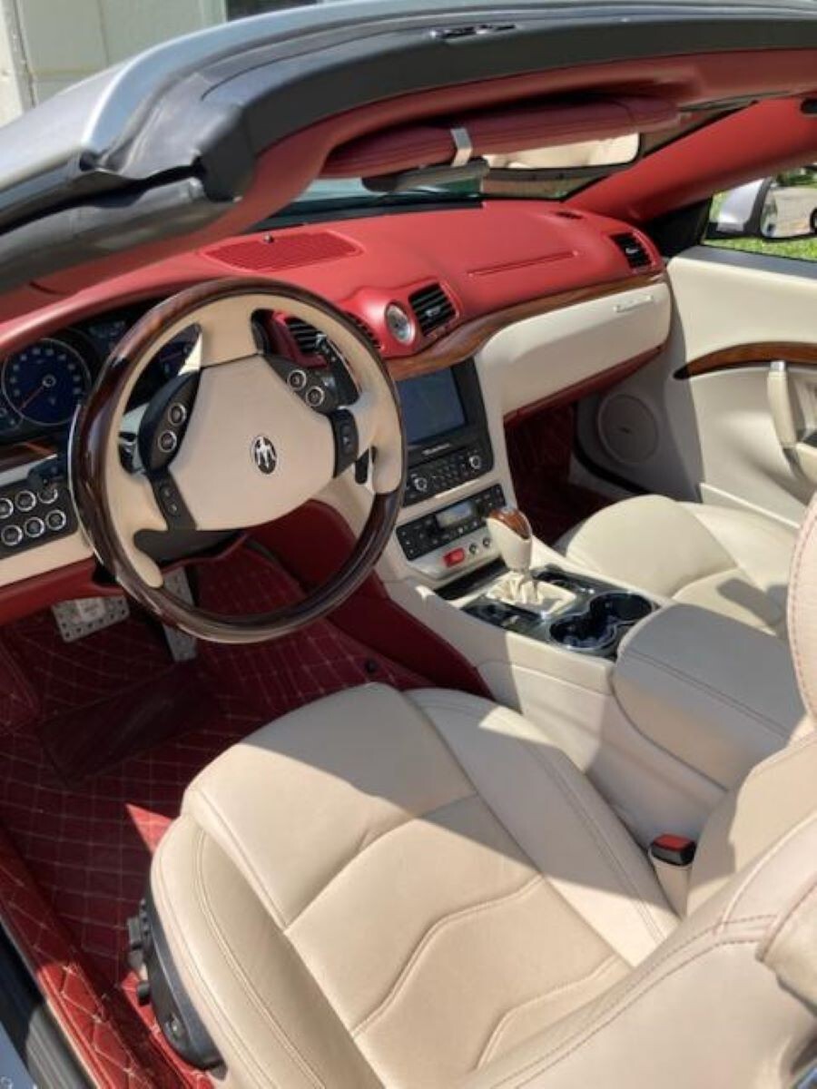 2015 Maserati Gran Turismo Ferrari V8. Special ordered Silver and Burgundy Cream with matching rugs and top. Always garaged kept. Absolutely "as new" condition. Front and rear parking sensors. Fresh synthetic oil change, two remotes, books, no smoke, original paint, clean title. Vehicle has a reserve of $49,500.00.