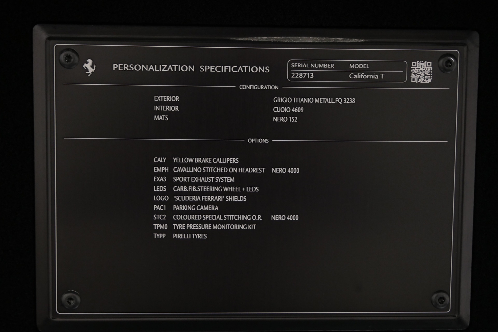 We have just added to our extensive exotic car inventory a beautiful 2018 Ferrari California T in Grigio Titanio with Cuoio leather interior and only 6,002 miles. This California is equipped with: 3.9L twin turbo V8, F1 transmission, machine finish forged sport wheels, yellow brake calipers, Scuderia shields, sport exhaust system, carbon fiber and leather steering wheel with LED's, full electric seats, 2+2 seating, black rev counter, cruise control, contrasting stitching in Nero, Cavallinos embroidered in headrests in Nero, navigation, front and rear parking sensors with rear camera, car cover, battery charger, floor mats and much more.