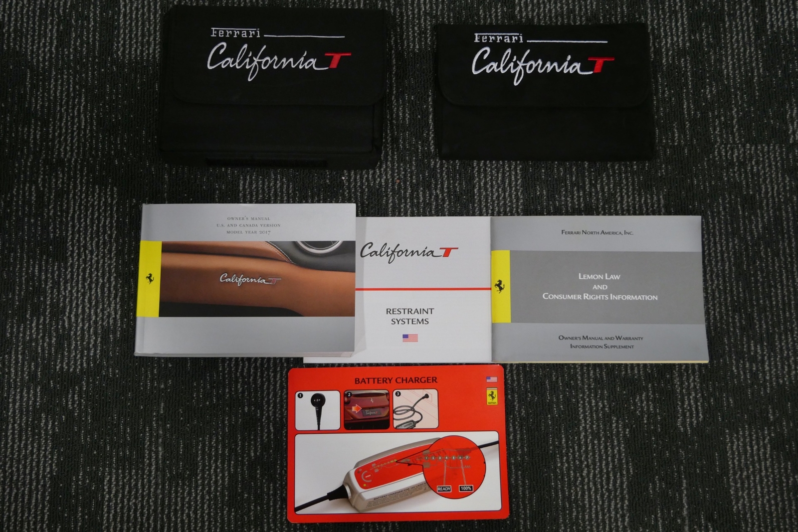 We have just added to our extensive exotic car inventory a beautiful 2017 Ferrari California T in Grigio Titanio with Cuoio leather interior and only 8,184 miles. This California is equipped with: 3.9L twin turbo V8, F1 transmission, machine finish forged sport wheels, yellow brake calipers, Scuderia shields, front grille with chromed edges, body color diffuser strakes, carbon fiber and leather steering wheel with LED's, full electric seats, 2+2 seating, black rev counter, cruise control, contrasting stitching in Bianco, Cavallinos embroidered in headrests in Nero, center console armrest in Beige, navigation, front and rear parking sensors, battery charger and much more.