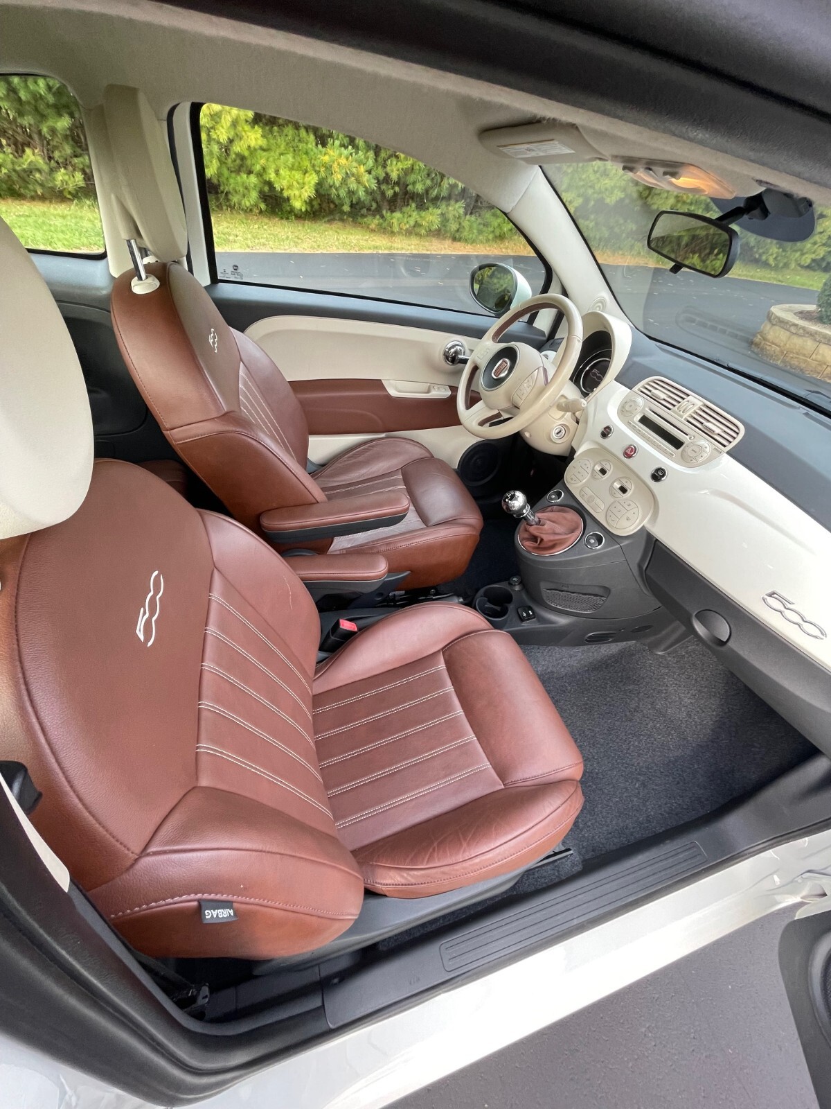 2015 Fiat 500 Cinquecento Retro Blanco White with lovely Carmel Interior. Fun to drive with its sporty 5 speed manual transmission. Lovingly cared for. Never damaged, no accidents. Clean. Non smoker. Ever. Damn Cute Car. Pristine interior. The ONLY reason it is for sale is that we need to lower the amount of vehicles in our collection. Can assist with delivery.
