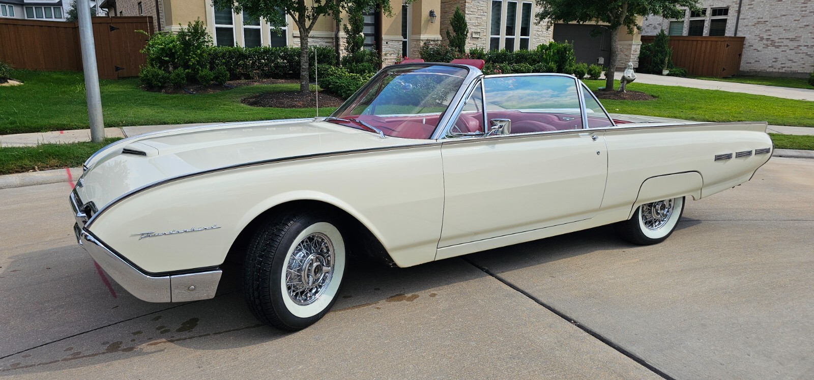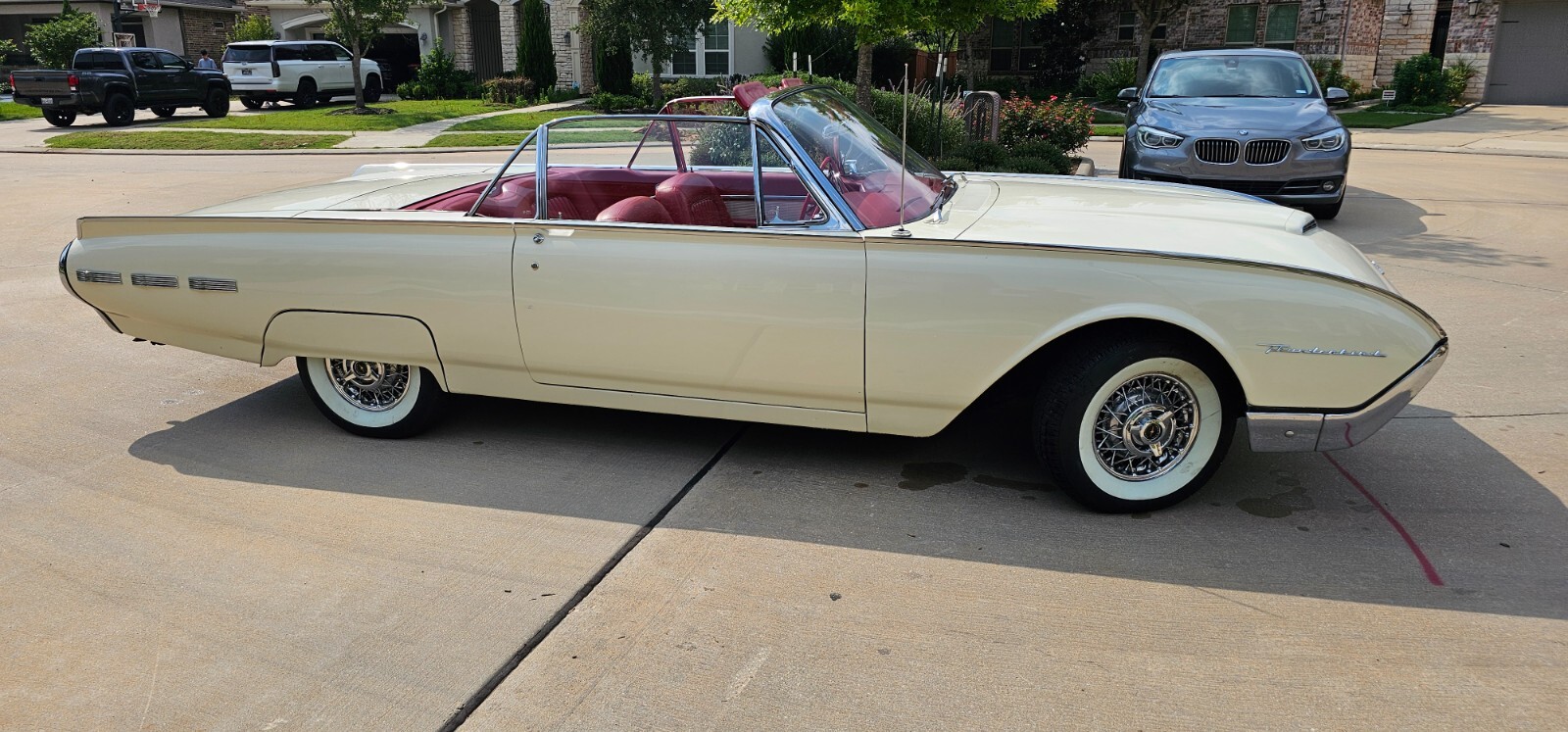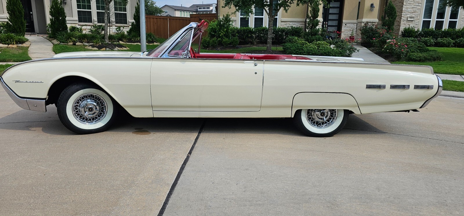 I always wanted a nice clean RED thunderbird, but didn't find one in due time. So I bought a white one that is very clean. I did lots of detail work starting from the trunk, interior and ending in the engine compartment. Finally, I found a red one that I bought and send to storage since didn't have room for both (I wish that I do). This white thunderbird drive and look stunning, Mechanically in great condition. Engine start right up without stepping on the gas paddle and the car run very smooth with plenty of V8 power. The top goes up and down as it should and the engine bay is very clean. Tires are almost new. This car is ready to be driven and enjoyed. I recorded many youtube videos That will present the car much better than just the pics. Please watch, just copy and paste the link in Youtube. Walk Around ( https://youtu.be/FzfmMEuLdu8 ) Engine Start ( https://youtu.be/1t-HvQ1ShgM ) Driving ( https://youtu.be/r_Ios4r3i_E ) Top Down ( https://youtu.be/_e7kLkWVaRY ). This car is priced to sell with no Reserve so bid with confidence. Car located in Houston Texas and sold as is where is. I buy classic cars for me to enjoy during my retirement and not to make profit. Just want my invested money back. Thank you.
