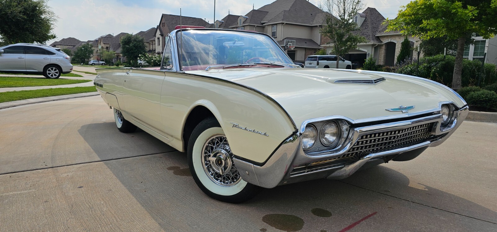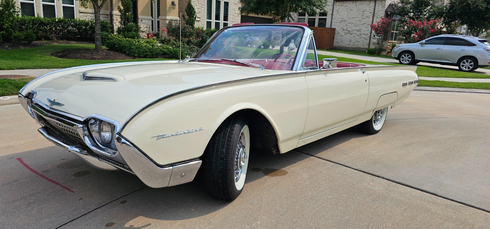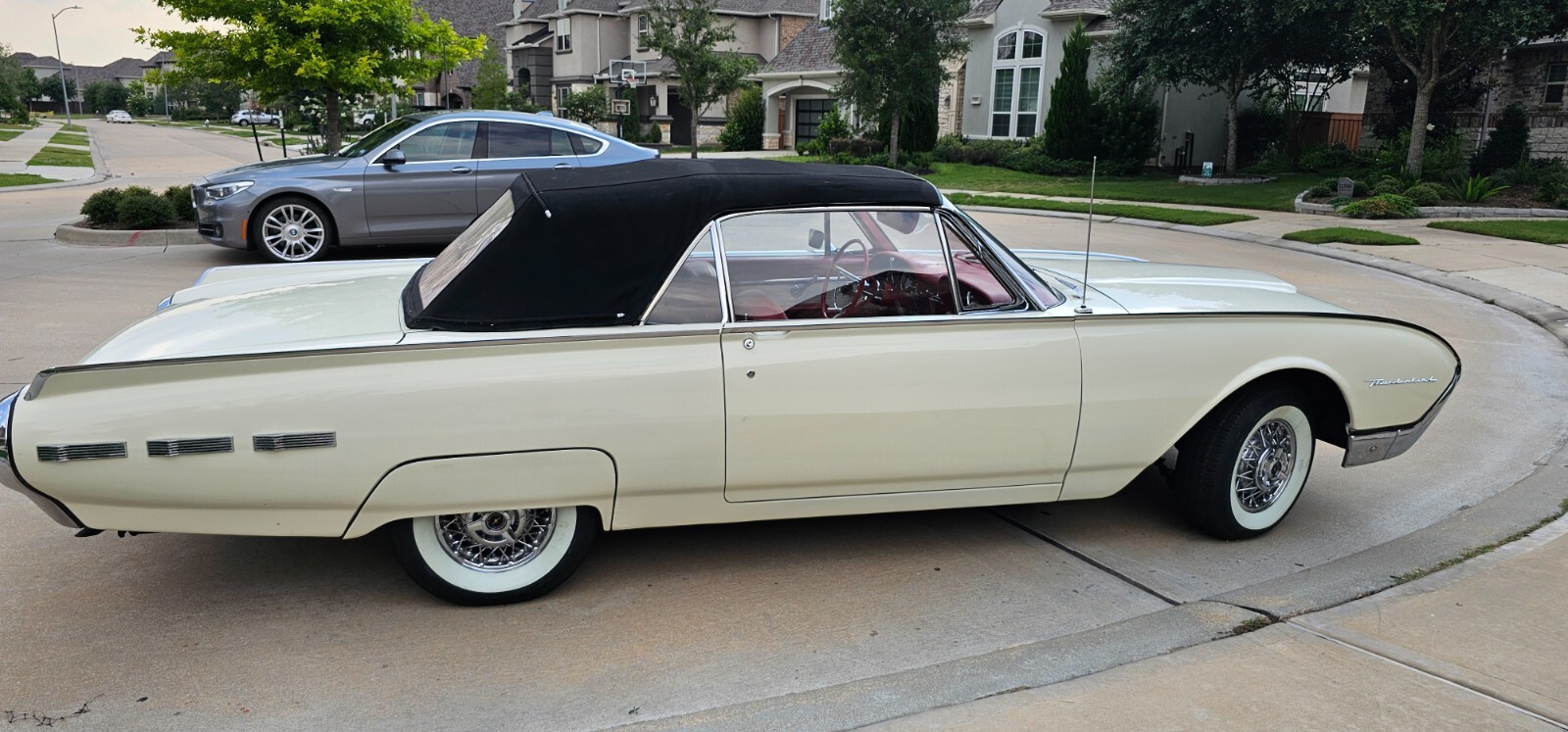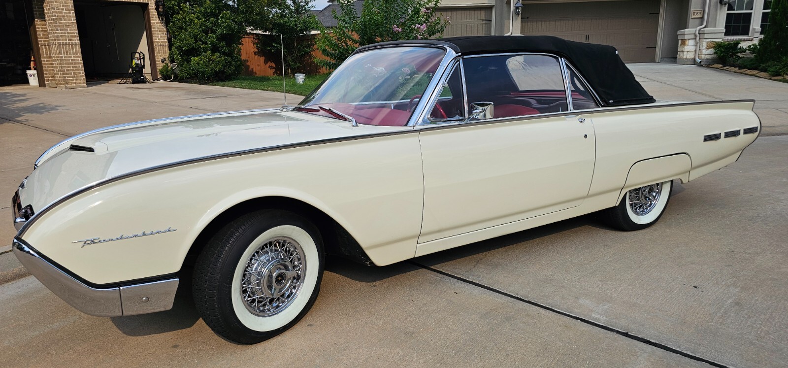 I always wanted a nice clean RED thunderbird, but didn't find one in due time. So I bought a white one that is very clean. I did lots of detail work starting from the trunk, interior and ending in the engine compartment. Finally, I found a red one that I bought and send to storage since didn't have room for both (I wish that I do). This white thunderbird drive and look stunning, Mechanically in great condition. Engine start right up without stepping on the gas paddle and the car run very smooth with plenty of V8 power. The top goes up and down as it should and the engine bay is very clean. Tires are almost new. This car is ready to be driven and enjoyed. I recorded many youtube videos That will present the car much better than just the pics. Please watch, just copy and paste the link in Youtube. Walk Around ( https://youtu.be/FzfmMEuLdu8 ) Engine Start ( https://youtu.be/1t-HvQ1ShgM ) Driving ( https://youtu.be/r_Ios4r3i_E ) Top Down ( https://youtu.be/_e7kLkWVaRY ). This car is priced to sell with no Reserve so bid with confidence. Car located in Houston Texas and sold as is where is. I buy classic cars for me to enjoy during my retirement and not to make profit. Just want my invested money back. Thank you.