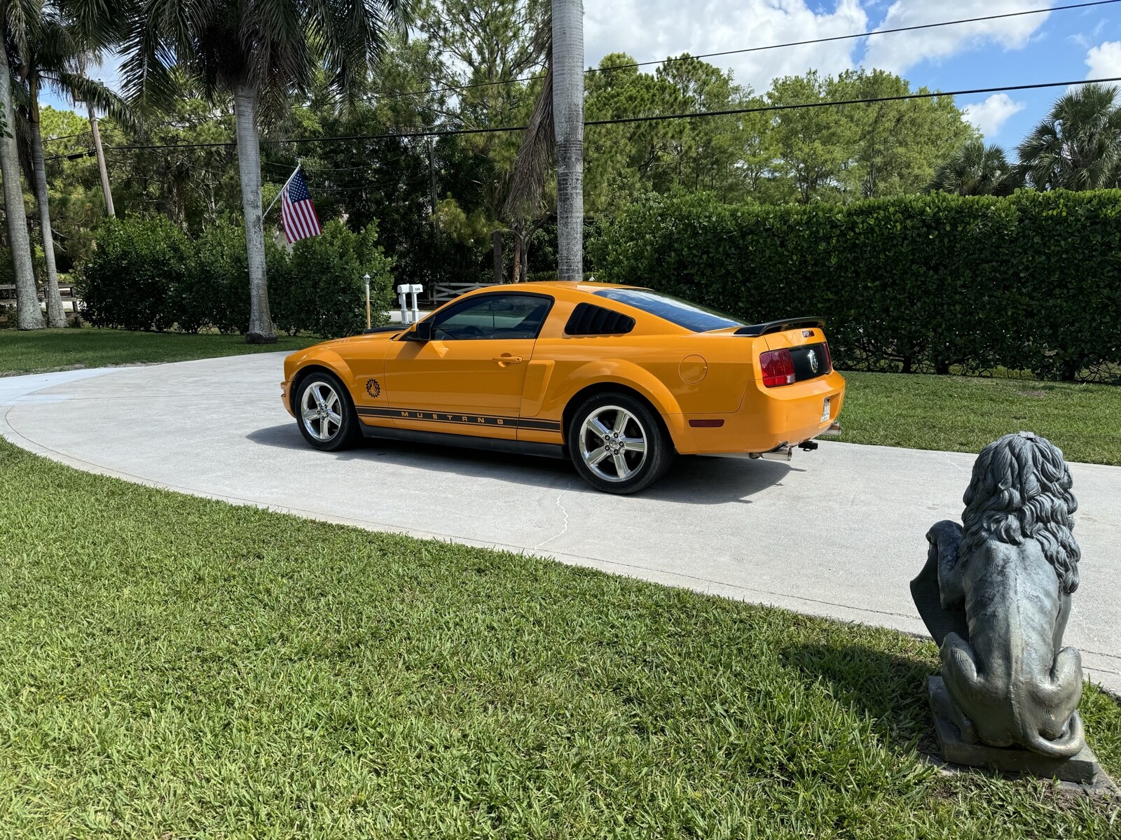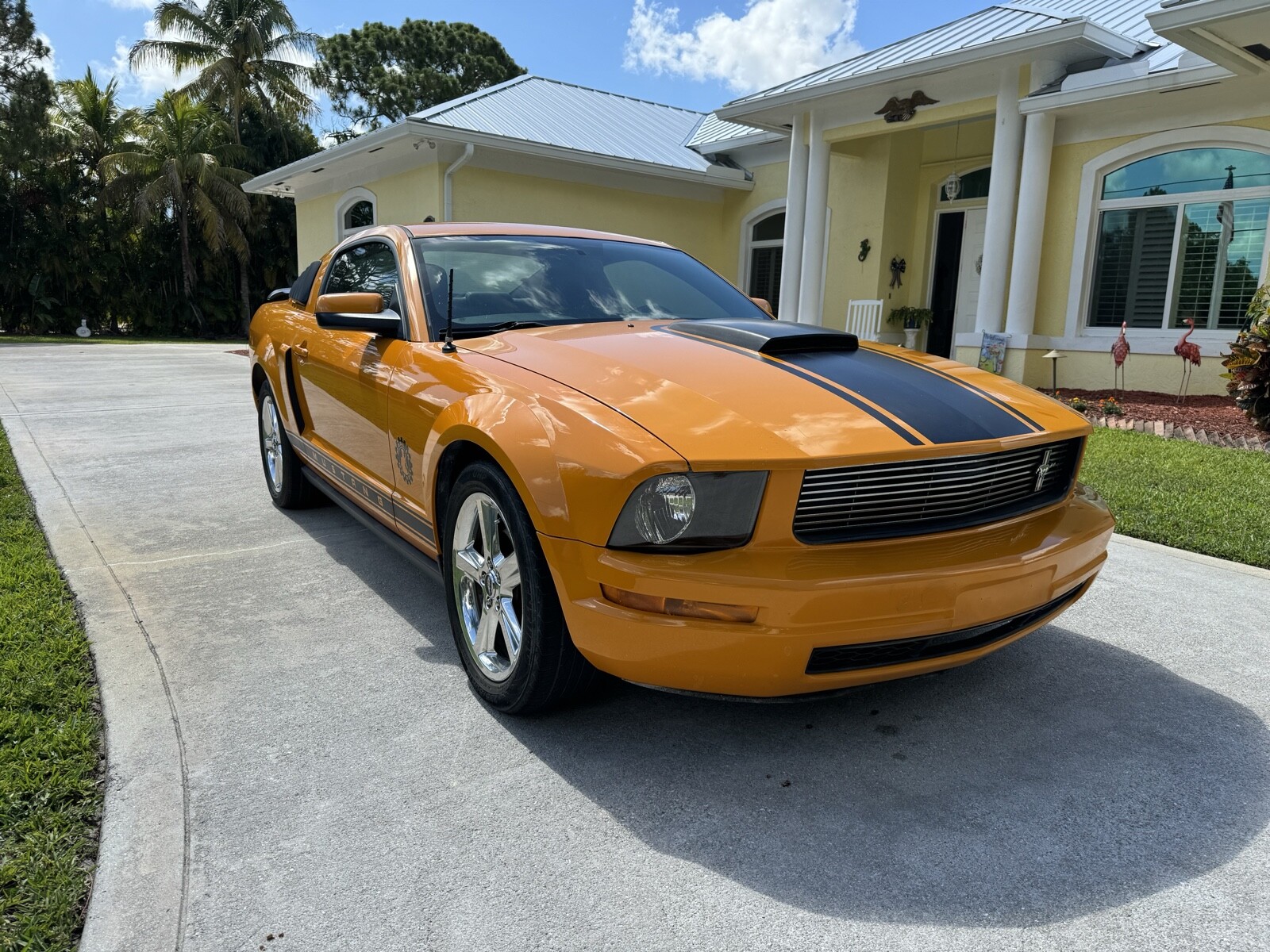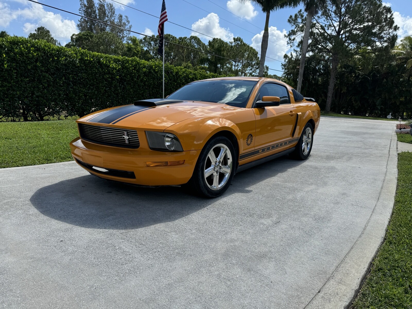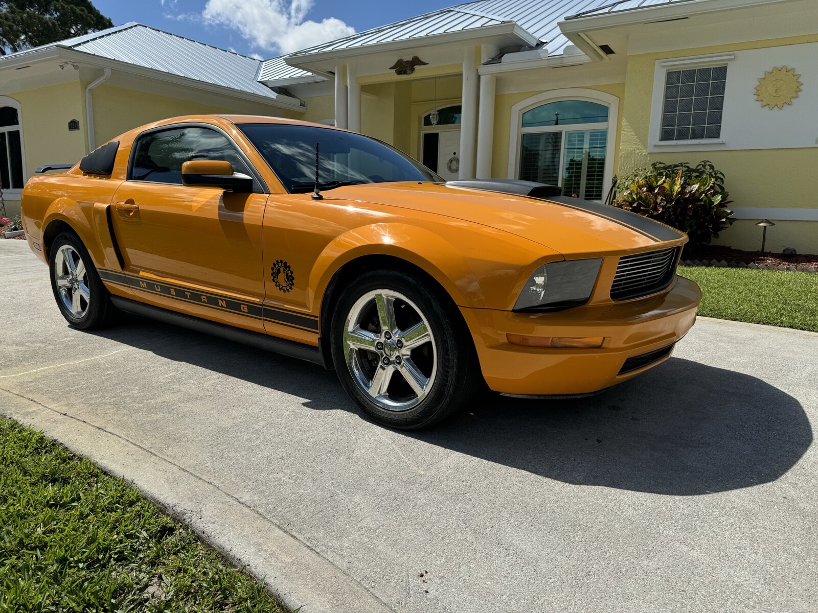 This 2008 grabber orange five speed mustang is in the future to be a Resto mod Built with its five speed standard transmission V6 dual exhaust is one hell of an eye turner today. I can see the motor being swapped out for a coyote and do a brembo brakes . it would be a future supercar. I’m guessing within the next 5 to 10 years. There is no way you can do this type of change to today’s modern mustangs too much wiring too much electronics. This is the last of the years of none of that BS so if you’re looking for a car that you wanna keep in the garage, and enjoy weekends and holidays and even do some track time with it. And Auto shows This is your car if you’re looking for something just to beat to death. I do not want to sell you this car. It is just too nice. The paint is gorgeous not perfect. It is an old car but gorgeous. The interior is in excellent condition no rips and tears, just some light wear, which is normal. So today’s prices of a super Mustang is probably close to 100,000 this car can be a super Mustang overtime or you could do it tomorrow. Thank you for listening to me. Have a great day and don’t let this one go, it’s orange on a black interior five speed dual exhaust
