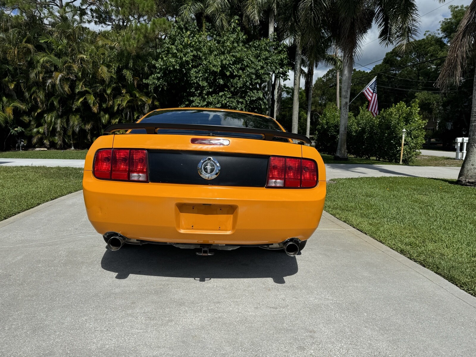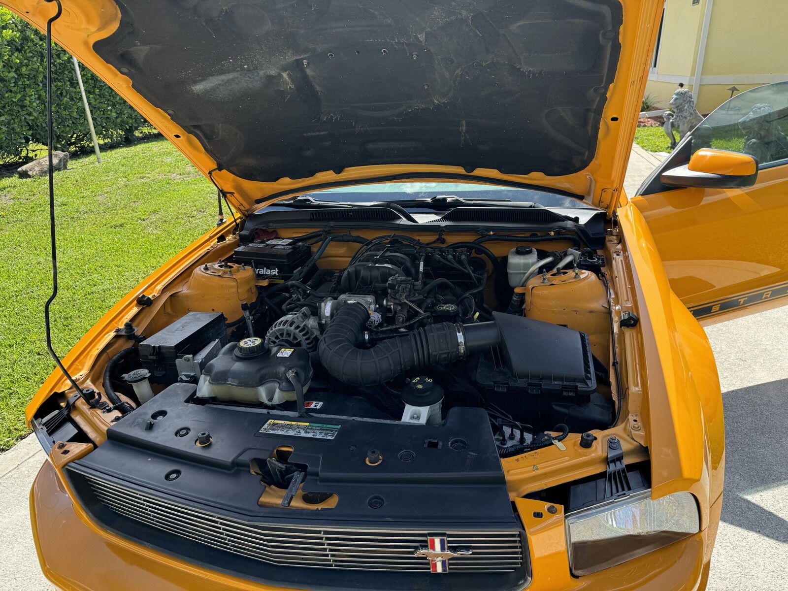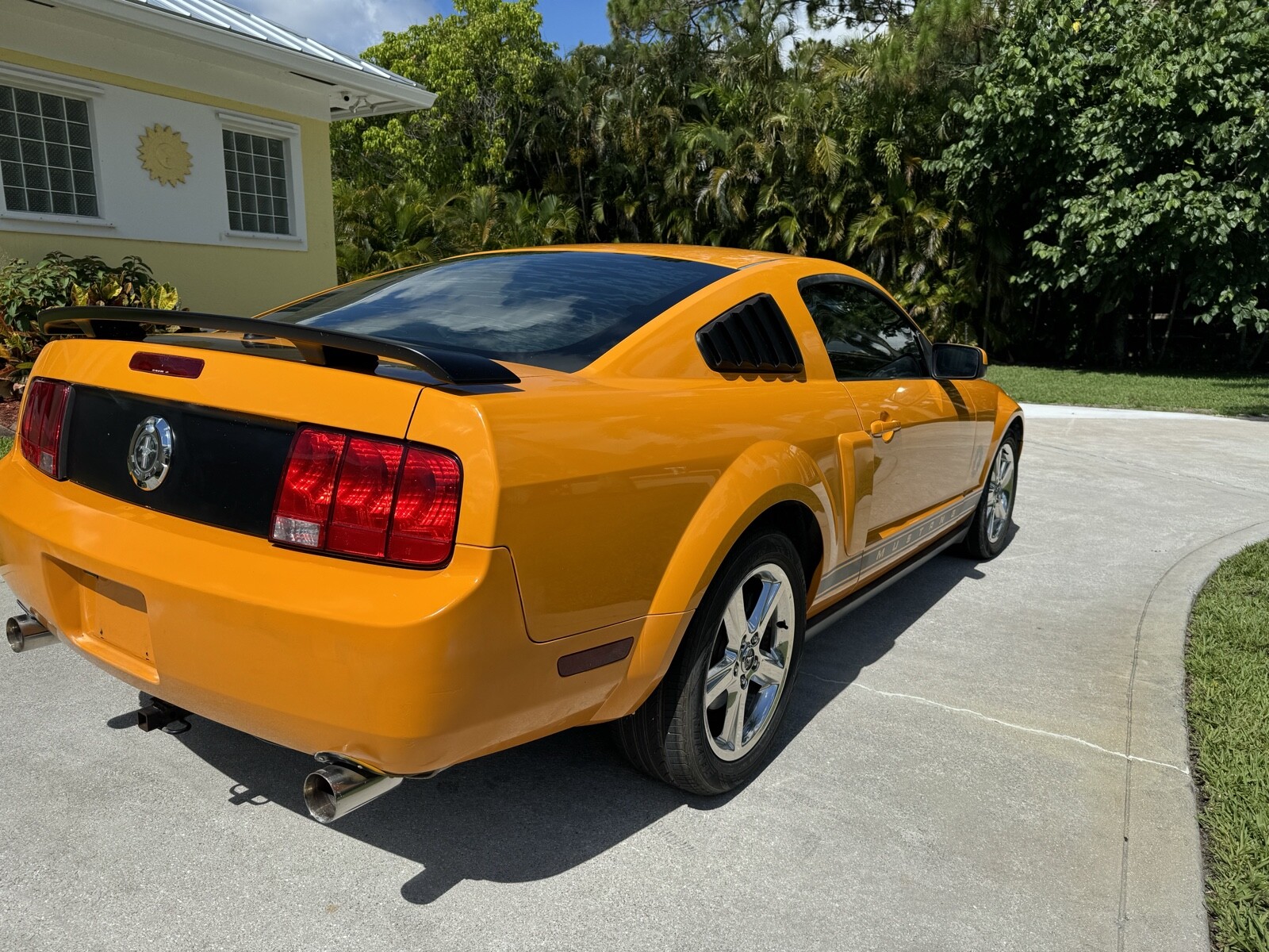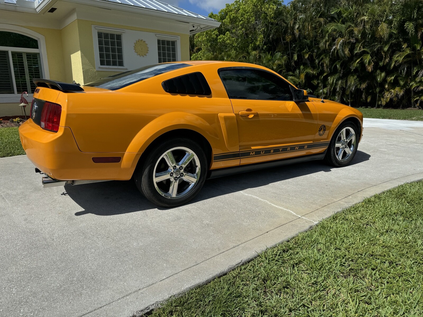 This 2008 grabber orange five speed mustang is in the future to be a Resto mod Built with its five speed standard transmission V6 dual exhaust is one hell of an eye turner today. I can see the motor being swapped out for a coyote and do a brembo brakes . it would be a future supercar. I’m guessing within the next 5 to 10 years. There is no way you can do this type of change to today’s modern mustangs too much wiring too much electronics. This is the last of the years of none of that BS so if you’re looking for a car that you wanna keep in the garage, and enjoy weekends and holidays and even do some track time with it. And Auto shows This is your car if you’re looking for something just to beat to death. I do not want to sell you this car. It is just too nice. The paint is gorgeous not perfect. It is an old car but gorgeous. The interior is in excellent condition no rips and tears, just some light wear, which is normal. So today’s prices of a super Mustang is probably close to 100,000 this car can be a super Mustang overtime or you could do it tomorrow. Thank you for listening to me. Have a great day and don’t let this one go, it’s orange on a black interior five speed dual exhaust