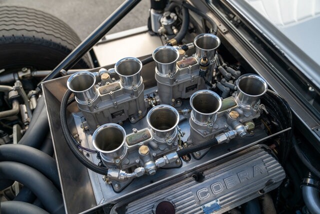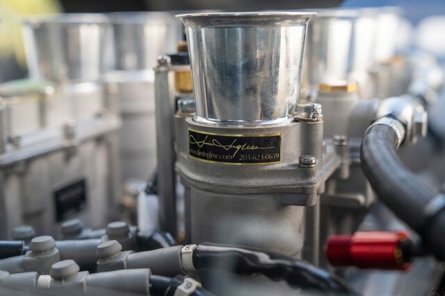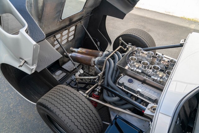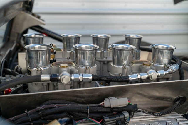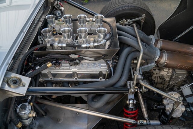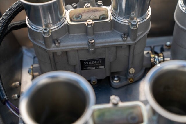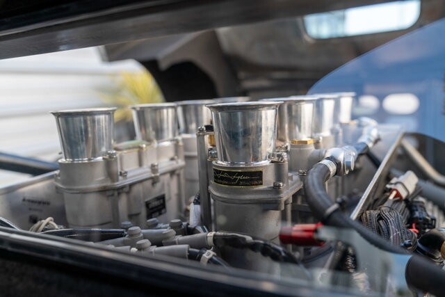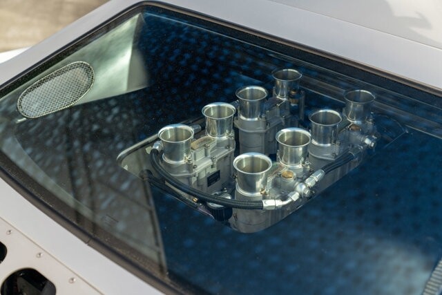 Under the skin is where this GT40 received the most attention though, starting with its stout 427ci V8 sitting out back. The engine received a complete rebuild by Ron Shaver Racing, who completely stripped the engine down, keeping only the aluminum block, crankshaft and rods. AFR aluminum heads were installed, as was a Weber EFI fuel injection. This injection system looks like the quad-twin choke Weber carburetors that would have been found on the original GT40s thanks to their velocity stacks up top, but has all of the benefits of modern fuel injection from a performance and reliability standpoint. A Comp Cam hydraulic roller camshaft was installed, and now this engine pulls strong all the way past 6,000 rpm. Dyno results show this lightweight GT40 producing 584 horsepower at 6,000 rpm and 544 lb-ft of torque at 4,600 rpm, which is run through a 5-speed manual transaxle which was rebuilt by specialists RBT and benefits from a McLeod Street Extreme Clutch. Puyallup based J&L Fabrication rebuilt the fuel system with new fuel cells and fuel safe bag tanks, and now this car runs flawlessly on standard 91 octane pump gas. The suspension was rebuilt with new QA-1 shocks, while all new brakes with high performance PBR brake calipers and fresh lines have been added.