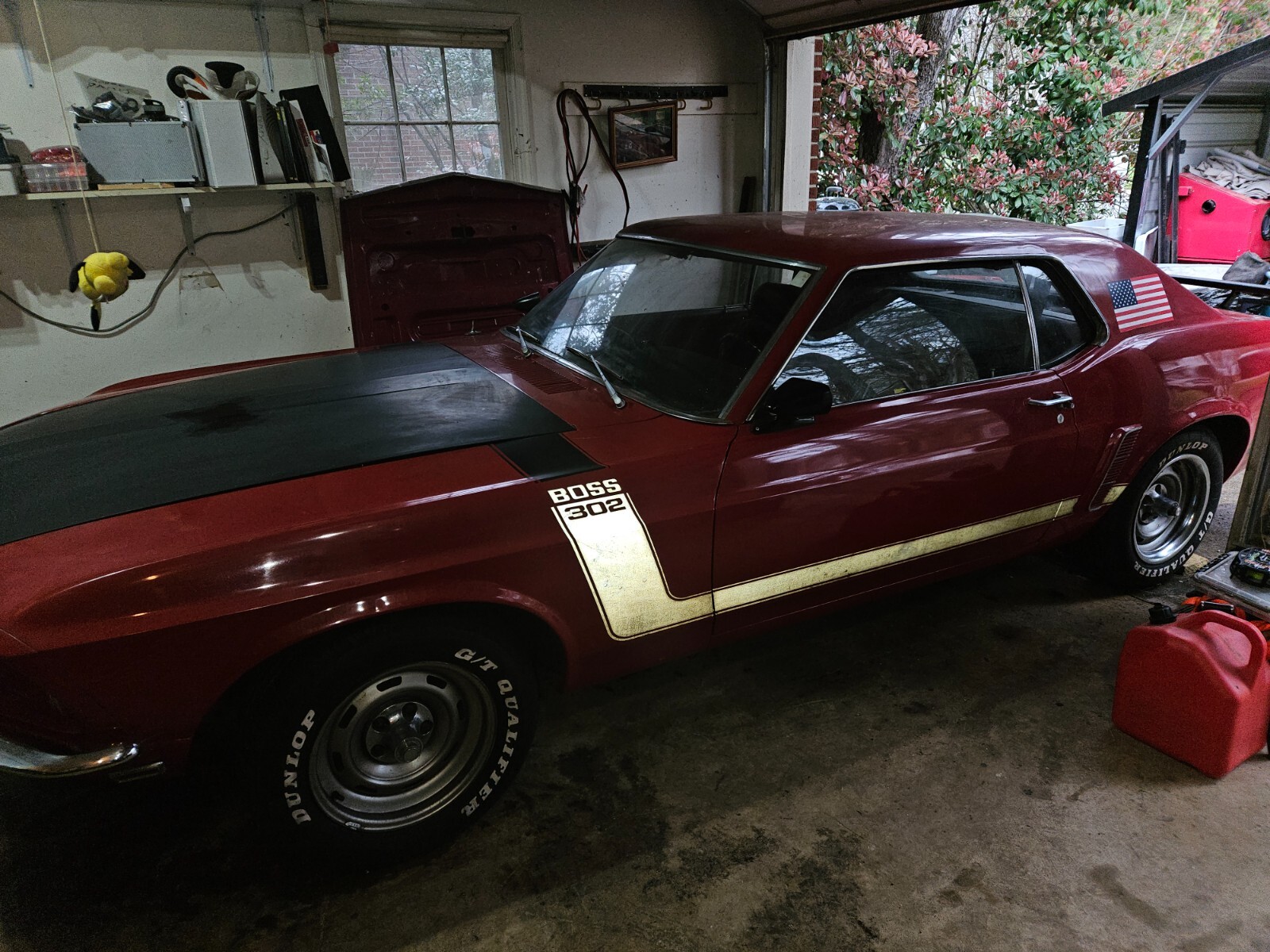 1969 Ford Mustang Boss 302 Clone. Resto-Mod: Thousands in new parts and upgrades. All original components have been saved and in the trunk.Components Replaced/Upgraded:Borgeson Power Steering Unit & PumpNew Torque ConverterNew Instrument Cluster and GaugesNew AlternatorNew Intake ManifoldNew Valve CoversNew OEM style radio with Bluetooth functionsNew LED HeadlightsNew HoodNew Hood HingesNew Parking Brake ActuatorNew BatteryNew Center ConsoleTransmission Rebuild Kit + Shift Improvement KitDescription: A survivor in good condition with thousands in new parts and upgrades. Engine runs and transmission was recently rebuilt with new gaskets and a performance shift kit. The transmission was hooked back up to the vehicle but needs adjustment or pulled back off for reinspection. The only reason I am selling is my wife and I are selling our house and moving out of the Country. Simply put I ran out of time to finish my restomod (otherwise id be selling for $30,000+). We need some money now and so my loss will be your gain! Literally, I bought the vehicle for $16,800 back in 2019 and have put thousands in parts in since. All she needs now is to have the transmission figured out, finish wiring the dash back together, and perhaps a fresh coat of paint for this classic Mustang in its most highly sought-after year (1969) to be a Mint Classic Cruiser.Oh yeah, and it came equipped with power steering, disk brakes, and A/C from the factory as its options.