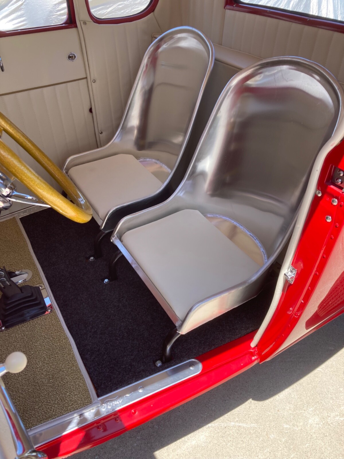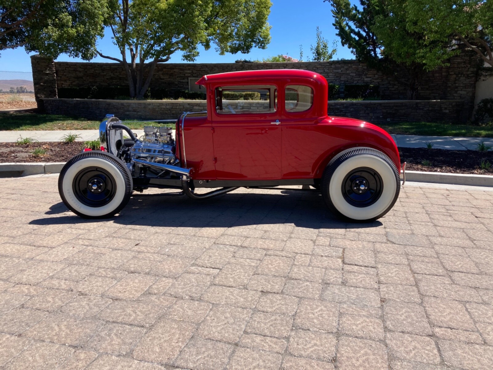 1930 Ford 5 window coupe.. all steel original body chopped 3” new powder coated frame... all new suspension with rear coil over/ladder bars... front 4" drop axle with SoCal front shocks.. juice brakes with stainless steel brake lines and fuel line.. Chevy 283 engine bored .30 over with Isky cam and edelbrock intake and 2/4 carbs... Champion aluminum radiator.. trans is a Saginaw 4 speed with Hurst shifter.. rear end is Ford 9" with Posi 3:25 gears.. wheels are 15" Firestone Wide Whites... Classic Instruments Gauges.. cream interior with aluminum bomber seats... everything is New on this build... runs and drives no problem but may need / want a tune-up as it has been sitting for a few months…. CLEAN CALIFORNIA TITLE!!!... Im a SERIOUS motivated seller..!!!!... please ask questions if SERIOUS or interested about this car, invested alot of time and money and effort to build...!! Thanks
