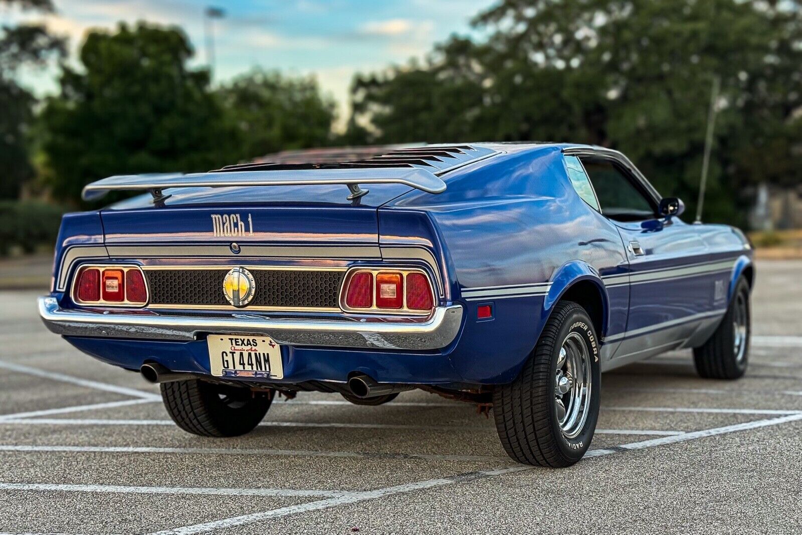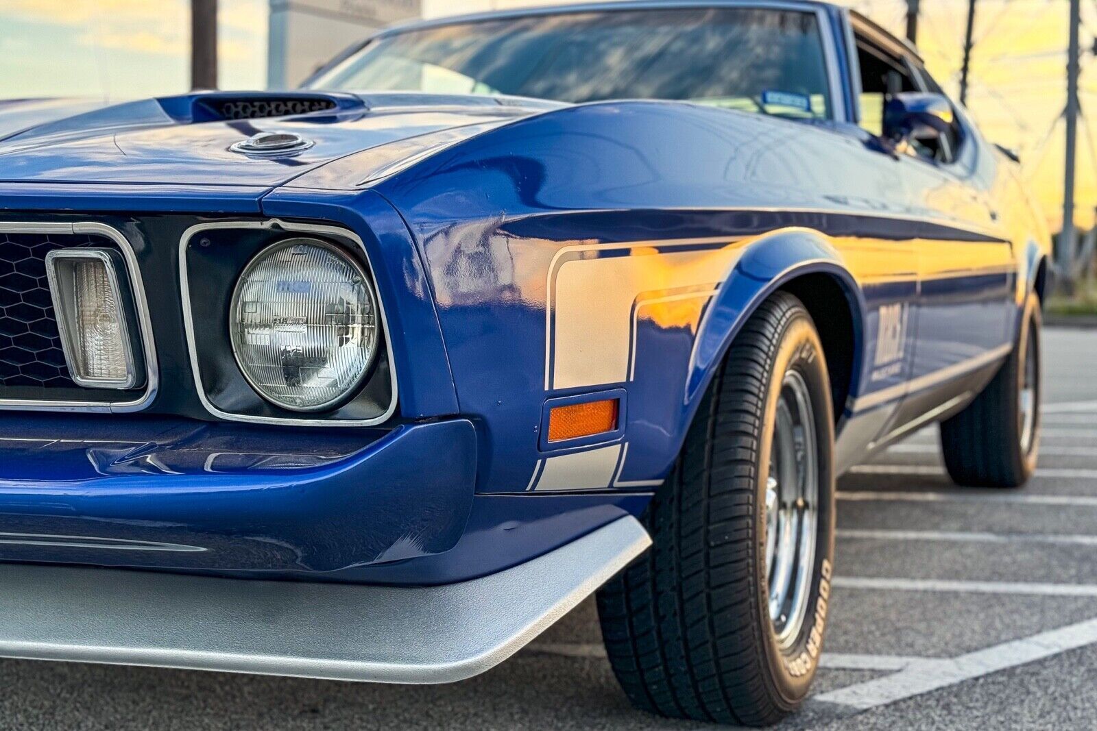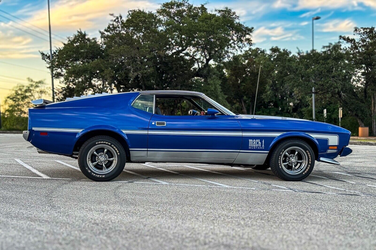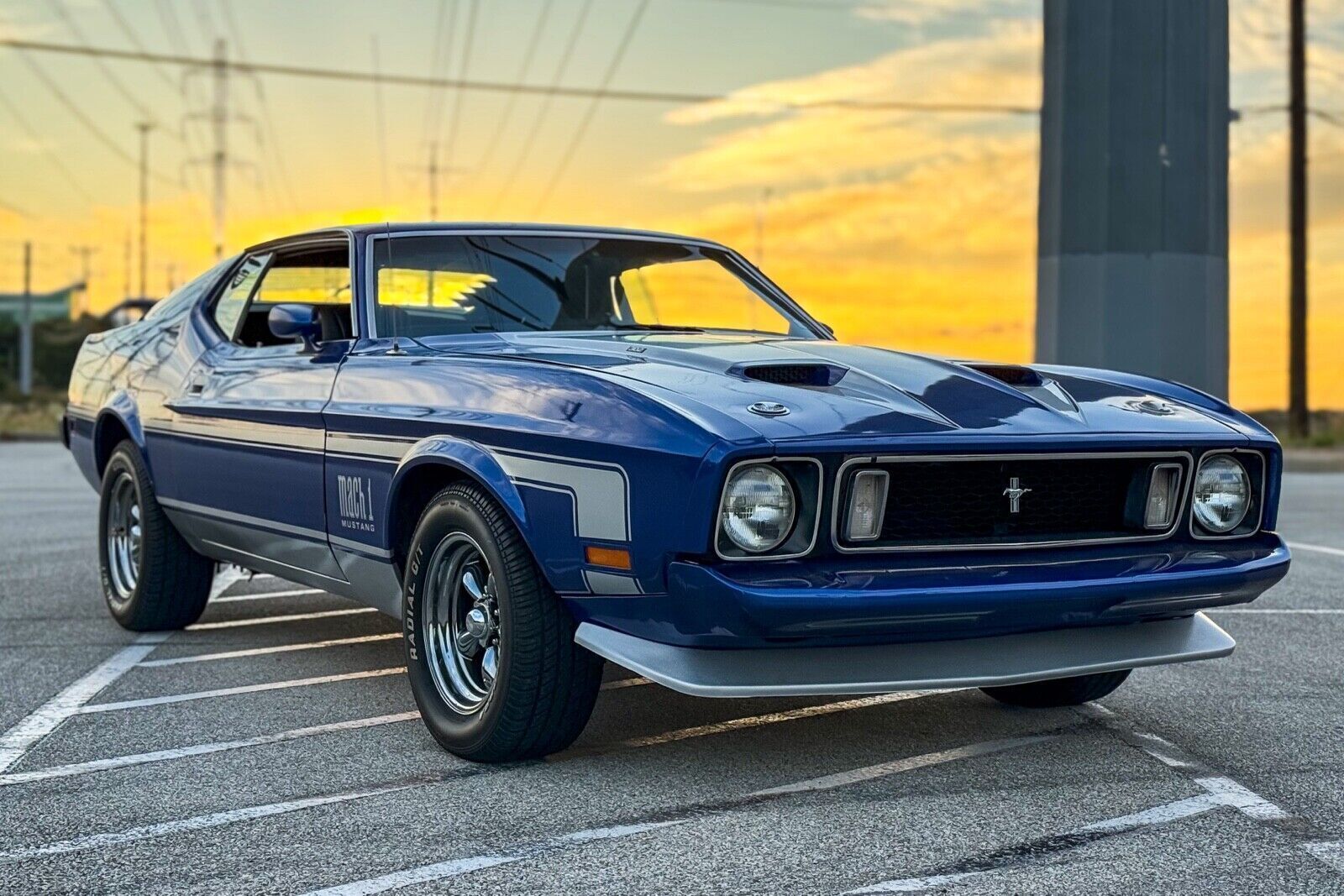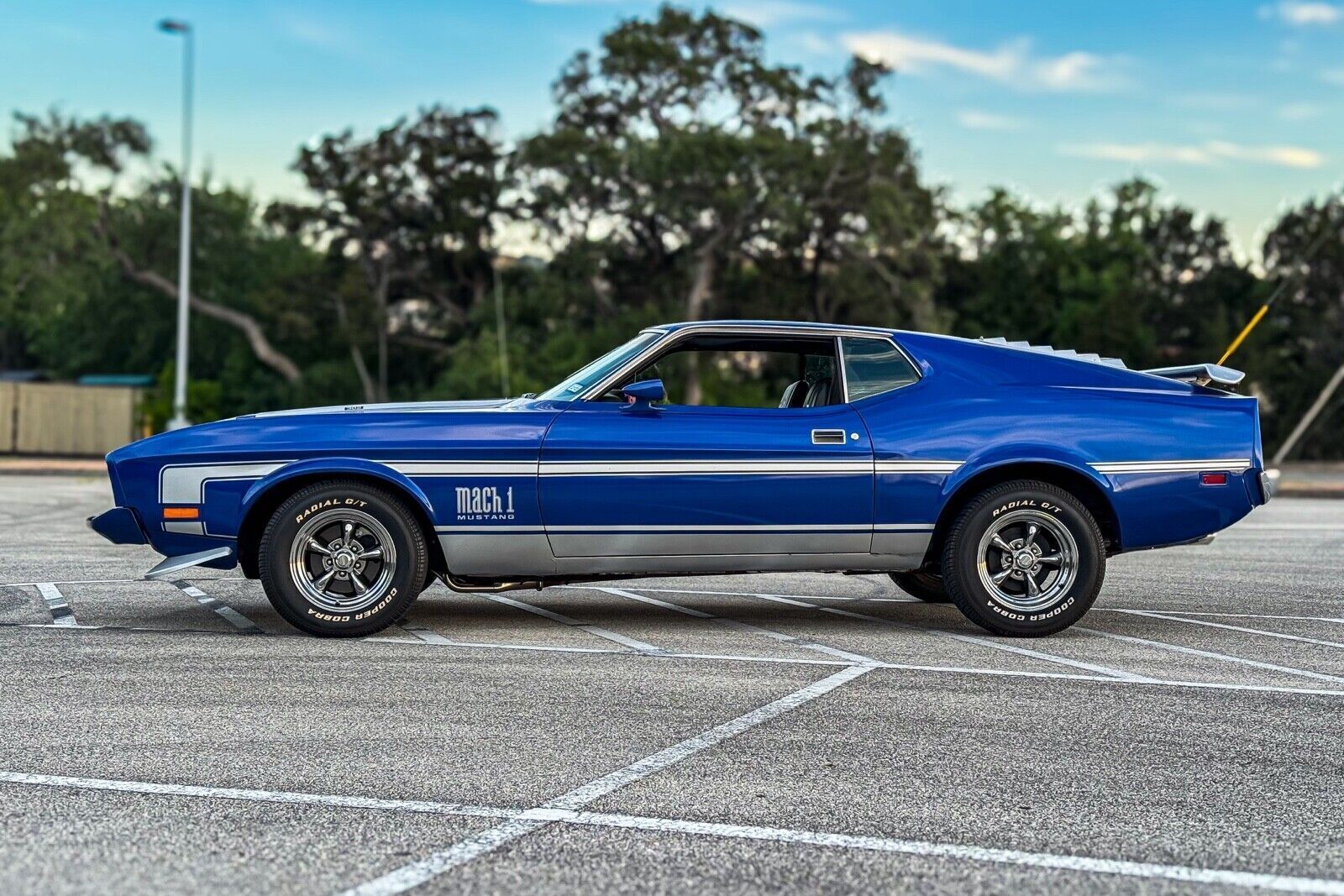 1973 Ford Mustang Mach 1 Blue exterior with gray trim and all black interior. New motor with less than 3,000 miles.