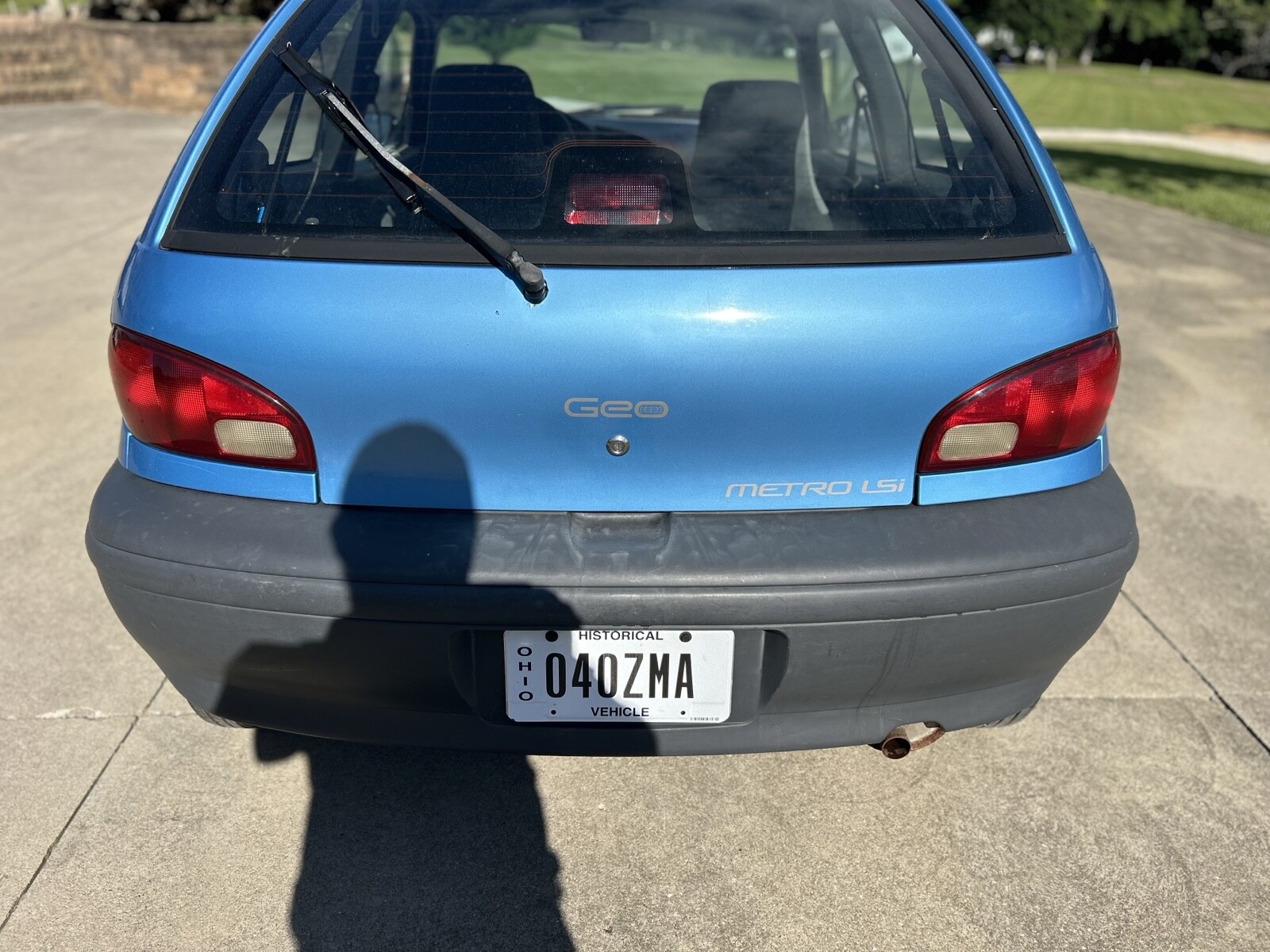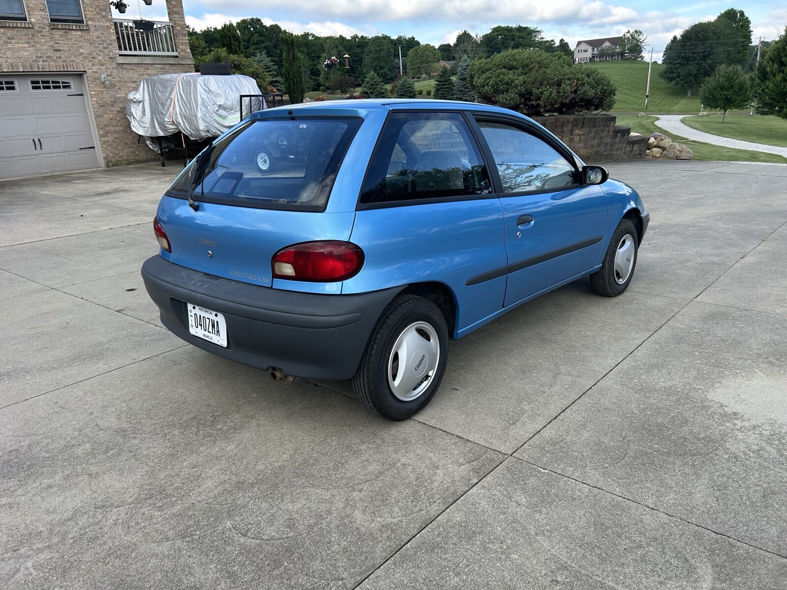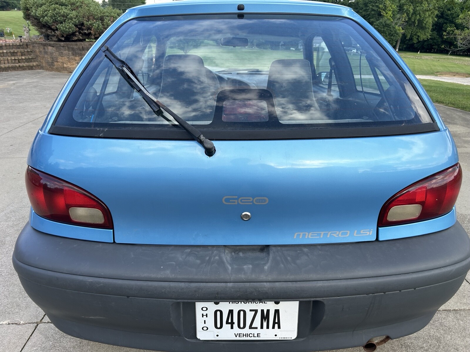 I am the second owner of this metro. I bought it off a donated vehicle website. Original owner donated it after it blew a brake line and he quit driving it and it set for awhile. It has the original paint. I did a complete tune up all filters all fluids new brake line pads shoes rotors and drums. I put new tires and a new battery in it. Replaced new outside rear view mirrors and hatch struts. It starts runs and drives well. I used to have several of these when I used to commute 62 miles one way to work in late 90’s early 2000’s. I bought to restore but just don’t have the time as I’m putting up a shop to retire and go into business full time. I don’t want to see it sit anymore as I have only driven it 400 mikes in 3 years. I would like to see it go to good home and get the restoration it deserves. Please view all pics it does have some rust all in my opinion is all very repairable with some fabrication. The main rust area are left front frame horn left outer rocker inner is good both right and left rear inner wheelhouses. And left rear sway mount I have brand new sway mount to weld in included with sale. Some new parts and repair manual included. Water pump timing belt alternator belt and thermostat are the parts plus some misc spares. Car is capable of 50 mpg. Defects other than the rust are radio in currently inop it worked when I parked it last fall believe fuse or connection. Fuel gauge inop believe it wiring above tank. Headliner failed and needs new fabric. Everything else works as it should. LSi model with fairly rare factory delayed wipers and rear wiper. Rear washer and wiper work. Nice little car needs a little attention runs and drives fine would like to see it go to new home giving it the attention it desearves this is a. 64000 original miles original car.you are buying this car just as I did it is 100% “as-is”. I invite you or your representative to come look at and verify my description. Look at my 100% positive feedback and rest assured your buying what I’m describing thank you