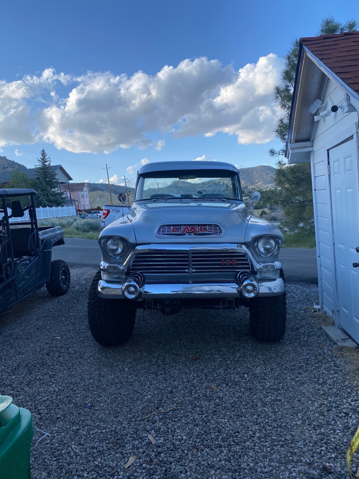 1956 gmc 4x4, 383 stroker, 350 automatic sitting on a early 70s k5 4wd frame with 70s transfer case