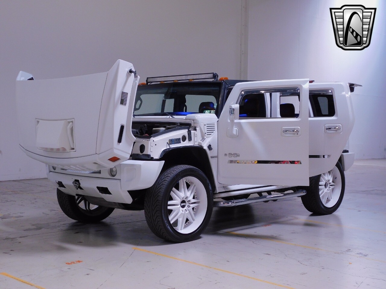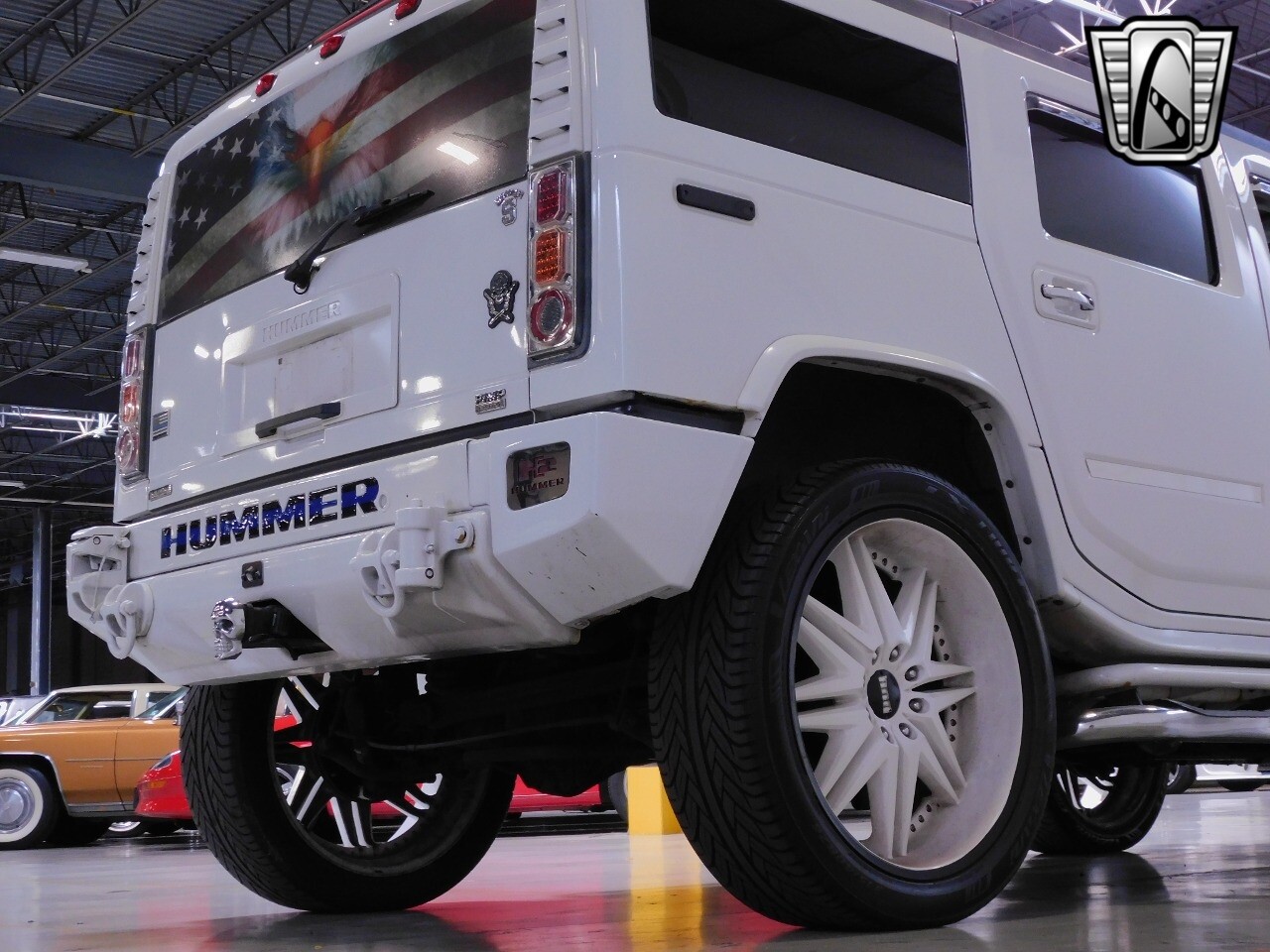 Adding to its distinctive look, this Hummer H2 comes with custom wheels and radial tires, giving it a unique and stylish appearance. Whether you're navigating city streets or exploring off-road trails, this vehicle is equipped to handle it all with ease and style.