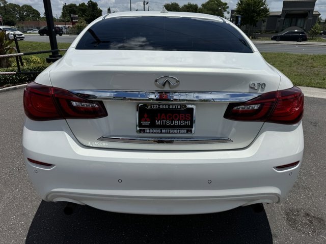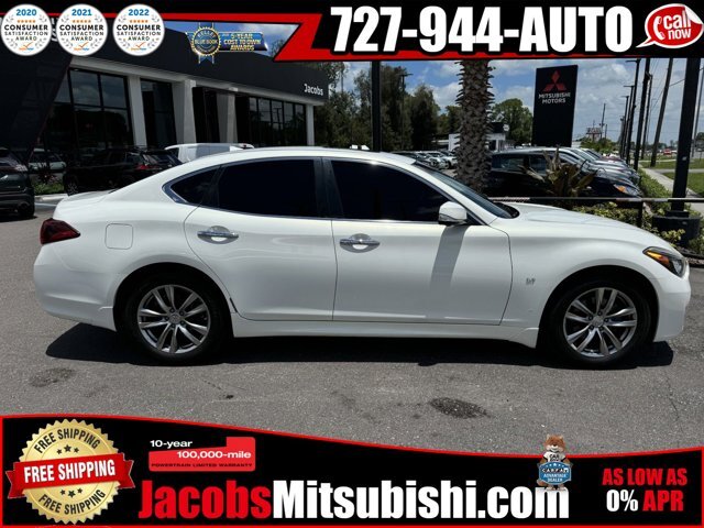 Q70 3.7, 4D Sedan, 3.7L V6 DOHC 24V VVEL, 7-Speed Automatic, RWD, Moonlight White, Graphite w/Leather-Appointed Seat Trim or Semi-Aniline Leather Appointed Seating, 18 Aluminum Alloy Wheels, 4-Wheel Disc Brakes, 6 Speakers, ABS brakes, Activation Disclaimer, Air Conditioning, Alloy wheels, AM/FM radio: SiriusXM, Anti-whiplash front head restraints, Around View Monitor w/Moving Object Detection, Audio memory, Auto tilt-away steering wheel, Auto-dimming door mirrors, Auto-dimming Rear-View mirror, Automatic temperature control, Bose 2-Channel 10 -Speaker Premium Audio System, Brake assist, Bumpers: body-color, Carpeted Trunk Mat/Cargo Net & First Aid Kit, CD player, Climate-Controlled Front Seats, Delay-off headlights, Driver door bin, Driver vanity mirror, Dual front impact airbags, Dual front side impact airbags, Electronic Stability Control, Four wheel independent suspension, Front anti-roll bar, Front Bucket Seats, Front Center Armrest w/Storage, Front dual zone A/C, Front fog lights, Front reading lights, Fully automatic headlights, Garage door transmitter: HomeLink, Genuine wood console insert, Genuine wood dashboard insert, Genuine wood door panel insert, Heated door mirrors, Heated Front Bucket Seats, Heated front seats, Heated Steering Wheel, Illuminated entry, Illuminated Kick Plates, INFINITI Connection System, INFINITI Voice Recognition for Audio, Leather Appointed Seat Trim, Leather Shift Knob, Leather steering wheel, Leatherette Seat Trim, Literature Kit, Low tire pressure warning, Memory seat, MP3 decoder, Occupant sensing airbag, Outside temperature display, Overhead airbag, Overhead console, Panic alarm, Passenger door bin, Passenger vanity mirror, Pearl Paint, Power door mirrors, Power driver seat, Power moonroof, Power passenger seat, Power steering, Power windows, Premium Package, Radio data system, Radio: AM/FM/CD/MP3 Playback Capability, Radio: INFINITI Hard Drive Navigation System, Rain sensing wipers, Rear anti-roll bar, Rear reading lights, Rear seat center armrest, Rear Sonar System, Rear window defroster, Remote keyless entry, Security system, Speed control, Speed-sensing steering, Splash Guards, Steering wheel memory, Steering wheel mounted audio controls, Tachometer, Telescoping steering wheel, Tilt steering wheel, Traction control, Trip computer, Turn signal indicator mirrors, Variably intermittent wipers. Clean CARFAX.18/26 City/Highway MPG Moonlight White 2015 INFINITI Q70 3.7 RWD 3.7L V6 DOHC 24V VVELOdometer is 17435 miles below market average!Awards:* 2015 IIHS Top Safety Pick+, Top Safety Pick+ * 2015 IIHS Top Safety Pick+Here at Jacobs Mitsubishi our goal is to make you a customer for life. We want you to have the most enjoyable car buying experience possible . All prices displayed do not include additional accessories or fees and costs of closing including any government, additional packages applied to vehicle, including but not limited to Jacobs Care, Reconditioning fees,federal, dealer fees, taxes, registration, dealer document, cost of accessories, emissions testing, or any other fees. All prices, specifications and availability are subject to change at any time, without notice. Not all applicants will be approved, offers may change at any time and may not reflect accuracy online, see dealer for most updated offers. Not all offers can be combined. Applicant may qualify for partial discount displayed by financing with another approved lender through and provided by Jacobs Mitsubishi. Contact dealer for most current information, availability, or details.