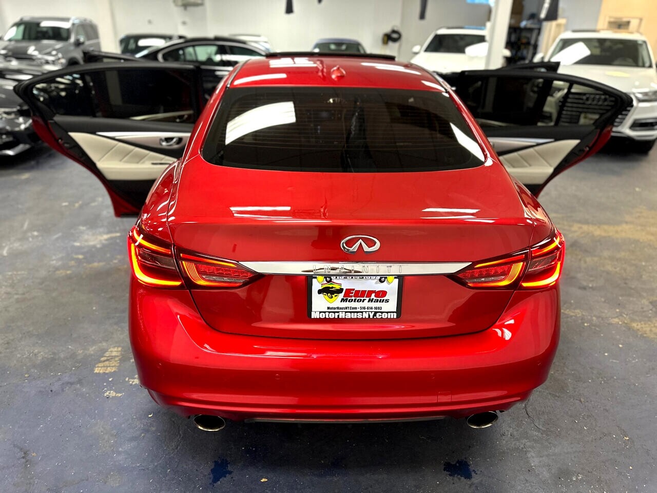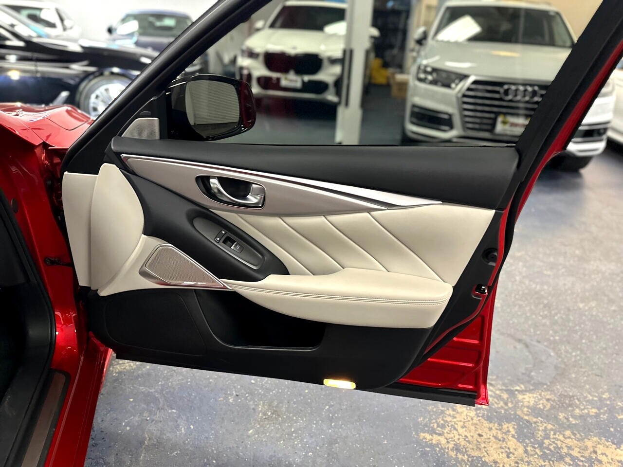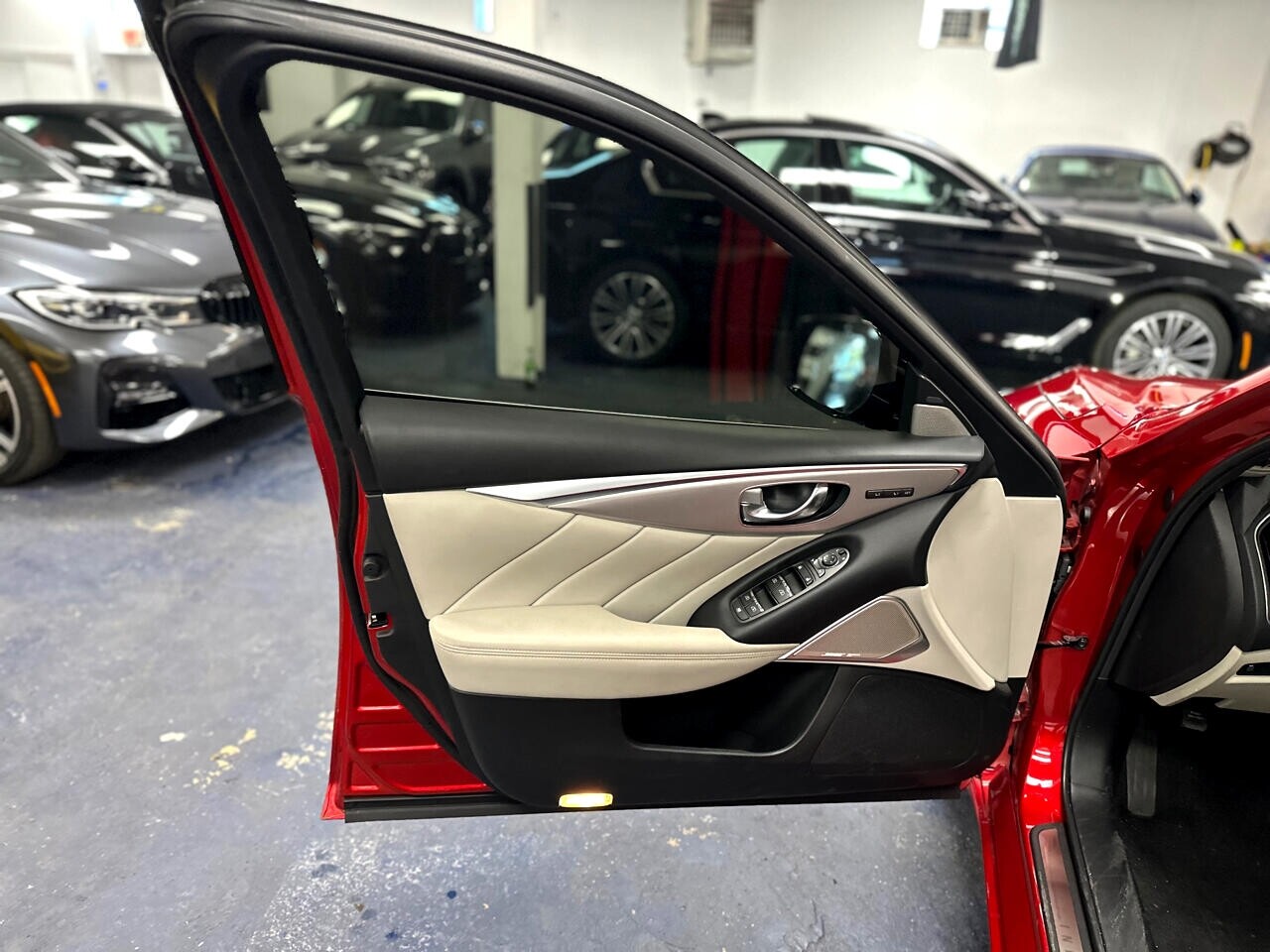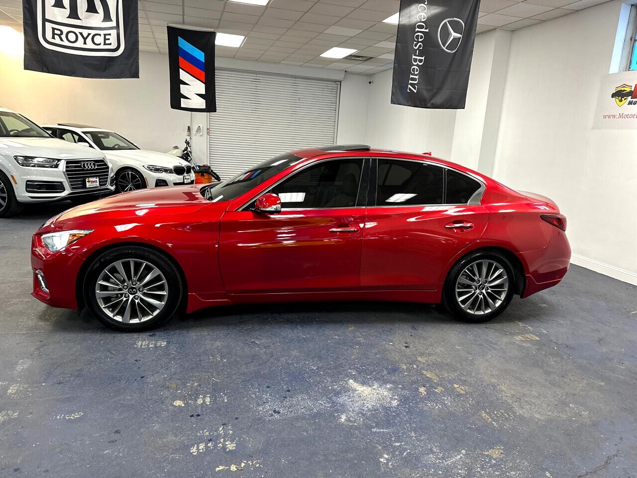 Introducing the 2022 Infiniti Q50 3.0t LUXE AWD, a dynamic and thrilling car with just 11,756 miles on the clock, making it practically new. This high-performance sedan boasts a head-turning Dynamic Sunstone Red exterior that perfectly complements the elegant white leather interior.Equipped with the following options, this Q50 is ready to impress. It comes with Dynamic Sunstone Red paint, adding a bold statement, and the luxurious and comfortable leather seating surfaces. The 50 State Emissions provide flexibility, while the Exclusive Paint Dynamic Sunstone Red adds a unique touch. The Cargo Package enhances practicality with shopping bag hooks, a cargo net, first aid kit, and trunk mat. Splash Guards protect the car's exterior, and rear USB Charging Ports ensure your devices stay powered. With the added Literature Kit and an Original Shipping Charge, the original retail price for this thrilling ride was $46,665. What sets this Q50 apart is the Sport Exhaust, adding an exhilarating acoustic experience to your driving. If you're looking for a hot and fun car with a like-new condition, this 2022 Infiniti Q50 is the perfect choice. Don't miss the chance to experience its excitement schedule a test drive today! ? Call or Text 516-614-1693 prior to your visit for special internet pricing and quick answers to your questions ? Visit Euro Motor Haus online at to see more pictures of this vehicle or stop in person and view our large variety of certified pre owned luxury vehicles at 305 East Shore Road Great Neck NY 11023 or call/text us at516-614-1693 today to schedule your test drive. We are a FRANCHISE Affiliated Luxury Pre-Owned Car dealership connected to over 4 Franchise Dealerships. What that means for you is that we have ability to obtain you low rate financing through our major lending institutions. Wells Fargo TD Bank Capital One Bank Bank of America US Bank Exeter auto finance Chase Automotive Ally Financial Santander Key Bank all NY based credit unions and many more.The benefits of which are then transferred to our clientele. We are able to offer FRANCHISE finance rates up to 84 months. With our affiliation we are also permitted to sell New Car Service Contracts here with our CERTIFIED PRE-OWNED PROGRAM backed by SafeGuard and GWC and NIADA Warrantech . Come in and have our friendly and knowledgeable staff facilitate your needs. Euro Motor Haus Inc does not guarantee any ad disclaimer guarantees etc on any 3rd party website.Please note that the advertised price does not include sales tax registration DMV transportation of vehicle costs incurred by the dealer as for safety including but not limited to brakes tires and fluids and any additional fees required by law. Prices exclude any additional charges included with the cost of closing including any governmental charges and taxes any finance charges documentation preparation or warranty. The advertised price represents the vehicle in its current condition and subject to change depending on any additional costs incurred or market fluctuations. Inventory prices are liable to change without warning. Vehicles are offered on a first come first serve basis. Please call to inquire. Advertised price includes all dealer rebates and incentives but not inclusive of certification & dealer prep. We make every attempt to adequately represent the condition and features of all inventory including vehicle information pictures pricing and status but there may be inaccuracies. Updates may be delayed. Dealer assumes no responsibility for inaccuracies in online information. All internet special prices expire at 11:59 pm today. Must present offer prior to expiration.All of our vehicles go through a rigorous Safeguard/ GWC & NIADA certified and backed inspection. They Are pre certified. You work you drive!!! Instant financing available!!! We have great relationships with many lending institutions and we are the Home of the Guaranteed Approval.All finance deals are subject to primary lender approval. Challenged credit no credit no problem! PRICES MAY DIFFER WITH PAYMENT OPTIONS. **Many are 1 owner or off lease vehicles. **Free Vehicle History Reports **100% TOTALLY Indoor Facility **Nationwide Financing available **Extended Service Contracts available **Our cars under 100k miles all come with at least a 30 day warranty standard **Many are out of state clean cars **Trade ins welcomed **No Haggle Pricing!