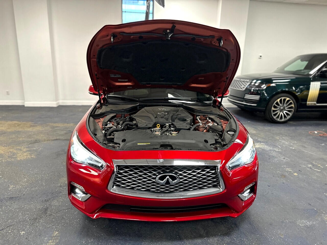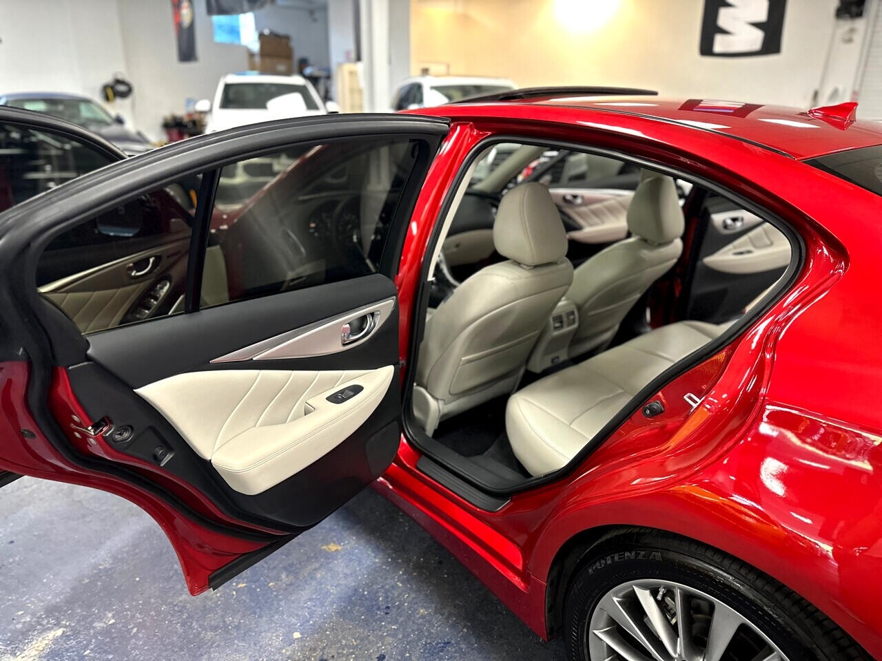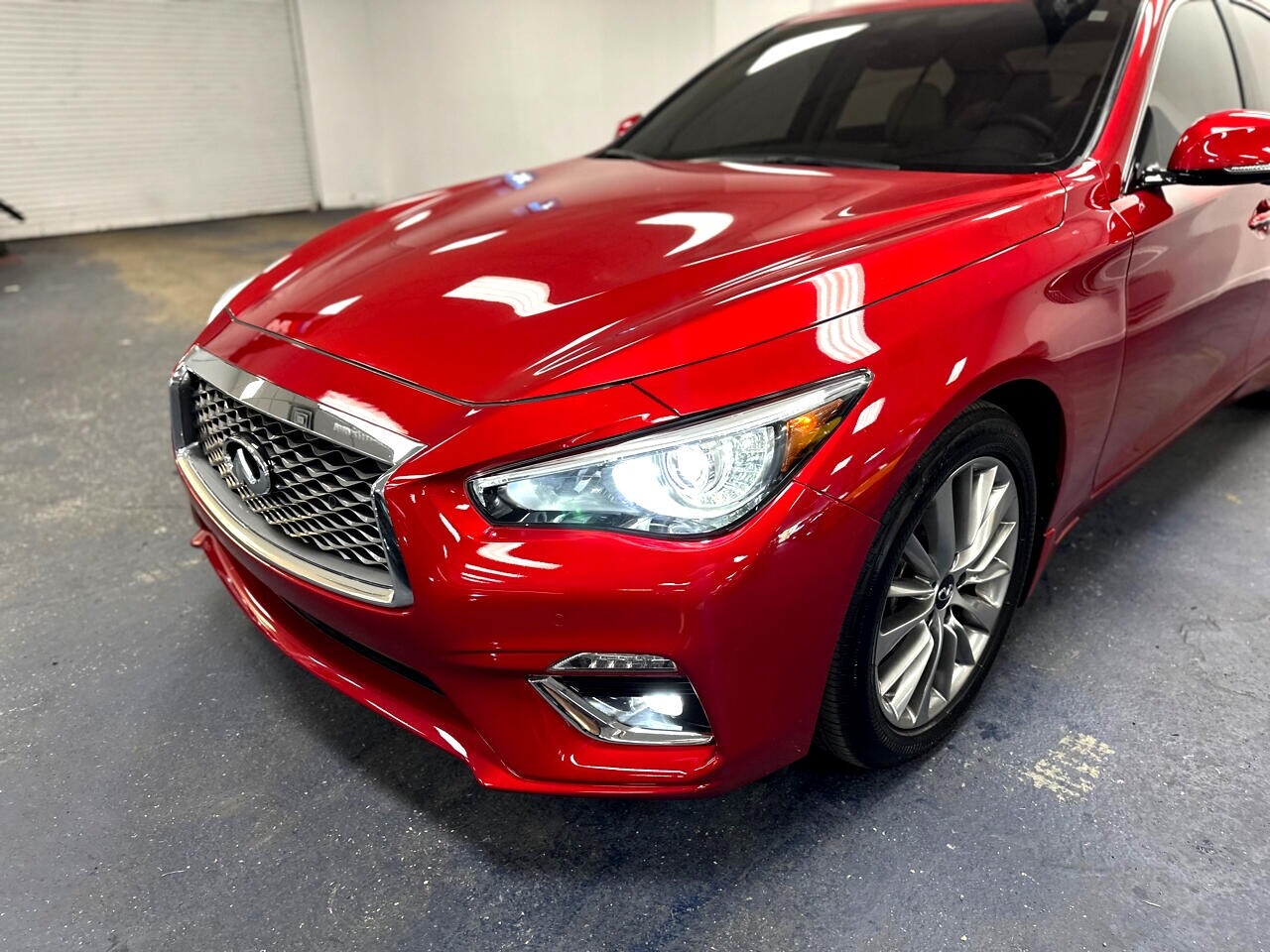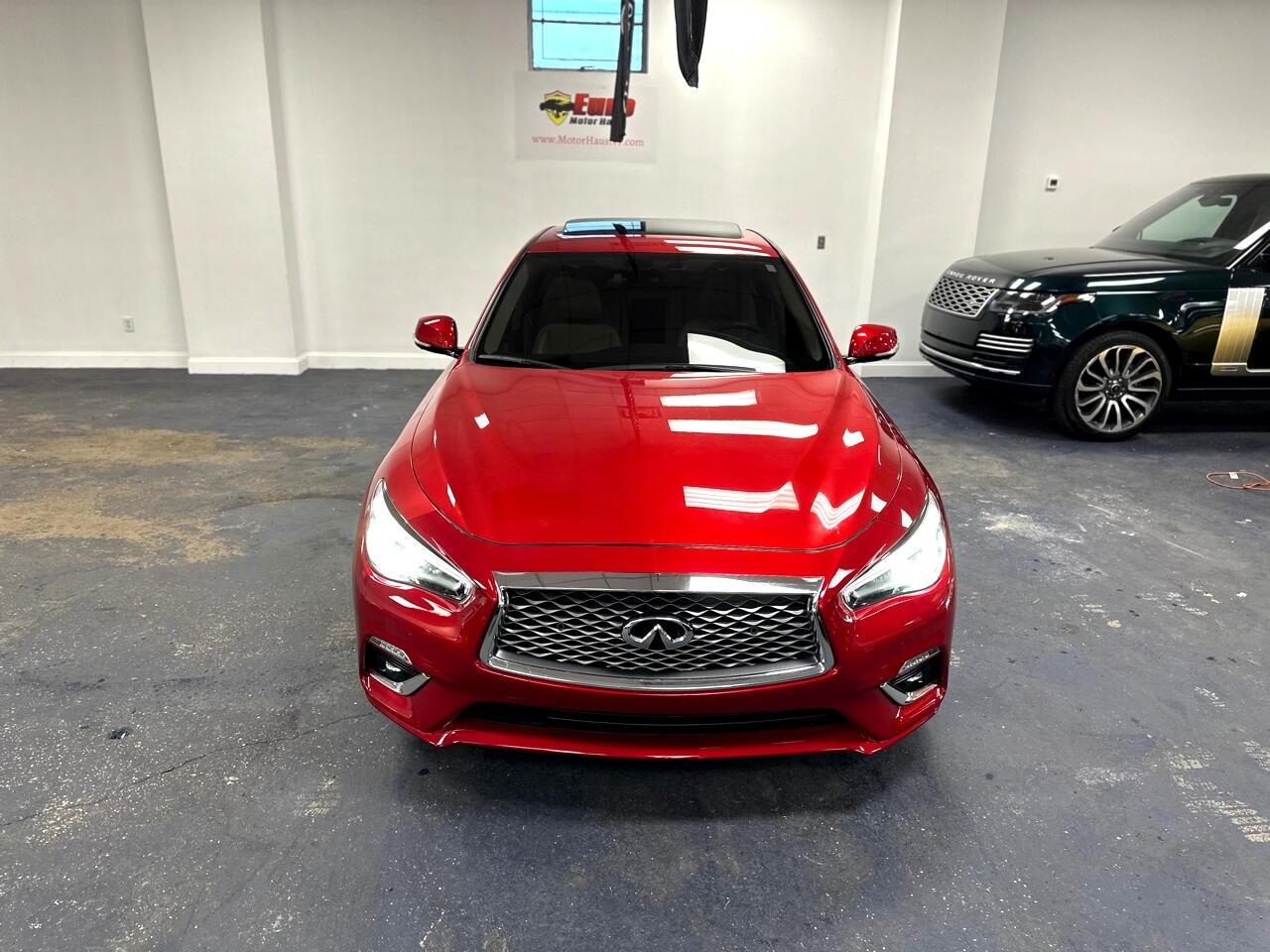 Introducing the 2022 Infiniti Q50 3.0t LUXE AWD, a dynamic and thrilling car with just 11,756 miles on the clock, making it practically new. This high-performance sedan boasts a head-turning Dynamic Sunstone Red exterior that perfectly complements the elegant white leather interior.Equipped with the following options, this Q50 is ready to impress. It comes with Dynamic Sunstone Red paint, adding a bold statement, and the luxurious and comfortable leather seating surfaces. The 50 State Emissions provide flexibility, while the Exclusive Paint Dynamic Sunstone Red adds a unique touch. The Cargo Package enhances practicality with shopping bag hooks, a cargo net, first aid kit, and trunk mat. Splash Guards protect the car's exterior, and rear USB Charging Ports ensure your devices stay powered. With the added Literature Kit and an Original Shipping Charge, the original retail price for this thrilling ride was $46,665. What sets this Q50 apart is the Sport Exhaust, adding an exhilarating acoustic experience to your driving. If you're looking for a hot and fun car with a like-new condition, this 2022 Infiniti Q50 is the perfect choice. Don't miss the chance to experience its excitement schedule a test drive today! ? Call or Text 516-614-1693 prior to your visit for special internet pricing and quick answers to your questions ? Visit Euro Motor Haus online at to see more pictures of this vehicle or stop in person and view our large variety of certified pre owned luxury vehicles at 305 East Shore Road Great Neck NY 11023 or call/text us at516-614-1693 today to schedule your test drive. We are a FRANCHISE Affiliated Luxury Pre-Owned Car dealership connected to over 4 Franchise Dealerships. What that means for you is that we have ability to obtain you low rate financing through our major lending institutions. Wells Fargo TD Bank Capital One Bank Bank of America US Bank Exeter auto finance Chase Automotive Ally Financial Santander Key Bank all NY based credit unions and many more.The benefits of which are then transferred to our clientele. We are able to offer FRANCHISE finance rates up to 84 months. With our affiliation we are also permitted to sell New Car Service Contracts here with our CERTIFIED PRE-OWNED PROGRAM backed by SafeGuard and GWC and NIADA Warrantech . Come in and have our friendly and knowledgeable staff facilitate your needs. Euro Motor Haus Inc does not guarantee any ad disclaimer guarantees etc on any 3rd party website.Please note that the advertised price does not include sales tax registration DMV transportation of vehicle costs incurred by the dealer as for safety including but not limited to brakes tires and fluids and any additional fees required by law. Prices exclude any additional charges included with the cost of closing including any governmental charges and taxes any finance charges documentation preparation or warranty. The advertised price represents the vehicle in its current condition and subject to change depending on any additional costs incurred or market fluctuations. Inventory prices are liable to change without warning. Vehicles are offered on a first come first serve basis. Please call to inquire. Advertised price includes all dealer rebates and incentives but not inclusive of certification & dealer prep. We make every attempt to adequately represent the condition and features of all inventory including vehicle information pictures pricing and status but there may be inaccuracies. Updates may be delayed. Dealer assumes no responsibility for inaccuracies in online information. All internet special prices expire at 11:59 pm today. Must present offer prior to expiration.All of our vehicles go through a rigorous Safeguard/ GWC & NIADA certified and backed inspection. They Are pre certified. You work you drive!!! Instant financing available!!! We have great relationships with many lending institutions and we are the Home of the Guaranteed Approval.All finance deals are subject to primary lender approval. Challenged credit no credit no problem! PRICES MAY DIFFER WITH PAYMENT OPTIONS. **Many are 1 owner or off lease vehicles. **Free Vehicle History Reports **100% TOTALLY Indoor Facility **Nationwide Financing available **Extended Service Contracts available **Our cars under 100k miles all come with at least a 30 day warranty standard **Many are out of state clean cars **Trade ins welcomed **No Haggle Pricing!