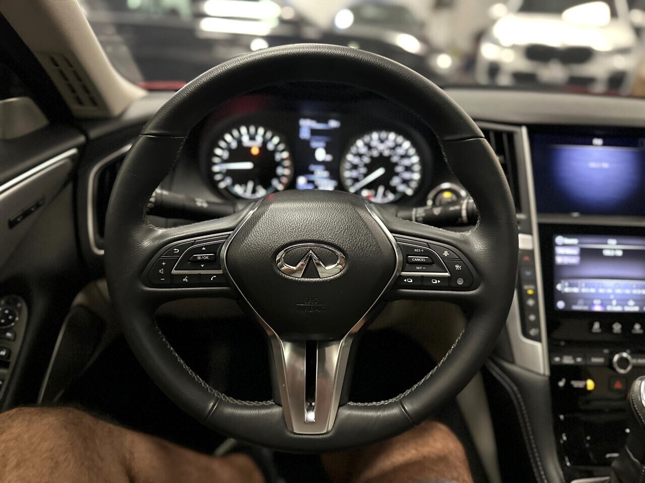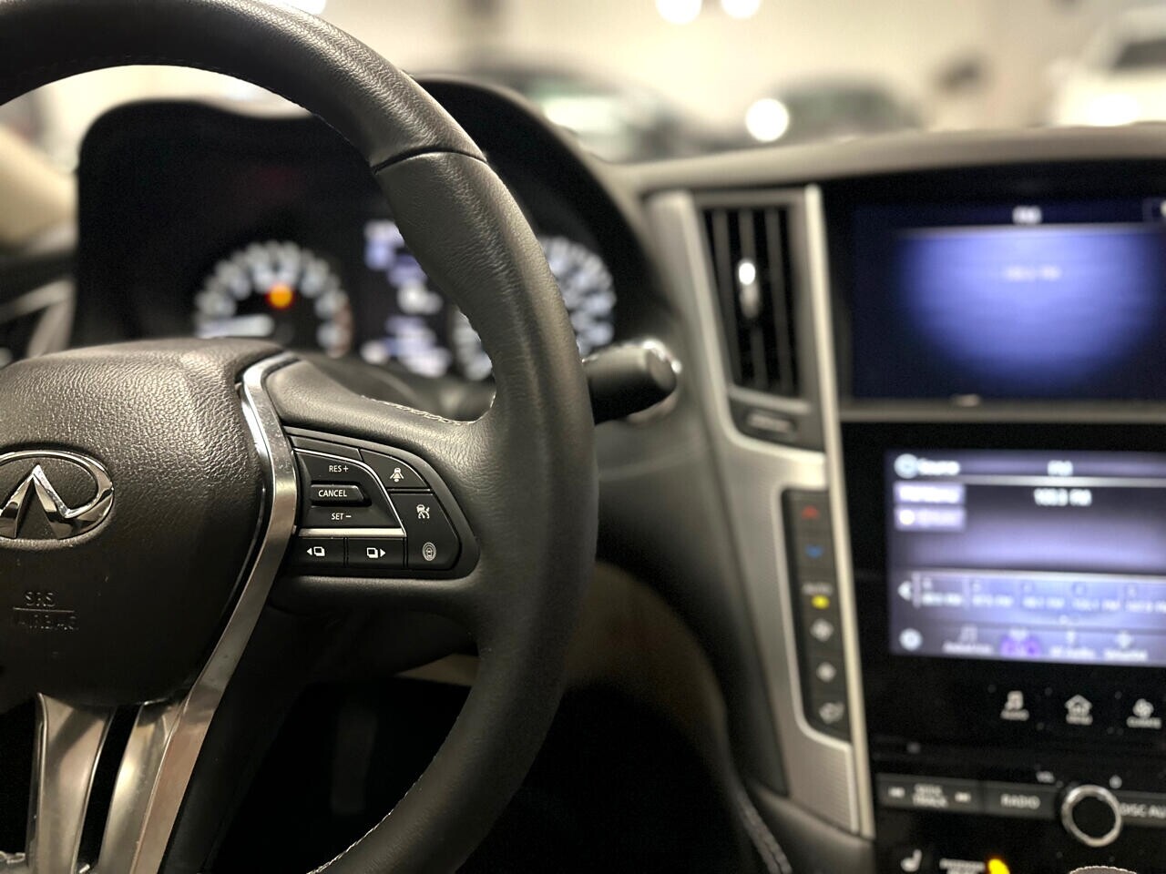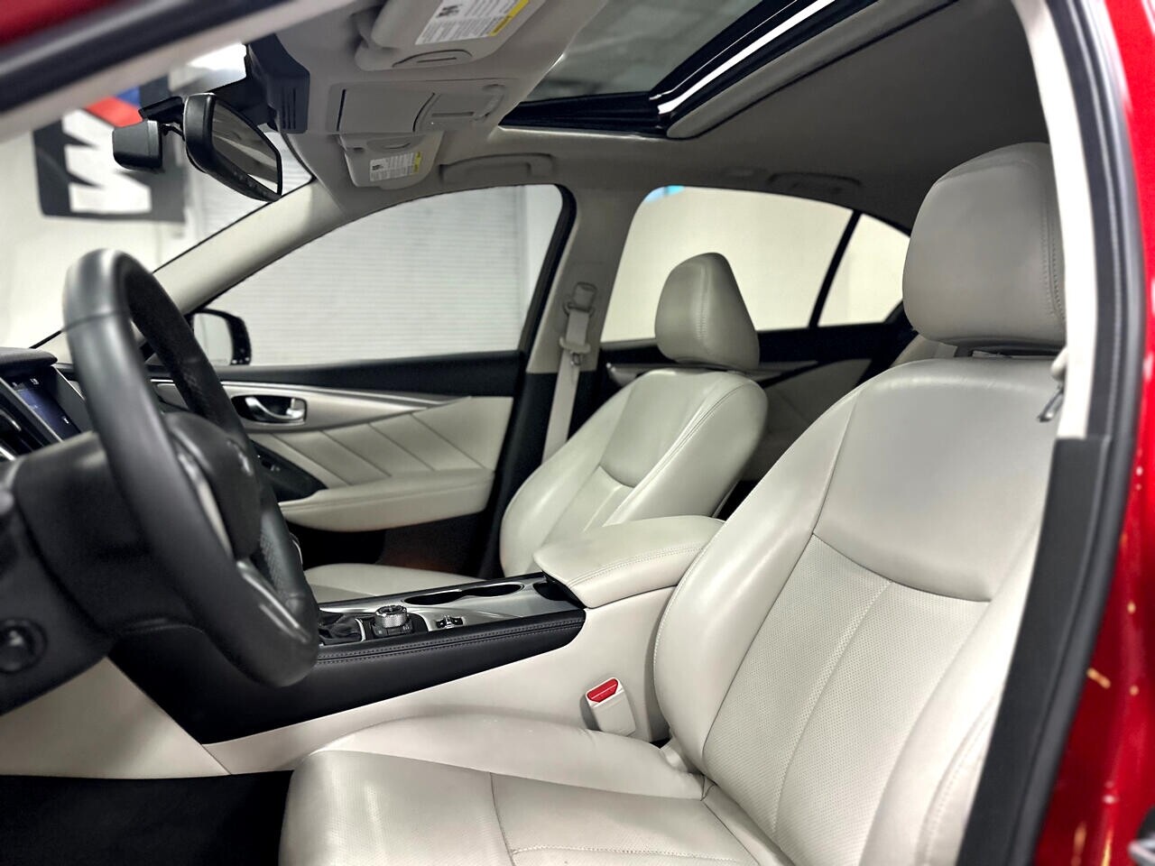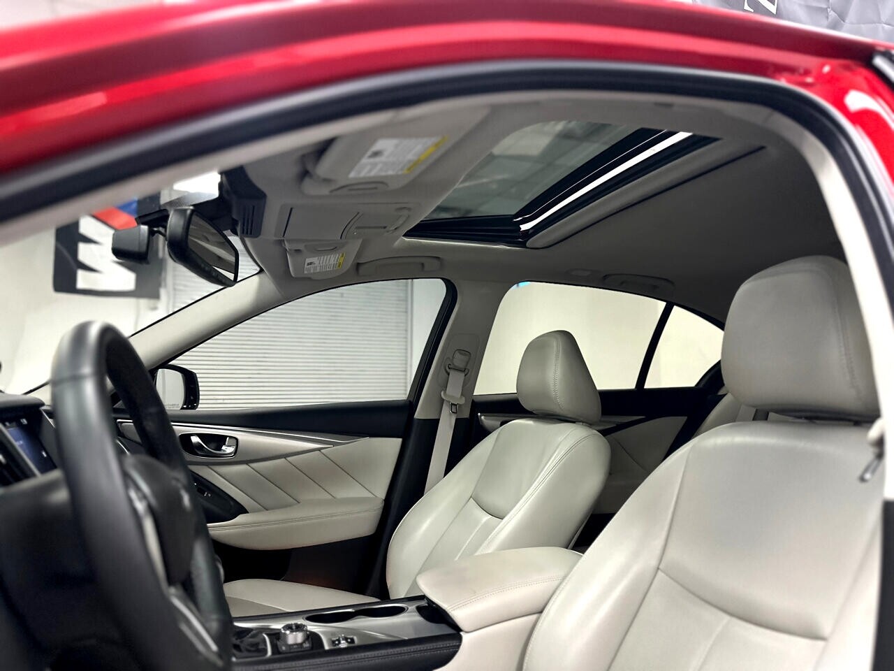 Introducing the 2022 Infiniti Q50 3.0t LUXE AWD, a dynamic and thrilling car with just 11,756 miles on the clock, making it practically new. This high-performance sedan boasts a head-turning Dynamic Sunstone Red exterior that perfectly complements the elegant white leather interior.Equipped with the following options, this Q50 is ready to impress. It comes with Dynamic Sunstone Red paint, adding a bold statement, and the luxurious and comfortable leather seating surfaces. The 50 State Emissions provide flexibility, while the Exclusive Paint Dynamic Sunstone Red adds a unique touch. The Cargo Package enhances practicality with shopping bag hooks, a cargo net, first aid kit, and trunk mat. Splash Guards protect the car's exterior, and rear USB Charging Ports ensure your devices stay powered. With the added Literature Kit and an Original Shipping Charge, the original retail price for this thrilling ride was $46,665. What sets this Q50 apart is the Sport Exhaust, adding an exhilarating acoustic experience to your driving. If you're looking for a hot and fun car with a like-new condition, this 2022 Infiniti Q50 is the perfect choice. Don't miss the chance to experience its excitement schedule a test drive today! ? Call or Text 516-614-1693 prior to your visit for special internet pricing and quick answers to your questions ? Visit Euro Motor Haus online at to see more pictures of this vehicle or stop in person and view our large variety of certified pre owned luxury vehicles at 305 East Shore Road Great Neck NY 11023 or call/text us at516-614-1693 today to schedule your test drive. We are a FRANCHISE Affiliated Luxury Pre-Owned Car dealership connected to over 4 Franchise Dealerships. What that means for you is that we have ability to obtain you low rate financing through our major lending institutions. Wells Fargo TD Bank Capital One Bank Bank of America US Bank Exeter auto finance Chase Automotive Ally Financial Santander Key Bank all NY based credit unions and many more.The benefits of which are then transferred to our clientele. We are able to offer FRANCHISE finance rates up to 84 months. With our affiliation we are also permitted to sell New Car Service Contracts here with our CERTIFIED PRE-OWNED PROGRAM backed by SafeGuard and GWC and NIADA Warrantech . Come in and have our friendly and knowledgeable staff facilitate your needs. Euro Motor Haus Inc does not guarantee any ad disclaimer guarantees etc on any 3rd party website.Please note that the advertised price does not include sales tax registration DMV transportation of vehicle costs incurred by the dealer as for safety including but not limited to brakes tires and fluids and any additional fees required by law. Prices exclude any additional charges included with the cost of closing including any governmental charges and taxes any finance charges documentation preparation or warranty. The advertised price represents the vehicle in its current condition and subject to change depending on any additional costs incurred or market fluctuations. Inventory prices are liable to change without warning. Vehicles are offered on a first come first serve basis. Please call to inquire. Advertised price includes all dealer rebates and incentives but not inclusive of certification & dealer prep. We make every attempt to adequately represent the condition and features of all inventory including vehicle information pictures pricing and status but there may be inaccuracies. Updates may be delayed. Dealer assumes no responsibility for inaccuracies in online information. All internet special prices expire at 11:59 pm today. Must present offer prior to expiration.All of our vehicles go through a rigorous Safeguard/ GWC & NIADA certified and backed inspection. They Are pre certified. You work you drive!!! Instant financing available!!! We have great relationships with many lending institutions and we are the Home of the Guaranteed Approval.All finance deals are subject to primary lender approval. Challenged credit no credit no problem! PRICES MAY DIFFER WITH PAYMENT OPTIONS. **Many are 1 owner or off lease vehicles. **Free Vehicle History Reports **100% TOTALLY Indoor Facility **Nationwide Financing available **Extended Service Contracts available **Our cars under 100k miles all come with at least a 30 day warranty standard **Many are out of state clean cars **Trade ins welcomed **No Haggle Pricing!