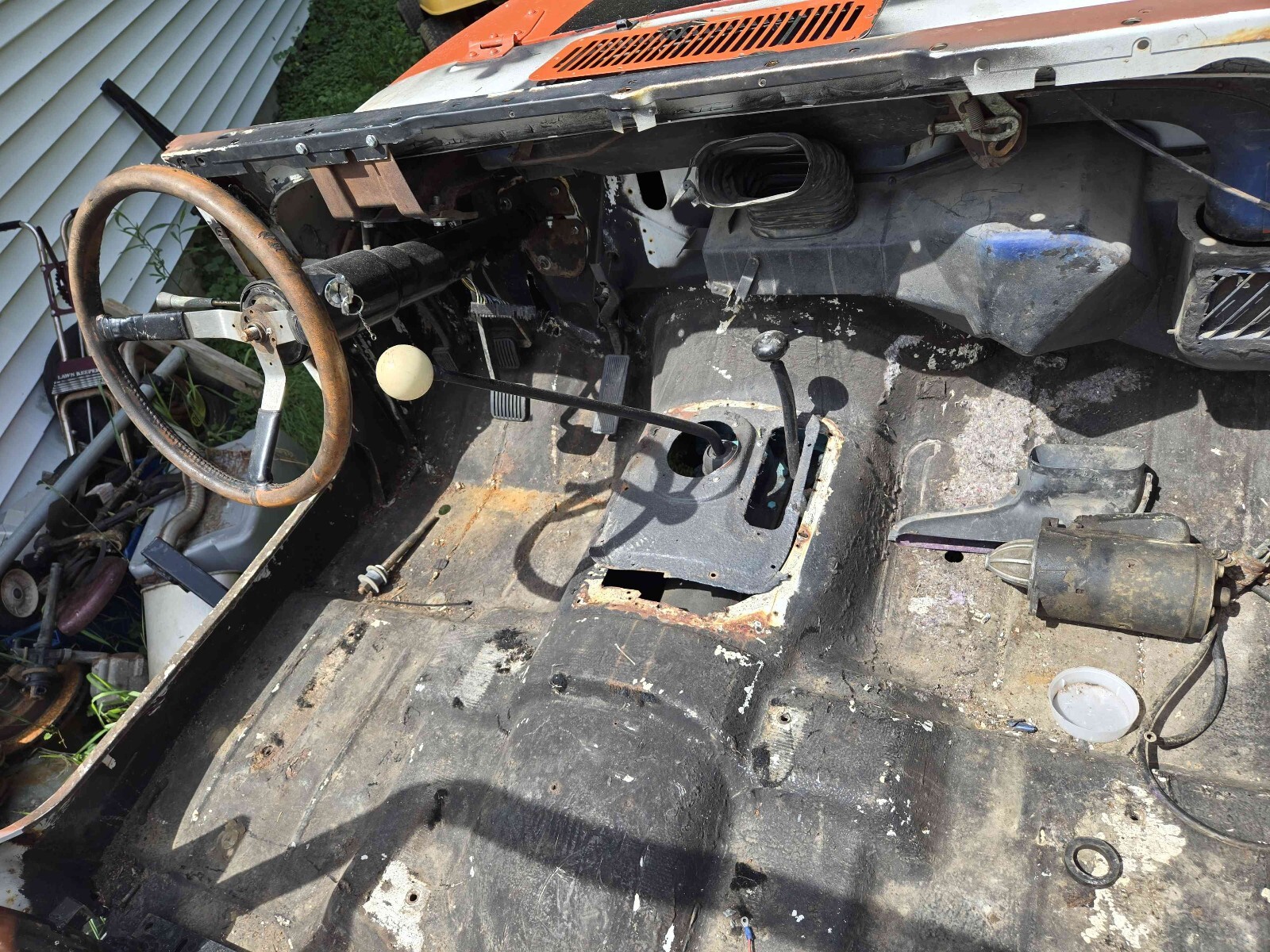 It has no oil pan. But the engine does turn over by hand. 4 speed manual, Dana 20 T case. Drivetrain mostly complete
