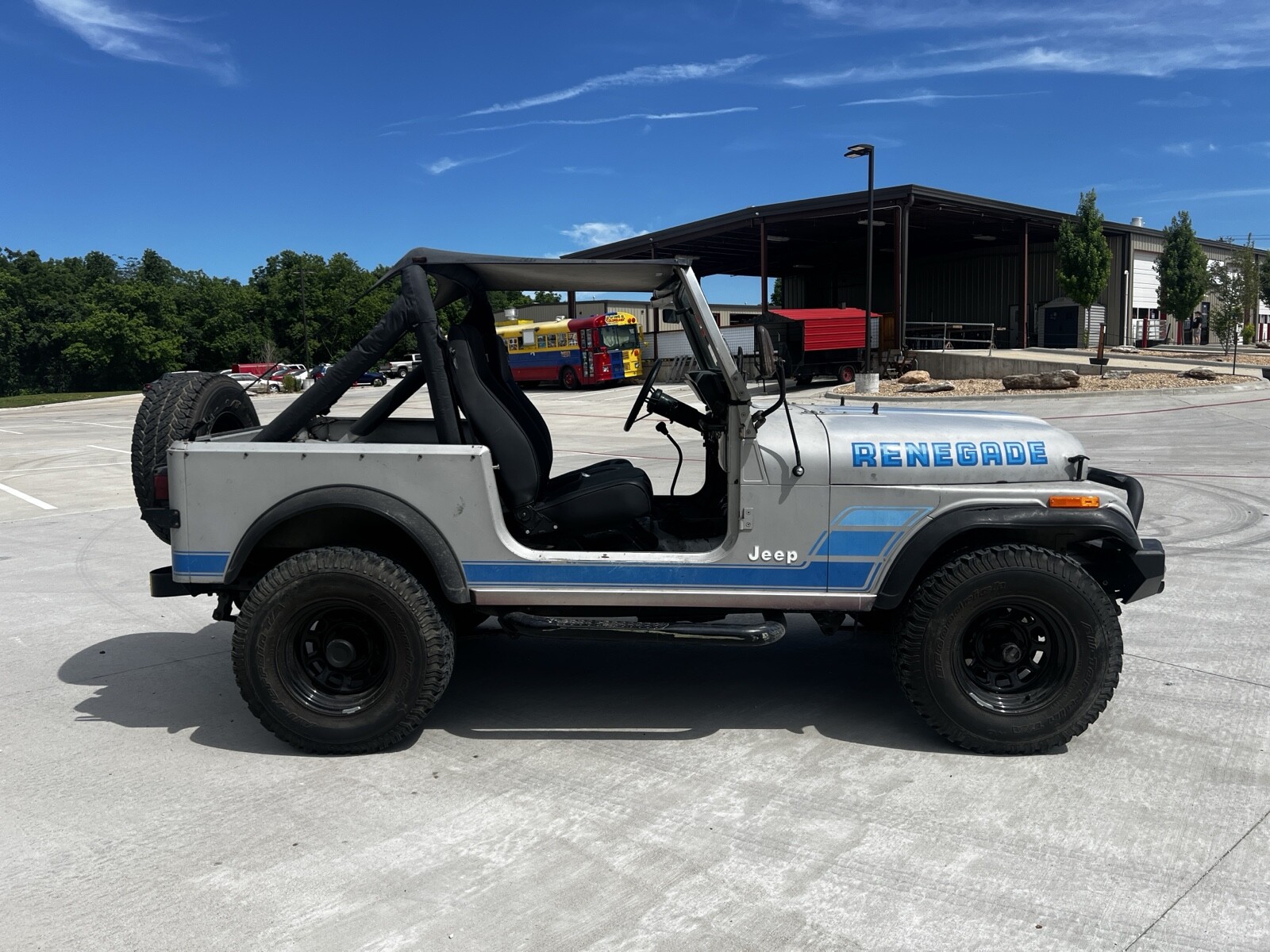 This 1983 CJ7 Renegade is in fantastic condition! The original paint has a great appearance and the original decals are attention grabbing. You don’t see very many CJs with original paint and decals! This CJ came from Arizona so it is rust free. The 258 inline 6 starts right up and the 4 speed transmission shifts smoothly down the road. The transfer case clicks in 4lo with no issues. This Jeep comes with a bikini top to keep the sun off your shoulders on those summer drives. Please reach out with any questions you may have. I have a few CJs for sale at the moment so if this isn’t the one you’re looking for, ask about the others and let’s make a deal!Seller's Notes