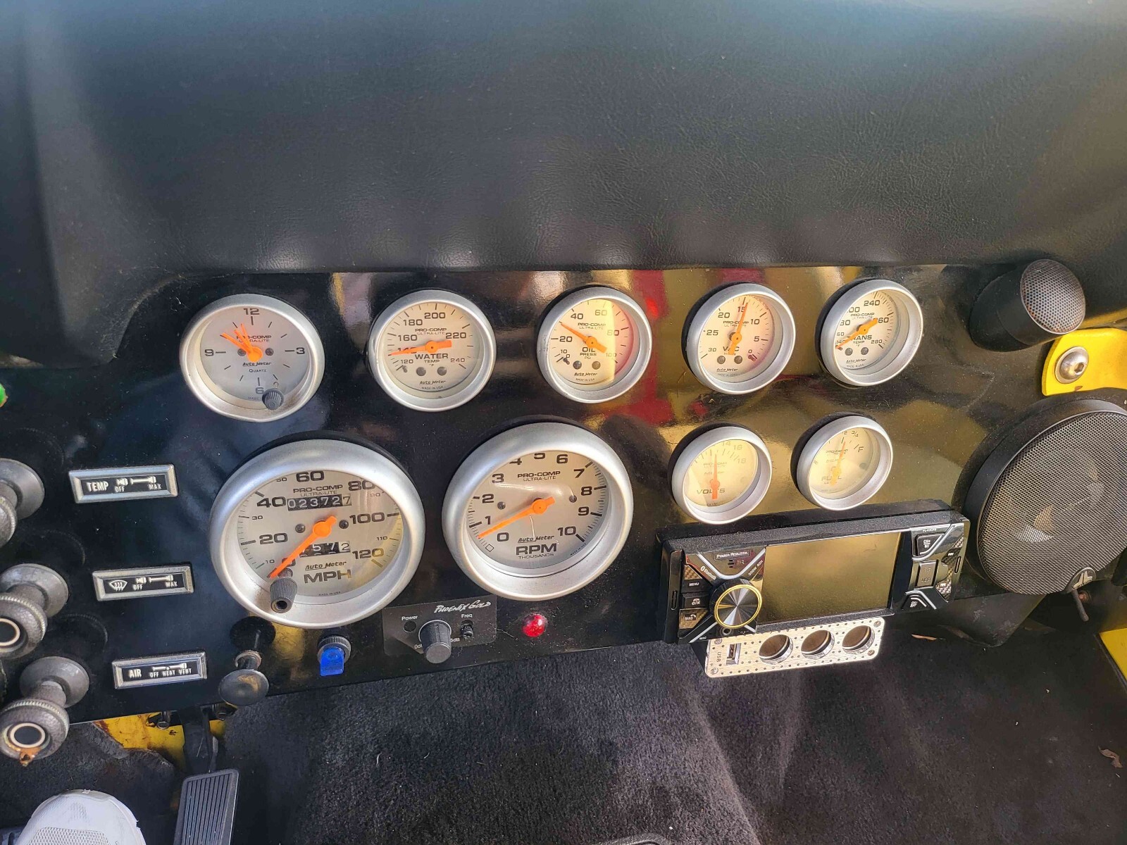 All working custom guages,, custom seats and belts, custom stereo with speakers, works and sounds good. Bluetooth and phone pairing,,