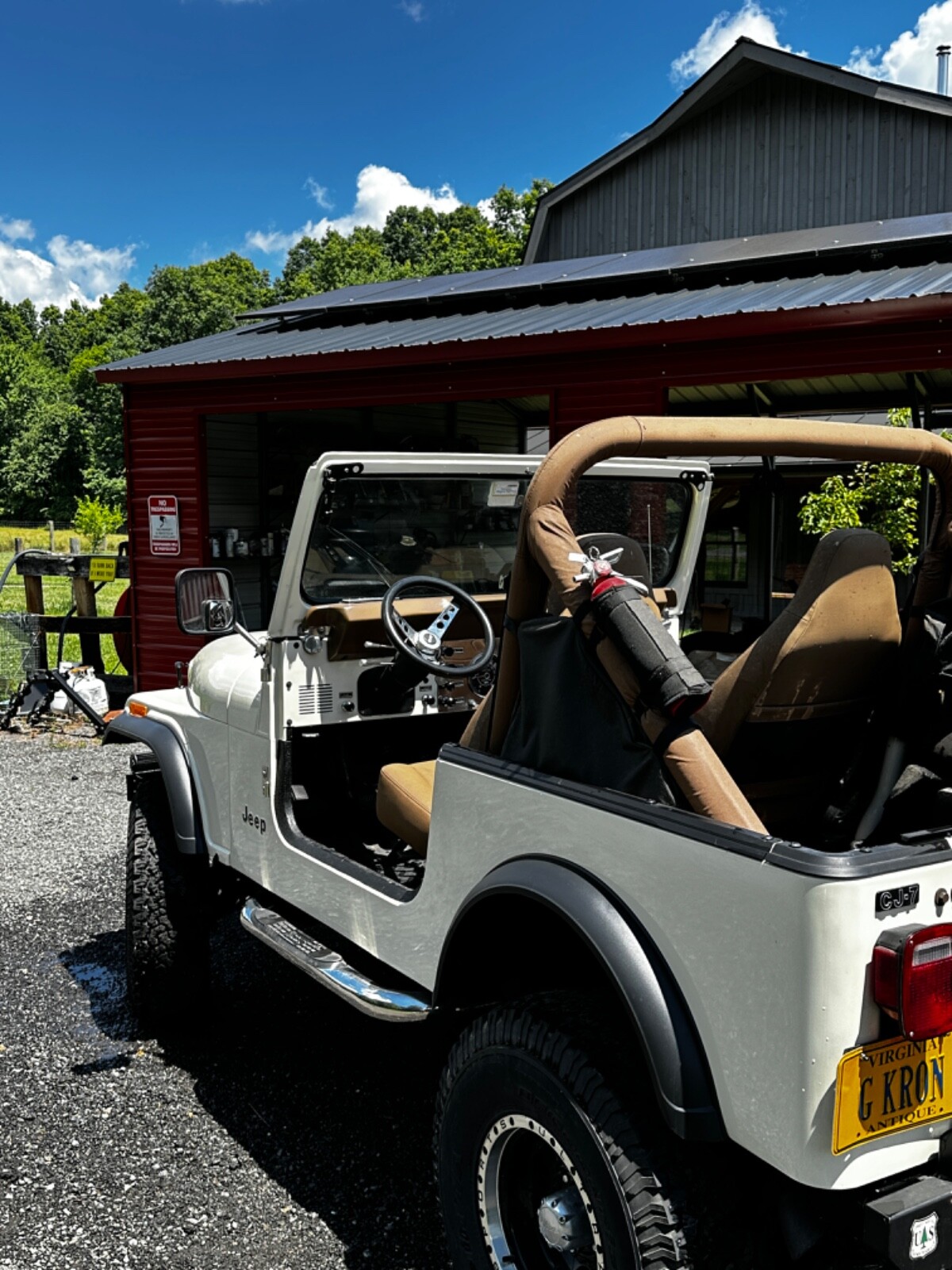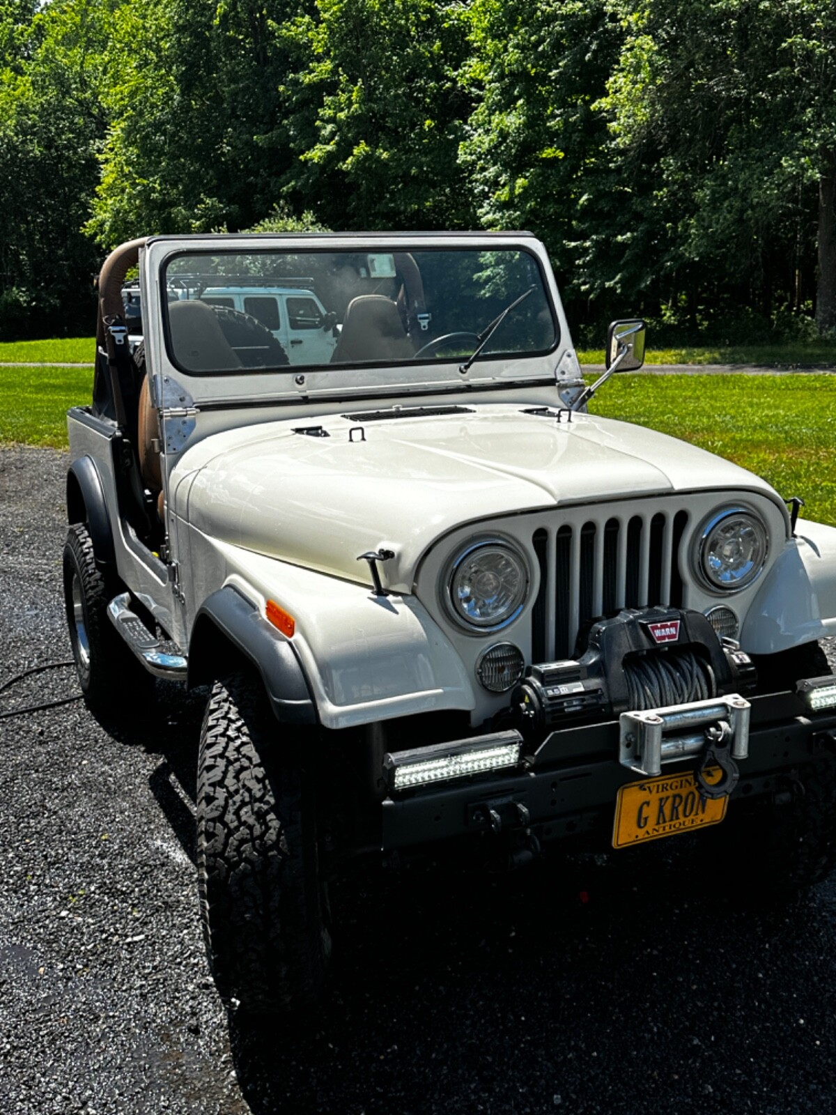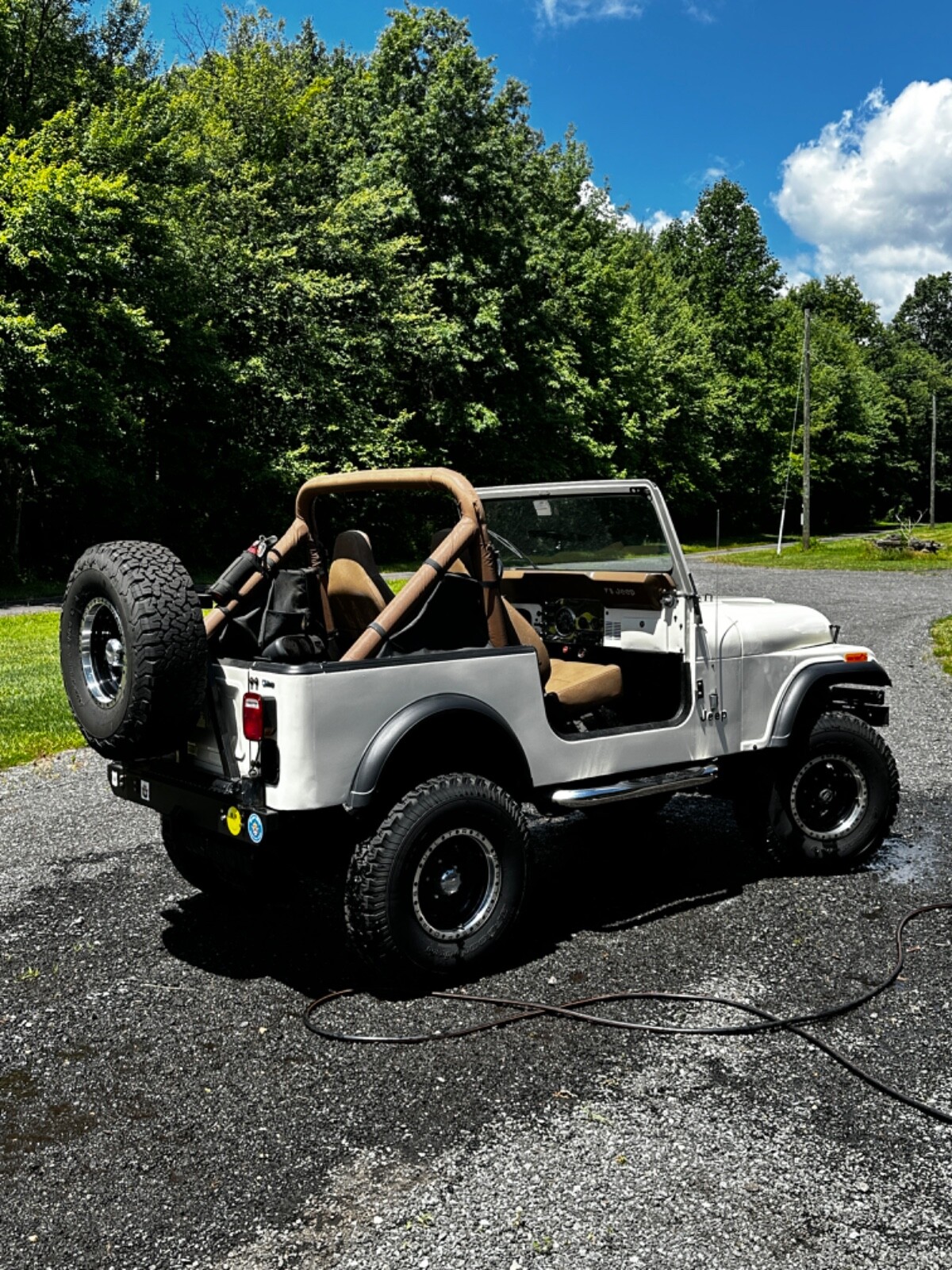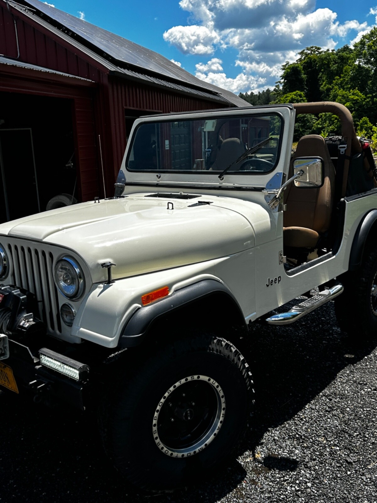 Kid is headed to college soon!!! Dad's toys must goThis CJ7 has been a multi year project of mine. I have replaced nearly everything except axles. If you were considering getting a fun project there are still a couple things for you to do but I have done ALL the heavy lifting on this classic. There is a fresh 4.2 (professionally rebuilt, less than 400 miles on it). I've added Holley fuel injection (best aftermarket thing I've ever installed). New power brakes(pads, rotors, booster, master cylinder), less than 500 miles on BFG ATs, clutch, pressure plate and throwout bearing on rebuilt 4spd. New U joints, radiator, electric fan, battery, seats are near mint with the matching (HARD to FIND) 2 piece doors and bikini top. Warn winch, LED lights, Stereo, speaker and AMP, roll bar pad, extra large gas tank. This CJ was from CA and has perfect frame and body. Fresh PAINT too!! Fun things for you to do: Need one wiper arm. Gas gauge has issues working all the time but ALL major items have been replaced. This is one toy you won't be disappointed with!BE Advised: The passenger side photo has reflections on it. NOT Wrinkles in the body