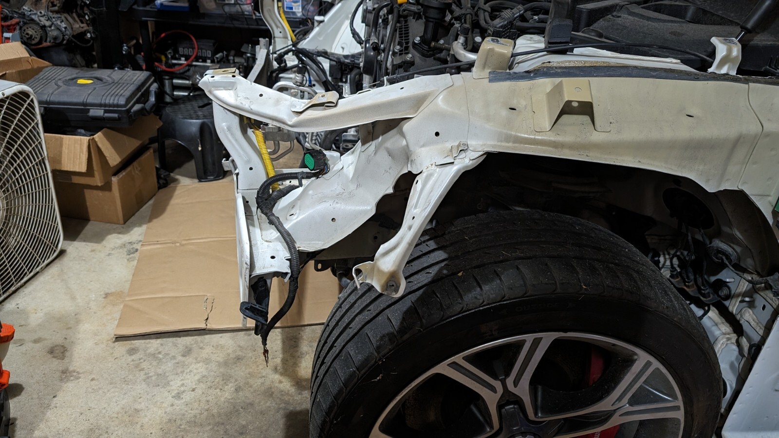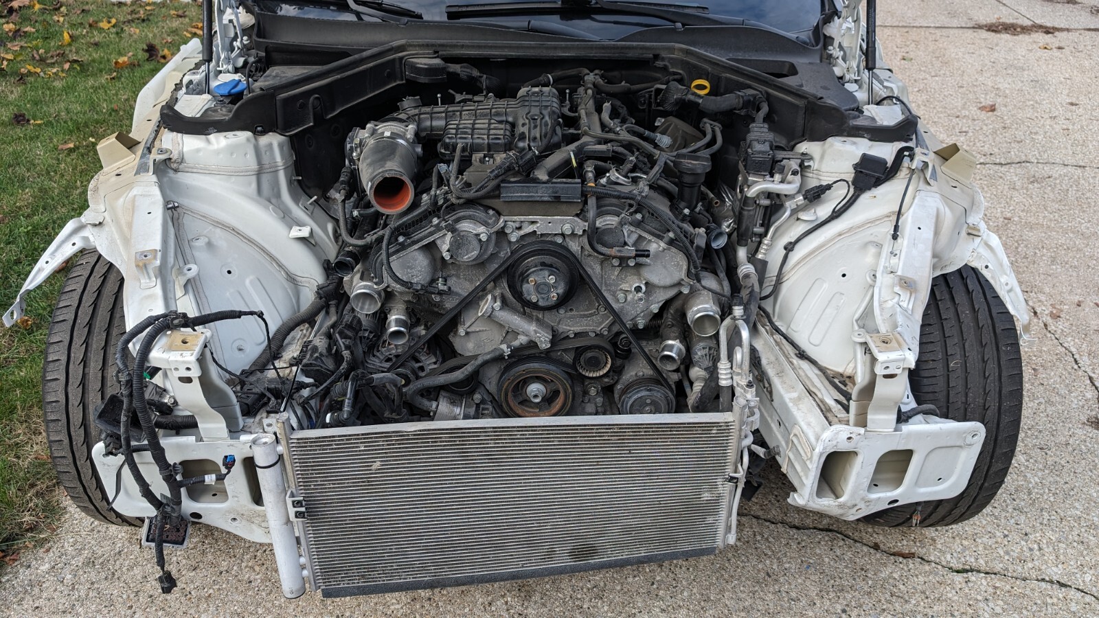 Michigan Salvage title. Runs and Drives good. Comes with good airbags but front seat belts need to be rebuilt. Comes with new radiator and KN CAI. Front left frame horn needs work along with passenger A pillar. Needs windshield. Front passenger door has been replaced and attached for transporting. Still needs at least a hood, front core support, bumper bar and cover, left headlamp, right is good. Needs drivers fender. I have the passenger. Needs intercooler, piping is good. AC is good and holding. Misc plastics up front as well. Just changed the oil. Motor runs great and car drives straight. No time to finish, been stored inside. Pictures show what it looked like when I bought at auction and what it looks like now. I will add more details as I can remember them. It's been sitting for almost a year. I have started it now and then and it always fires up. It is AWD, ebay shows RWD. Good oppurtunity for the right buyer. Any questions please send me a message. It will load onto a trailer no problem. I will work on getting videos posted here or on youtube of the car running and driving. Thanks!