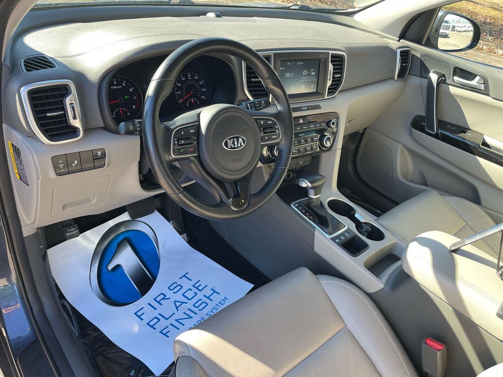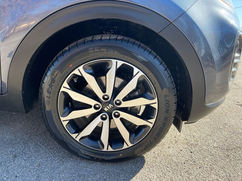 THIS VEHICLE INCLUDES THE FOLLOWING FEATURES AND OPTIONS: Sportage EX AWD, 4D Sport Utility, 2.4L I4 DGI DOHC 16V, 6-Speed Automatic Electronic with Overdrive, AWD, Pacific Blue, Gray Leather, 18 Alloy Wheels, 3.20 Axle Ratio, 6 Speakers, AM/FM radio: SiriusXM, Apple CarPlay & Android Auto, Brake assist, Electronic Stability Control, Emergency communication system: 911 Connect, Four wheel independent suspension, Front Bucket Seats, Front fog lights, Fully automatic headlights, Heated door mirrors, Heated Front Bucket Seats, Heated front seats, Leather Seat Trim, Low tire pressure warning, Radio: AM/FM/SiriusXM, Remote keyless entry, Speed-sensing steering, Split folding rear seat, Traction control, 4-Wheel Disc Brakes, ABS brakes, Air Conditioning, Automatic temperature control, Bumpers: body-color, Carpet Floor Mats, Cruise Control, Delay-off headlights, Driver door bin, Driver vanity mirror, Dual front impact airbags, Dual front side impact airbags, Exterior Parking Camera Rear, Front anti-roll bar, Front Center Armrest, Front dual zone A/C, Front reading lights, Illuminated entry, Leather Shift Knob, Occupant sensing airbag, Outside temperature display, Overhead airbag, Overhead console, Panic alarm, Passenger door bin, Passenger vanity mirror, Power door mirrors, Power driver seat, Power steering, Power windows, Rear anti-roll bar, Rear seat center armrest, Rear window defroster, Rear window wiper, Roof rack: rails only, Security system, Spoiler, Steering wheel mounted audio controls, Tachometer, Telescoping steering wheel, Tilt steering wheel, Trip computer, Turn signal indicator mirrors, and Variably intermittent wipers.