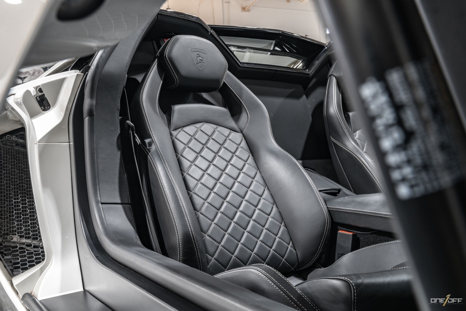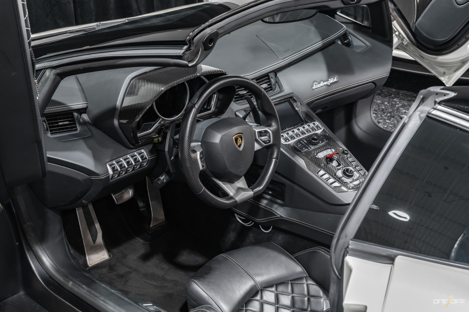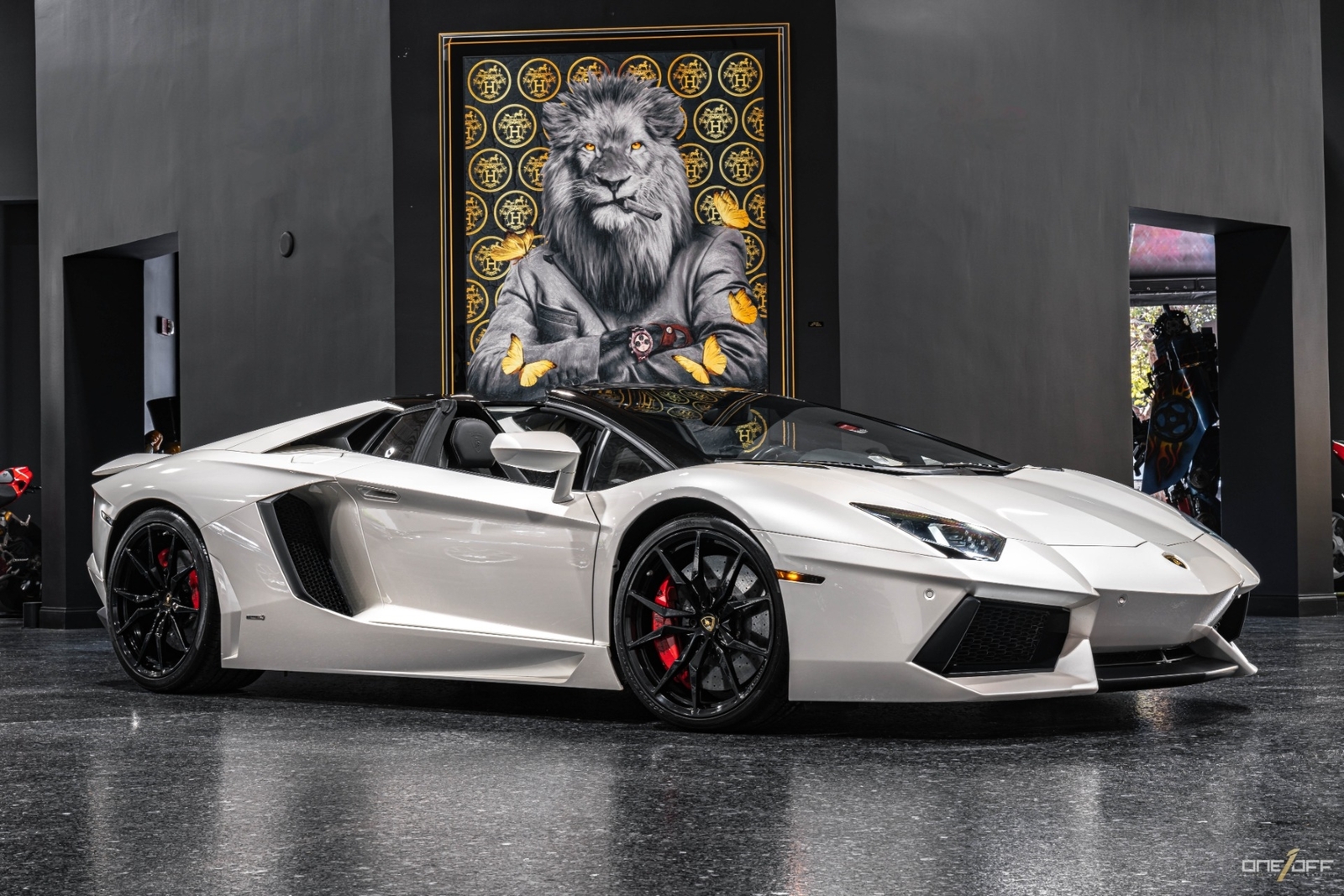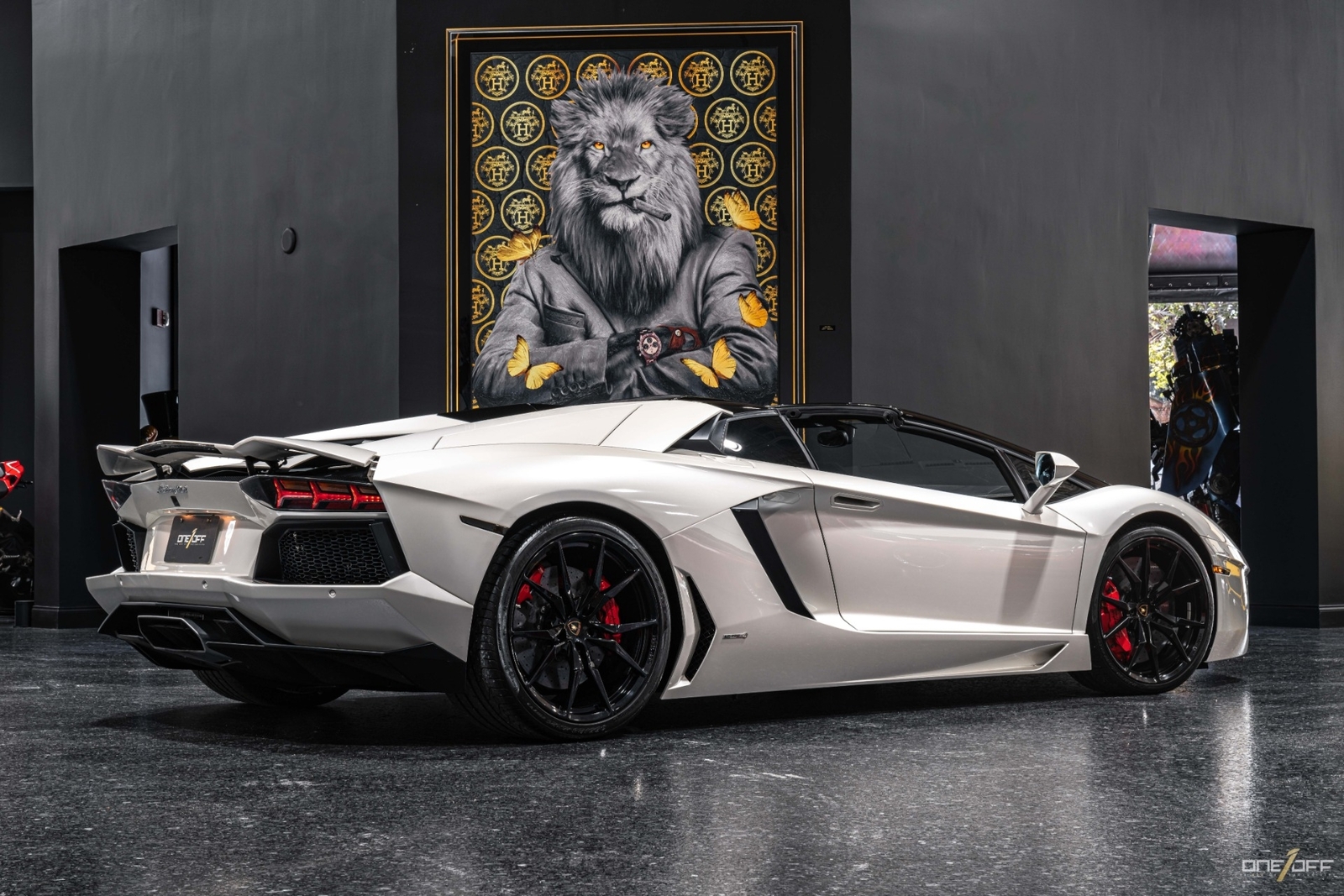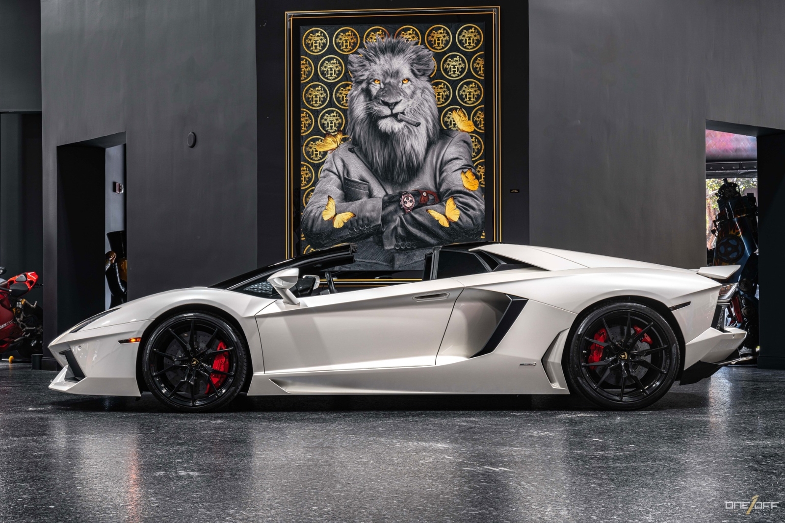 This color is to die for. The One-Off Collection is pleased to present this 2016 Aventador Roadster in Ad Personam Balloon White. On top of the multistage, special order color, this Roadster features the rare carbon interior package, fully electric and heated seats providing luxury & convenience, park assist with reverse camera giving you peace of mind, 20"/21" Dione forged wheels, and the list goes on. You will not find an Aventador Roadster in this color with these miles and options anywhere else, don't let this opportunity turn into a regret.