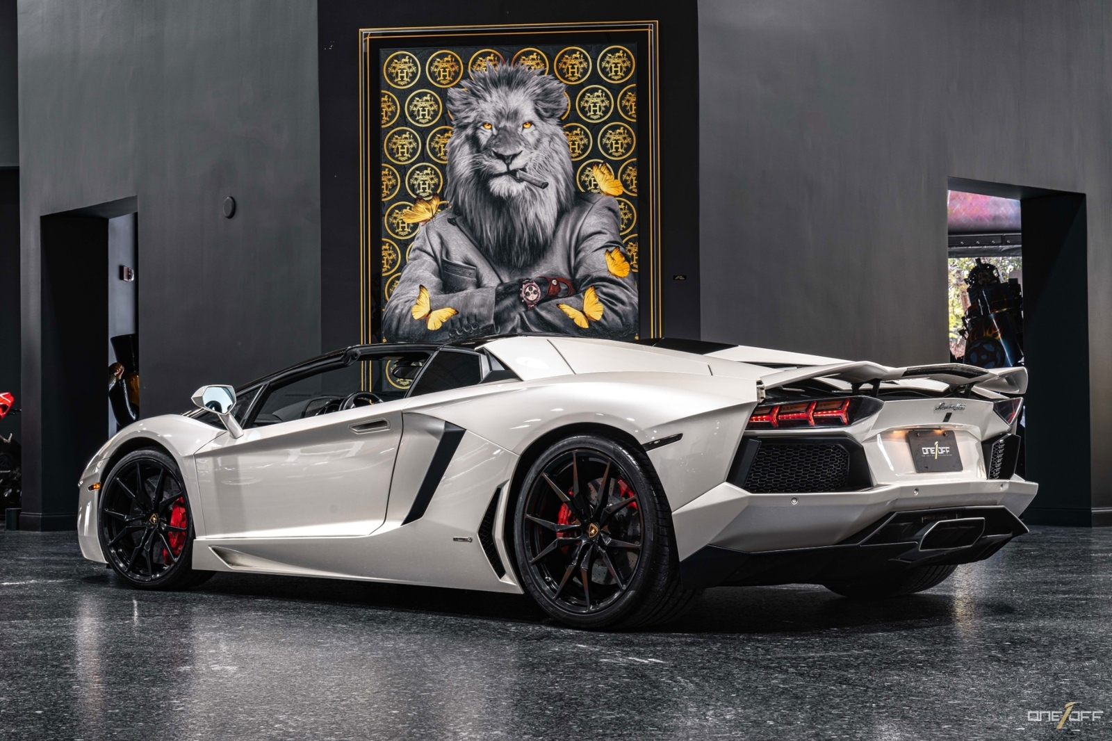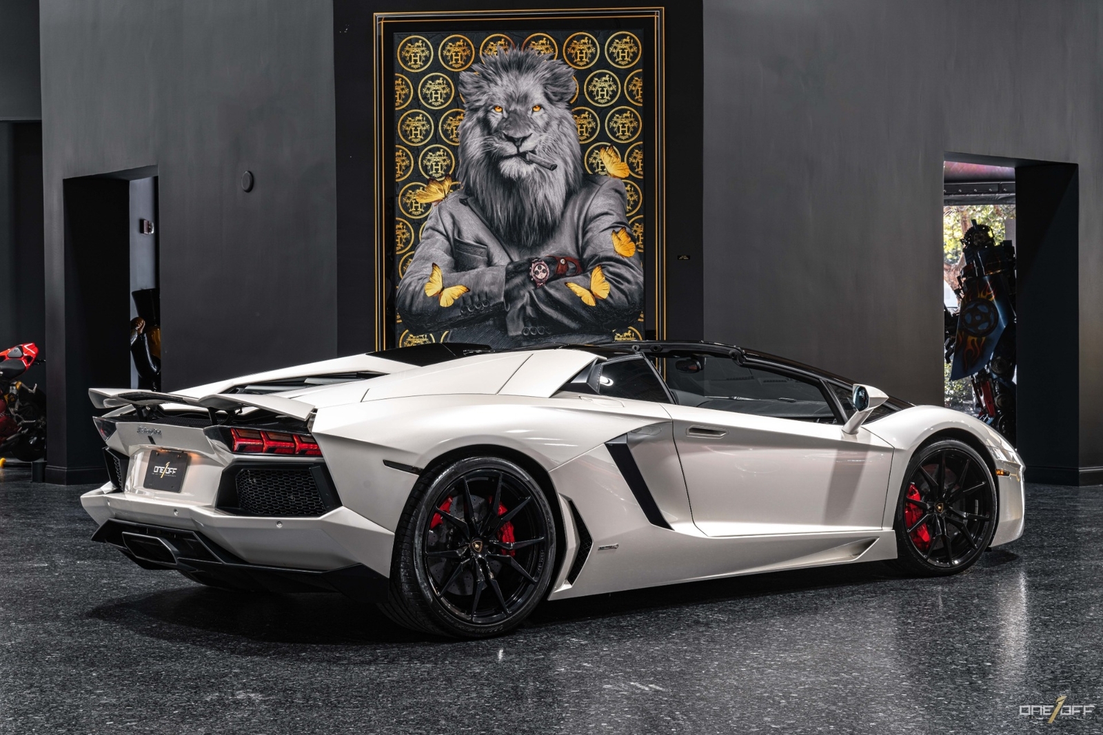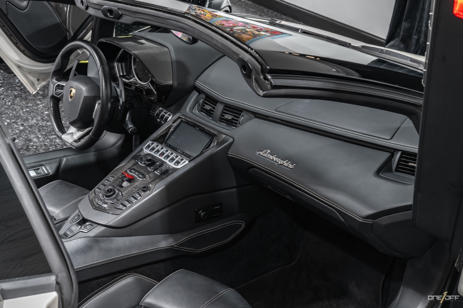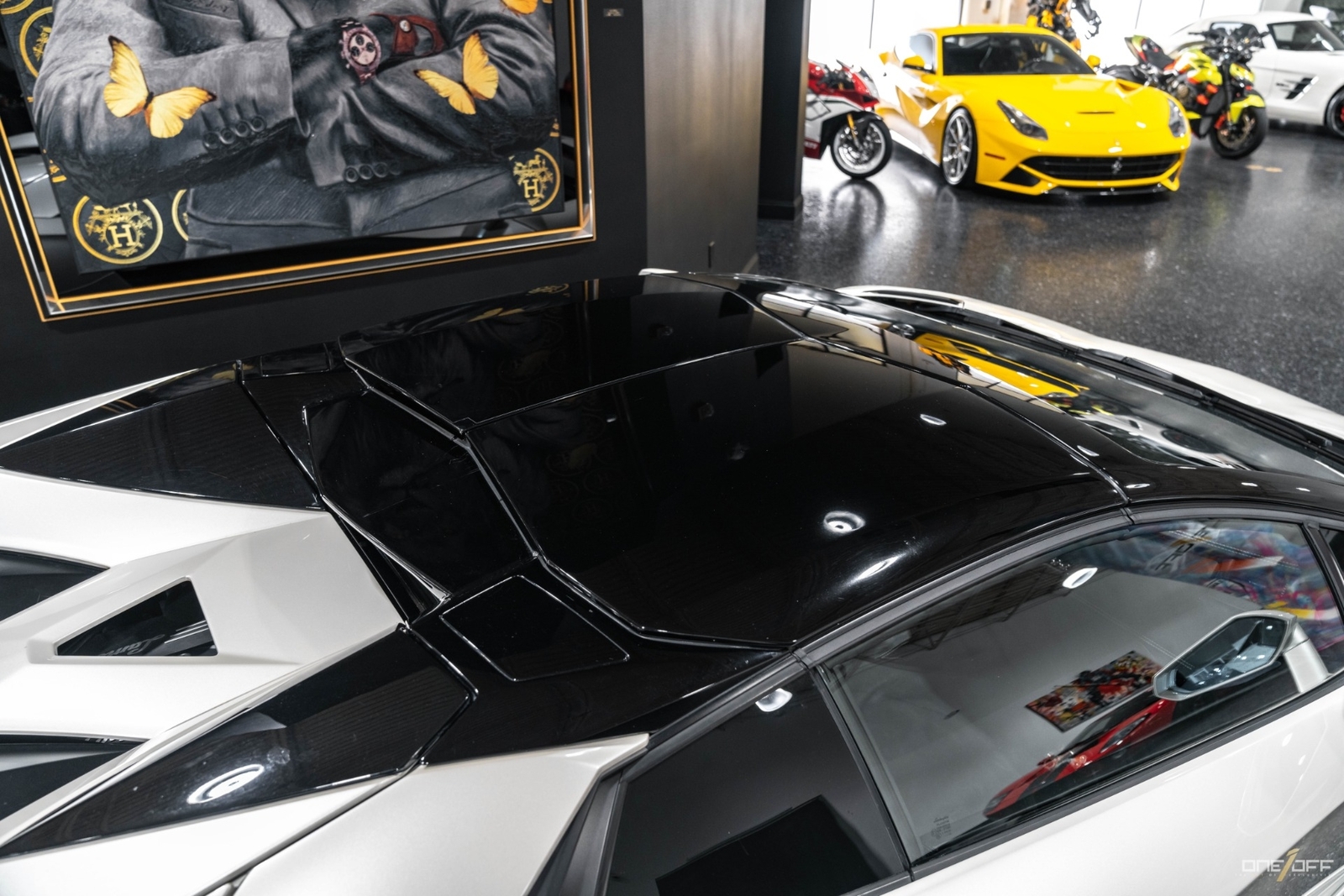 This color is to die for. The One-Off Collection is pleased to present this 2016 Aventador Roadster in Ad Personam Balloon White. On top of the multistage, special order color, this Roadster features the rare carbon interior package, fully electric and heated seats providing luxury & convenience, park assist with reverse camera giving you peace of mind, 20"/21" Dione forged wheels, and the list goes on. You will not find an Aventador Roadster in this color with these miles and options anywhere else, don't let this opportunity turn into a regret.