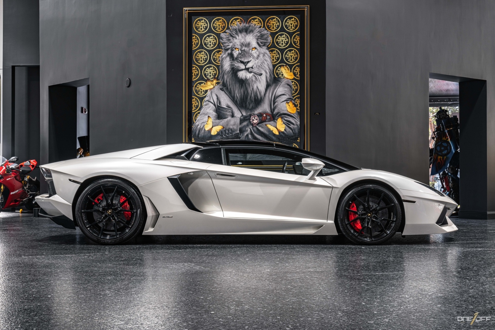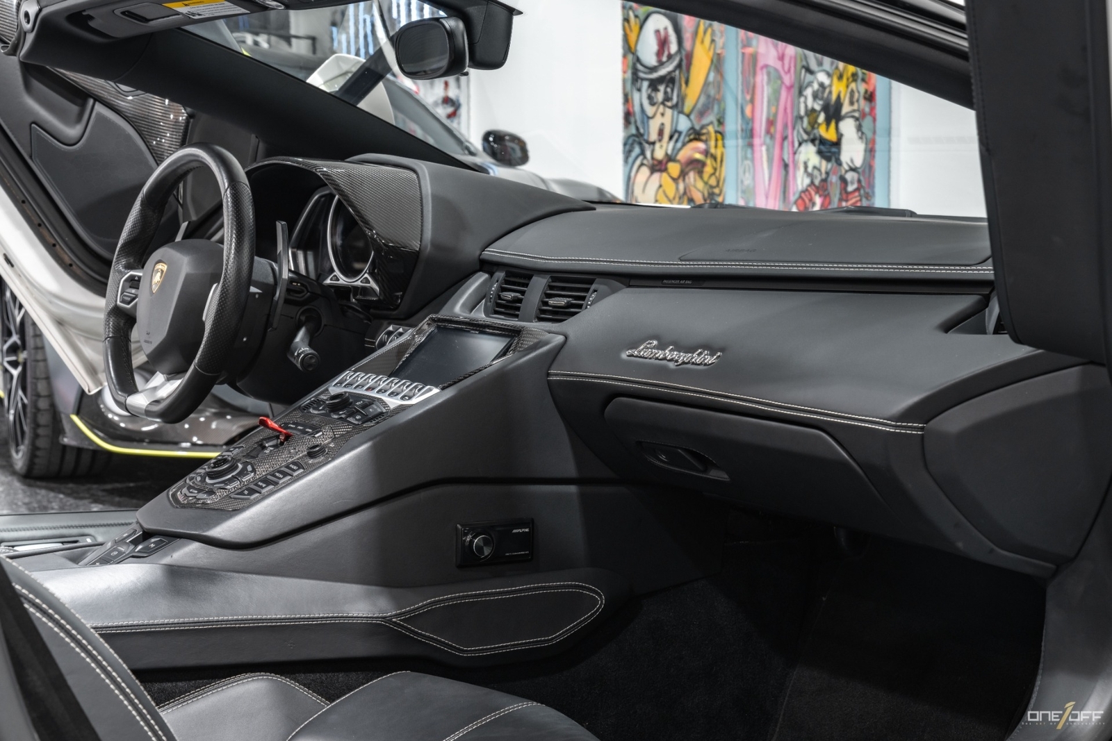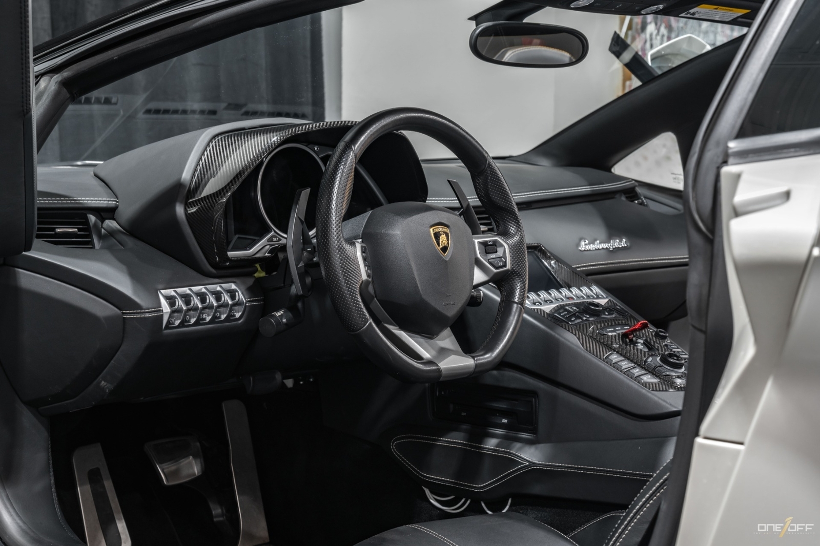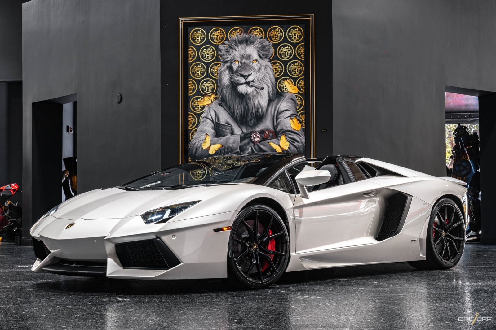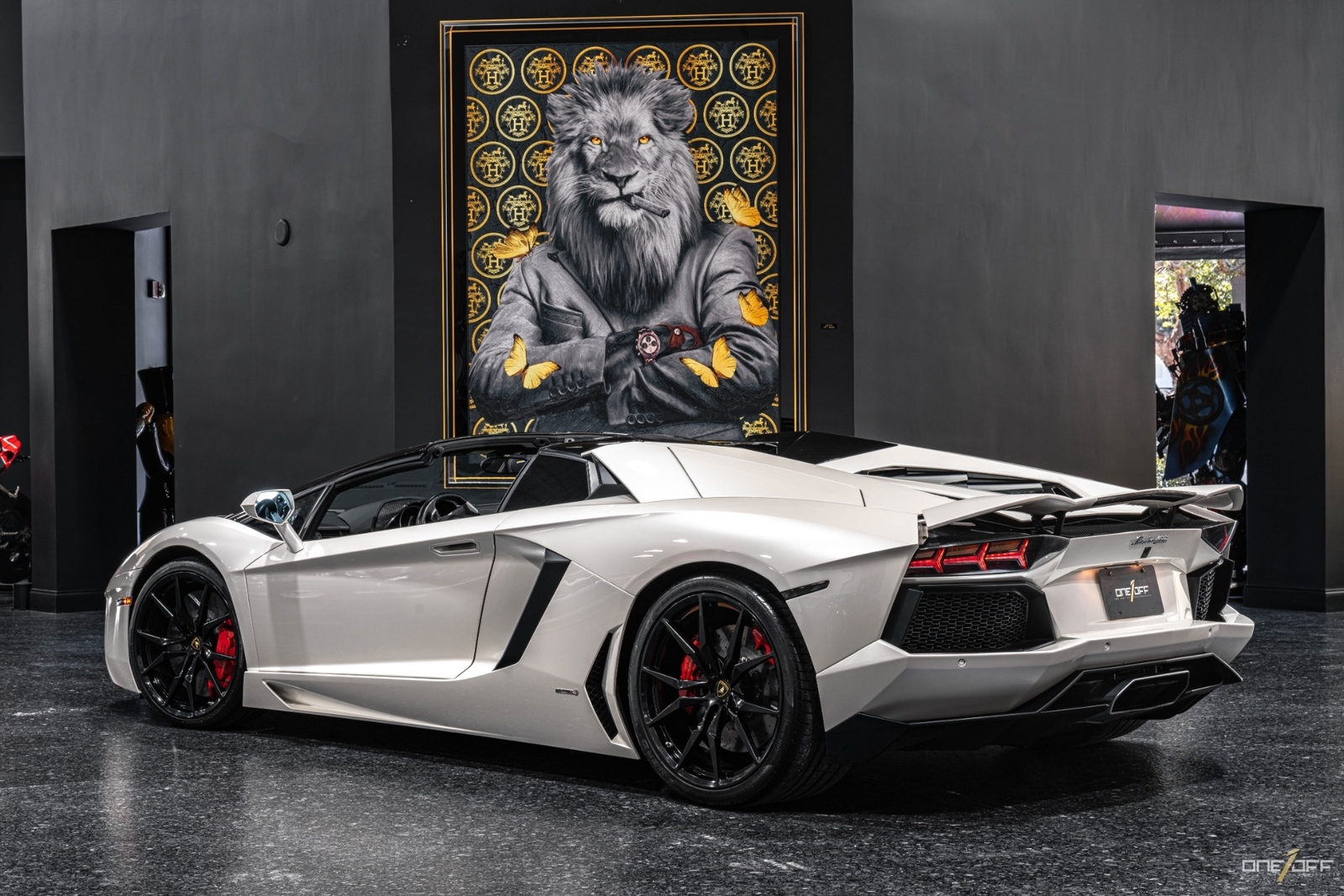 This color is to die for. The One-Off Collection is pleased to present this 2016 Aventador Roadster in Ad Personam Balloon White. On top of the multistage, special order color, this Roadster features the rare carbon interior package, fully electric and heated seats providing luxury & convenience, park assist with reverse camera giving you peace of mind, 20"/21" Dione forged wheels, and the list goes on. You will not find an Aventador Roadster in this color with these miles and options anywhere else, don't let this opportunity turn into a regret.