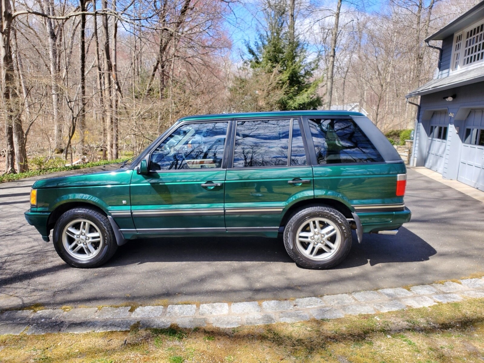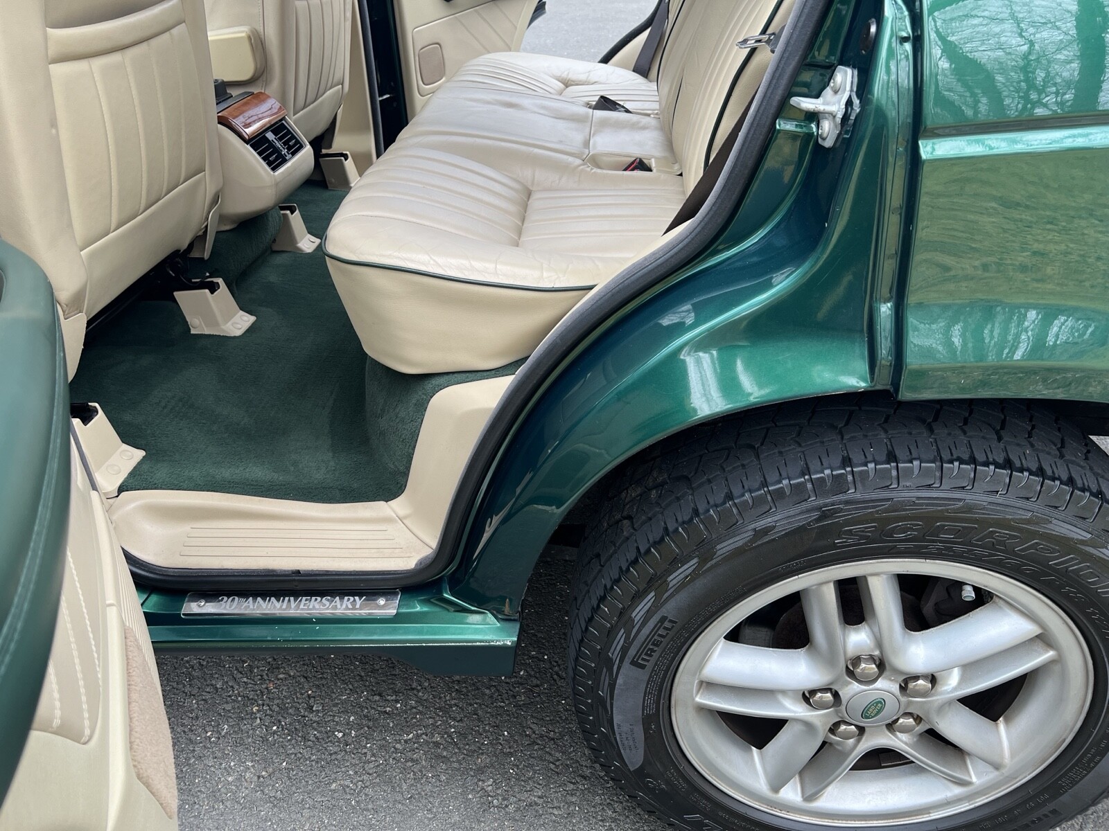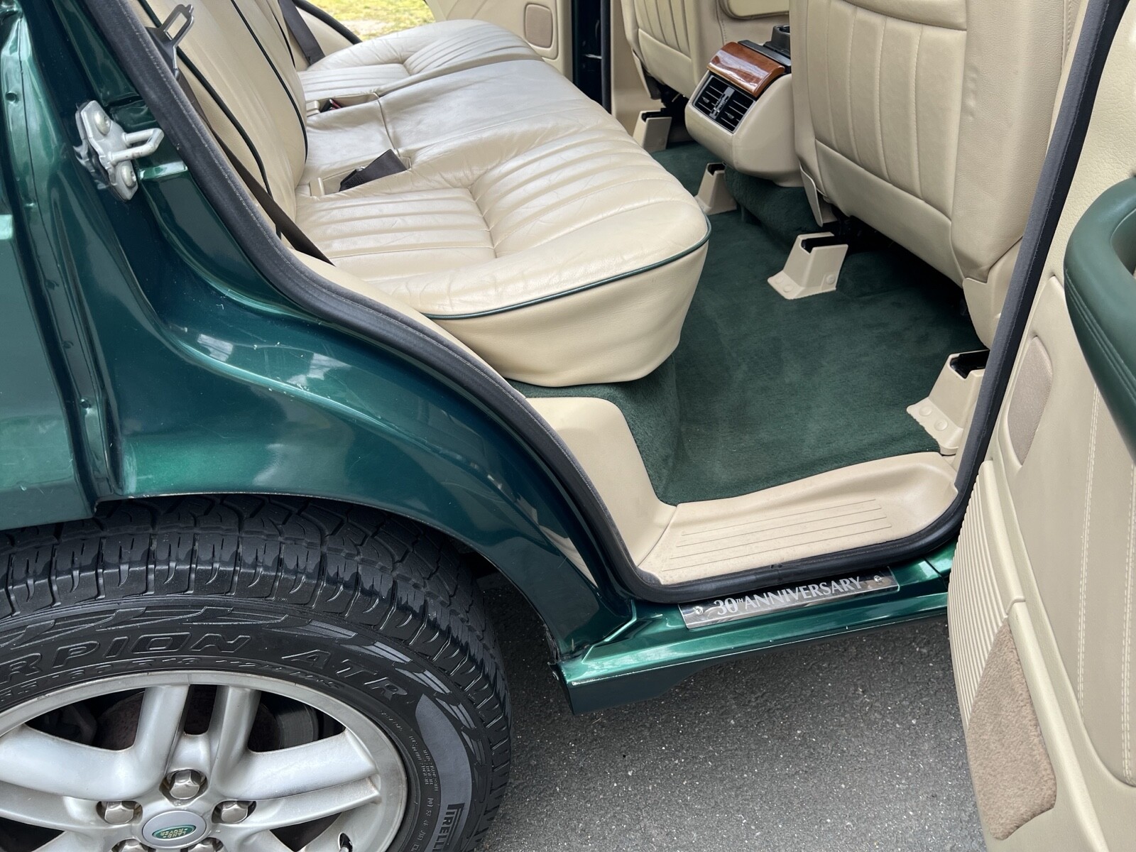 2001 Land Rover Range Rover 30th Anniversary Edition, SALPM16481A447327, exclusive Wimbledon Green body color, including painted bumpers, sills, and mirror housings. Lightstone interior seating surfaces with Wimbledon Green piping. Wimbledon Green carpets. Amber-stained Burr Maple on upper console, gear-lever surround, switch panel, fascia rail, rear passenger ashtray, and door rails. Lightstone leather side cheeks on door panels, cubby-box lid, and other interior areas. Wimbledon Green leather enhancements on door armrests, handbrake grip, and gear lever handle. Chrome details, including gear lever surround, door lock escutcheons and interior door releases. Duo-tone steering wheel. Unique 30th Anniversary Edition door sills and 30th Anniversary Edition badge on the rear lower tailgate. 4.6-liter V8 gas engine, automatic transmission, full time 4-wheel drive with high-low range, traction control, EAS electronic air suspension replaced with coil spring conversion kit by prior owner in 2013, 18" Hurricane alloy wheels mounted with 255/60R18 Pirelli Scorpion ATRs, factory glass sliding sunroof, original factory hi-fi Harman Kardon sound system with original JAMES navigation system, & more.