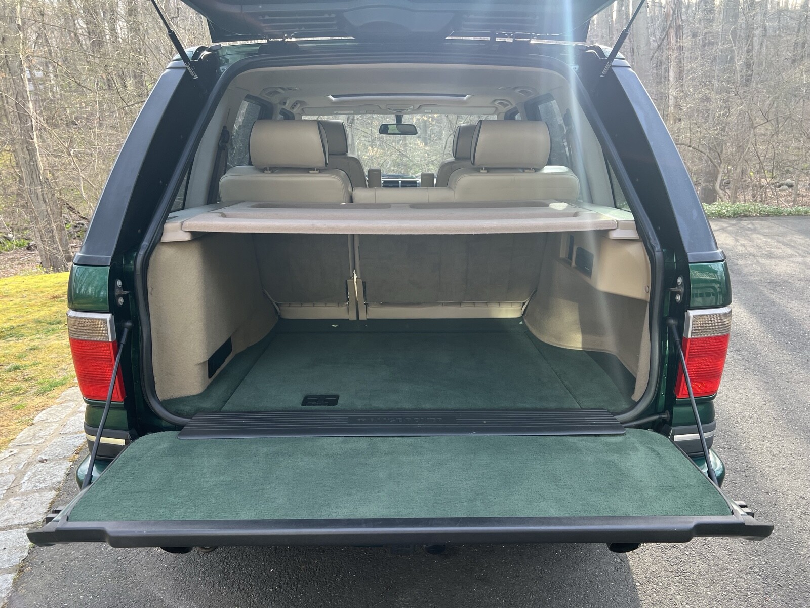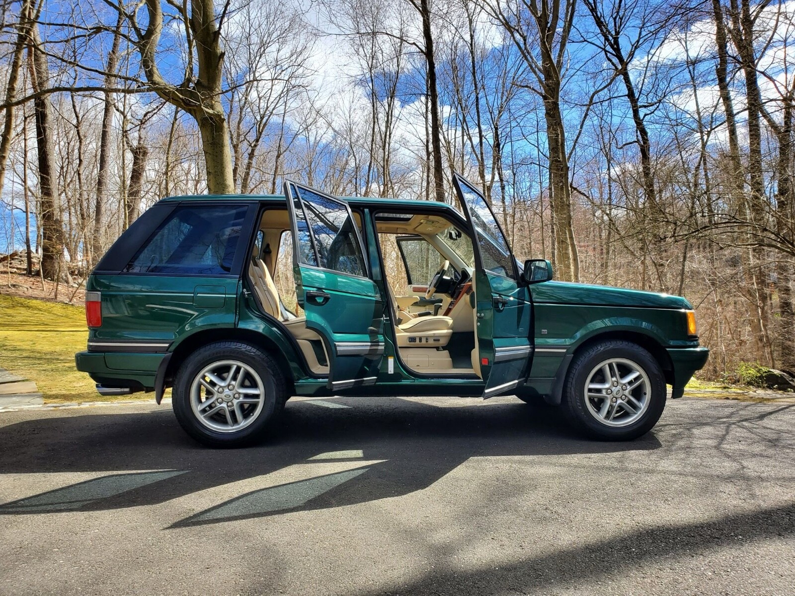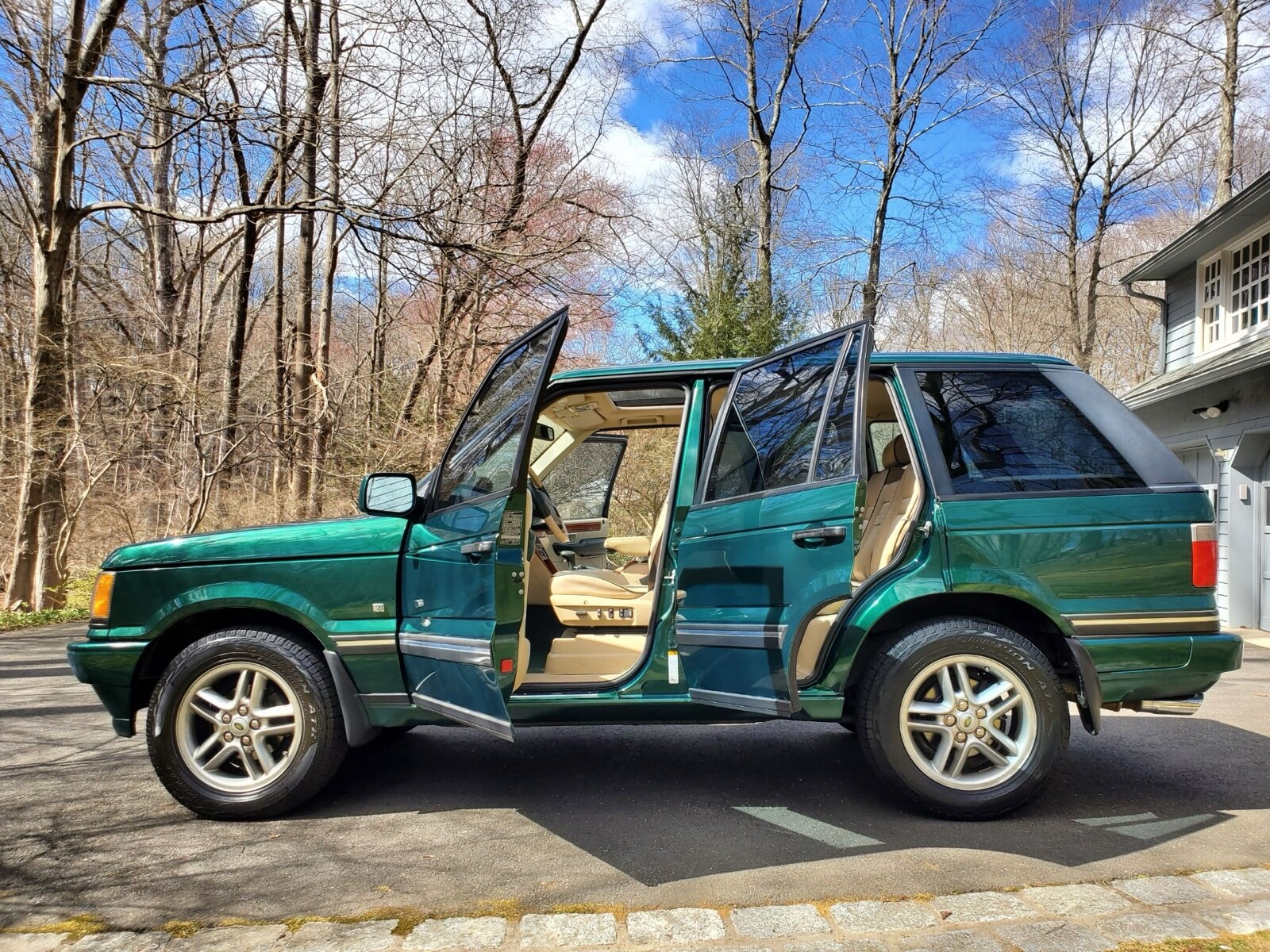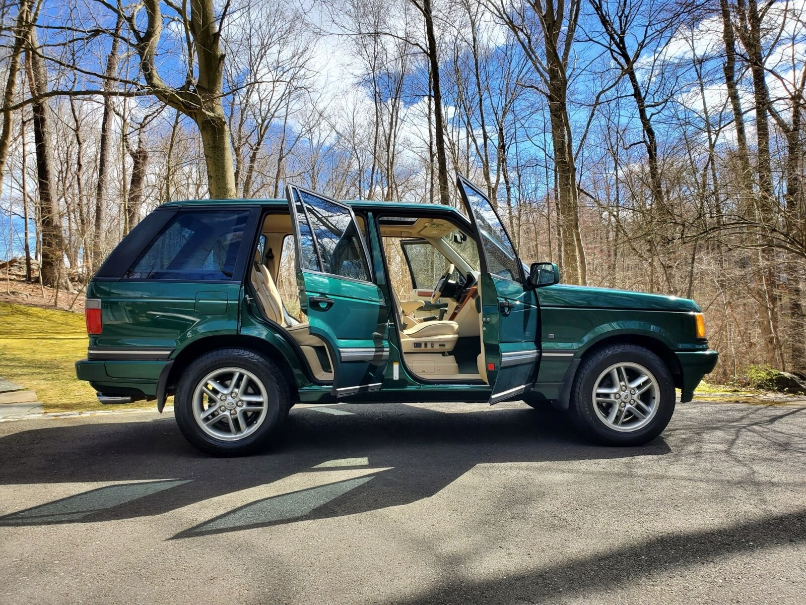2001 Land Rover Range Rover 30th Anniversary Edition, SALPM16481A447327, exclusive Wimbledon Green body color, including painted bumpers, sills, and mirror housings. Lightstone interior seating surfaces with Wimbledon Green piping. Wimbledon Green carpets. Amber-stained Burr Maple on upper console, gear-lever surround, switch panel, fascia rail, rear passenger ashtray, and door rails. Lightstone leather side cheeks on door panels, cubby-box lid, and other interior areas. Wimbledon Green leather enhancements on door armrests, handbrake grip, and gear lever handle. Chrome details, including gear lever surround, door lock escutcheons and interior door releases. Duo-tone steering wheel. Unique 30th Anniversary Edition door sills and 30th Anniversary Edition badge on the rear lower tailgate. 4.6-liter V8 gas engine, automatic transmission, full time 4-wheel drive with high-low range, traction control, EAS electronic air suspension replaced with coil spring conversion kit by prior owner in 2013, 18" Hurricane alloy wheels mounted with 255/60R18 Pirelli Scorpion ATRs, factory glass sliding sunroof, original factory hi-fi Harman Kardon sound system with original JAMES navigation system, & more.