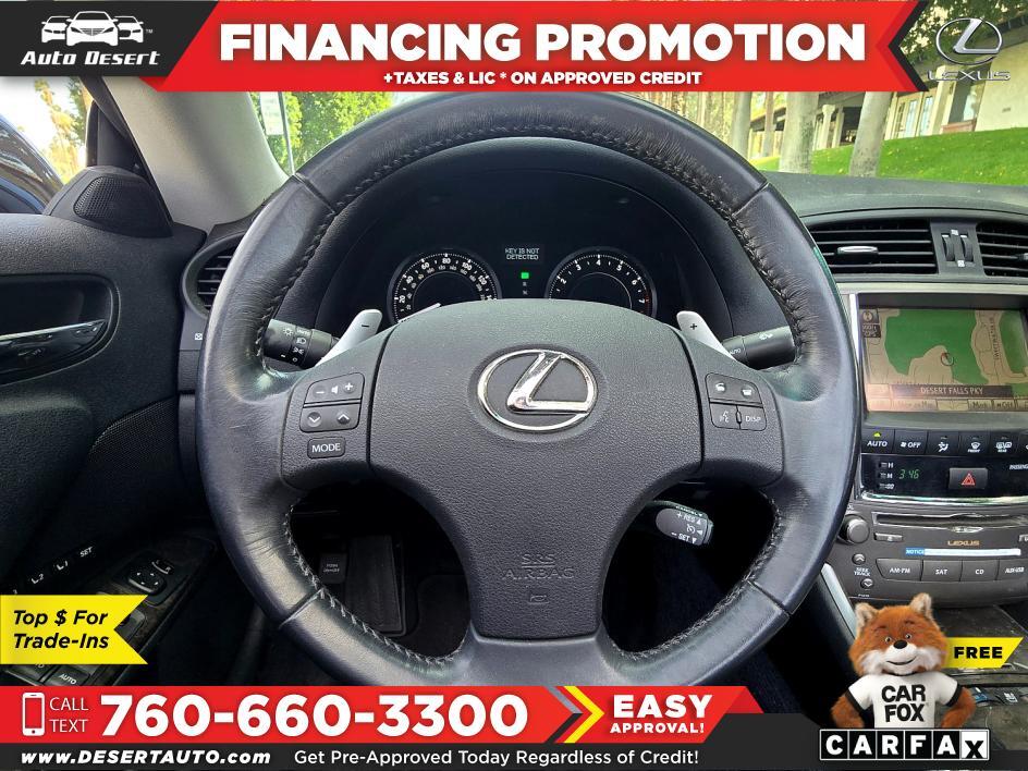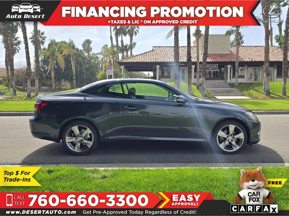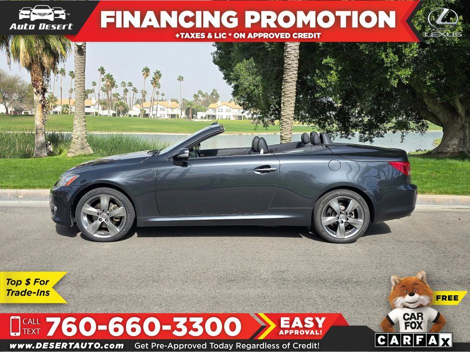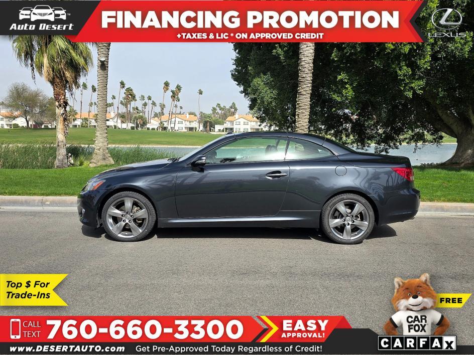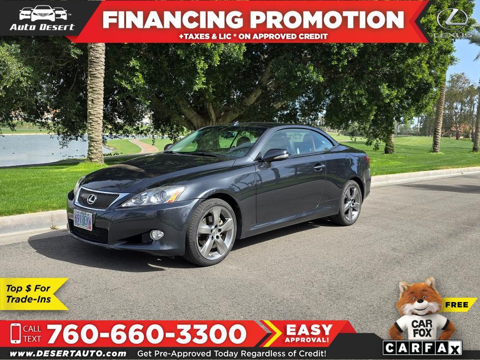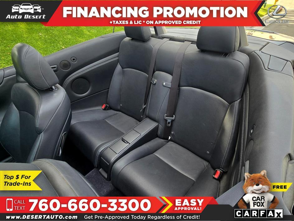 This is a CLEAN TITLE Convertible and an optional extended warranty is available.The Original Owner has cared for this Lexus since it was new| on top of that it's a rare find with only 55|385 miles - barely driven 3|956 miles/year.The automatic transmission makes driving easier in stop-and-go traffic and on hilly roads| on top of that this smooth 6 Cylinder engine is ideal for performance and fuel economy.Enjoy better handling and stopping with the rear wheel drive plus unheard of fuel mileage at 21 MPG in town and whopping 29 miles on the highway.The telematics navigation system provides additional safety and security| hands-free communications and wireless access to a wide range of information and entertainment| furthermore the Lexus back-up camera provides you with both added convenience and improved safety. The parking sensors detect nearby children| mailboxes or other obstacles in order to prevent accidents| additionally push-button keyless start couldn't be simpler| just slide behind the wheel| with the key fob in your pocket| briefcase or purse. Thanks to the hardtop convertible| you can enjoy reduced road noise| whats more is the CD-Changer provides for hours of your favorite music.Listening to dozens of genres of static-free music with the built-in Satellite Radio makes any trip more comfortable| in addition to the Bluetooth connection is the ultimate option for hands-free calling while driving. You can play hundreds of your favorite songs with the MP3 player| meanwhile the premium sound system delivers amazing sound of your favorite tracks. The AUX input is a must have in this world of smartphones| furthermore the keyless entry is an added convenience option.The installed stability control stabilizes the vehicle during sudden evasive maneuvers whereas the cruise control gives you better control over your speed. The woodgrain trim adds to the luxury of the in... Read the full description on our Website at: