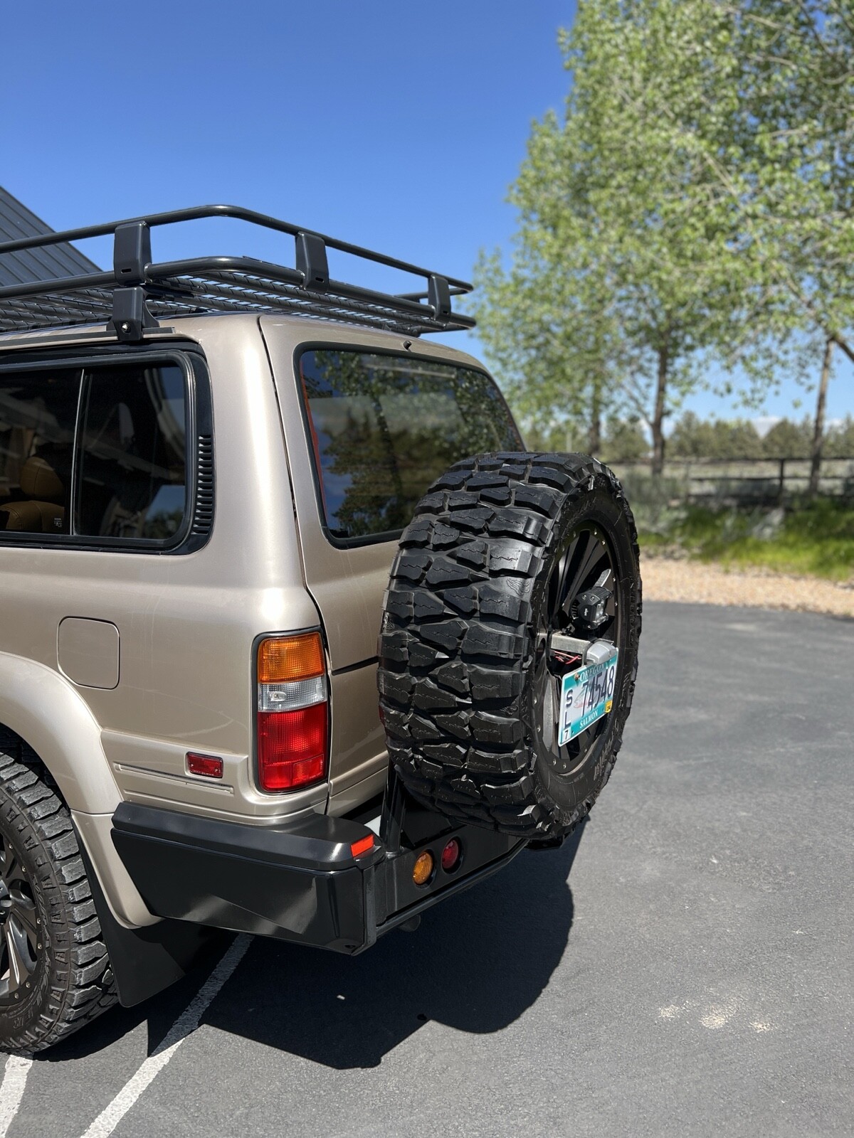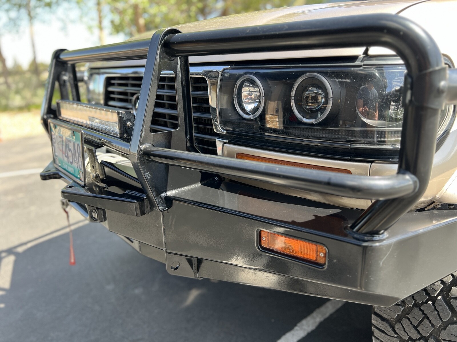 Custom front and rear bumpers ARB; LED lights and #8000 winch on front, no rear tire carrier