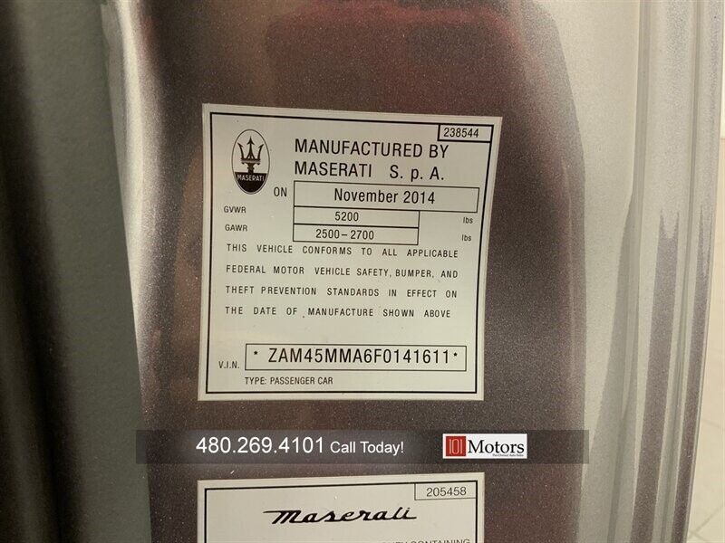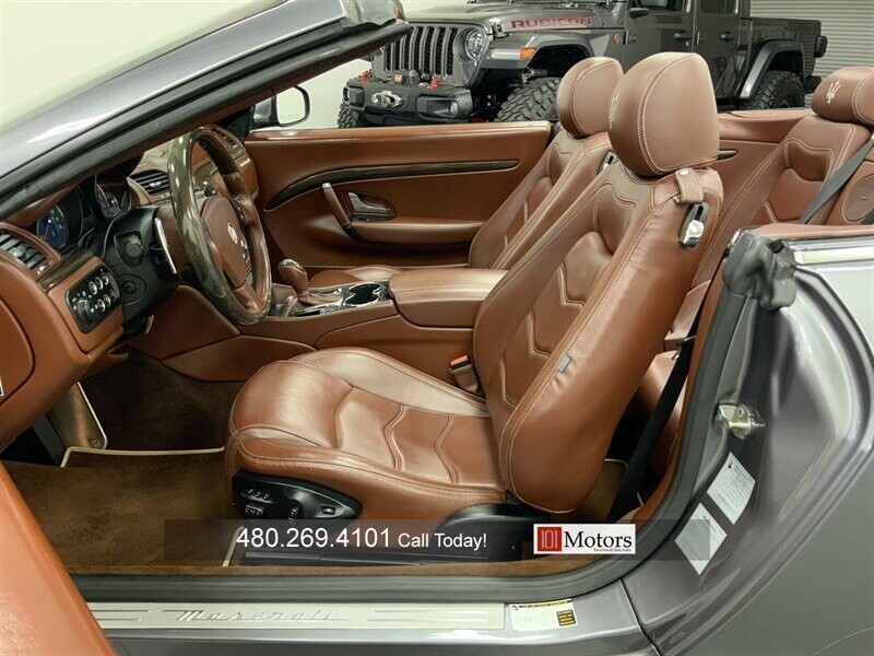 101 Motors is proud to present this stunning 2015 Maserati GranTursimo finished in Grigio Lava. This RWD convertible is equipped with a 444 horsepower 4.7L V8 mated to a 6-speed automatic transmission. This Maserati features heated front seats, Marrone Corniola leather with contrast stitching, 20 inch Trident Design wheels, red painted brake calipers and more. You don’t want to miss this opportunity, call today!!