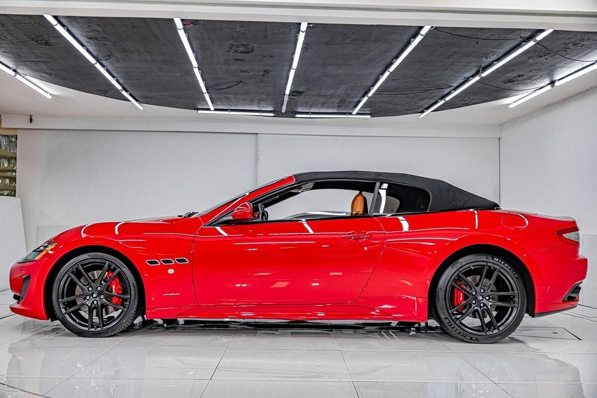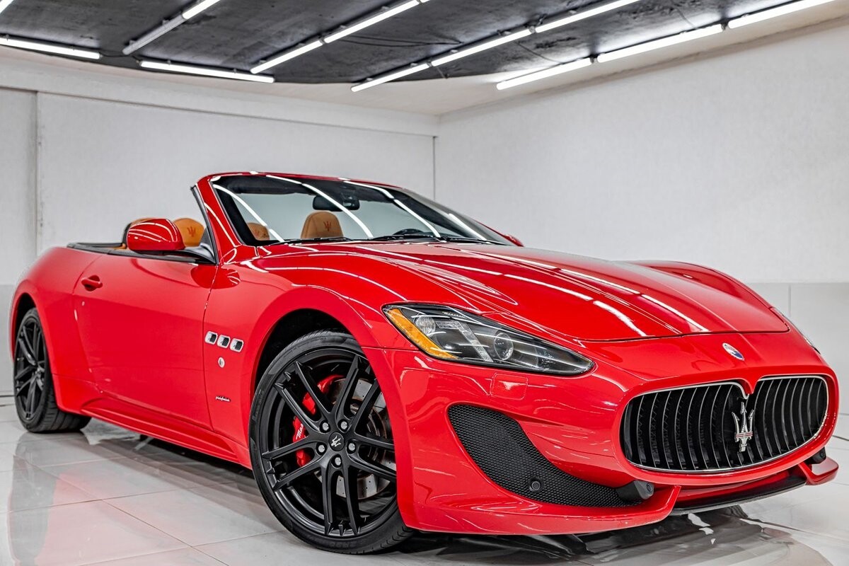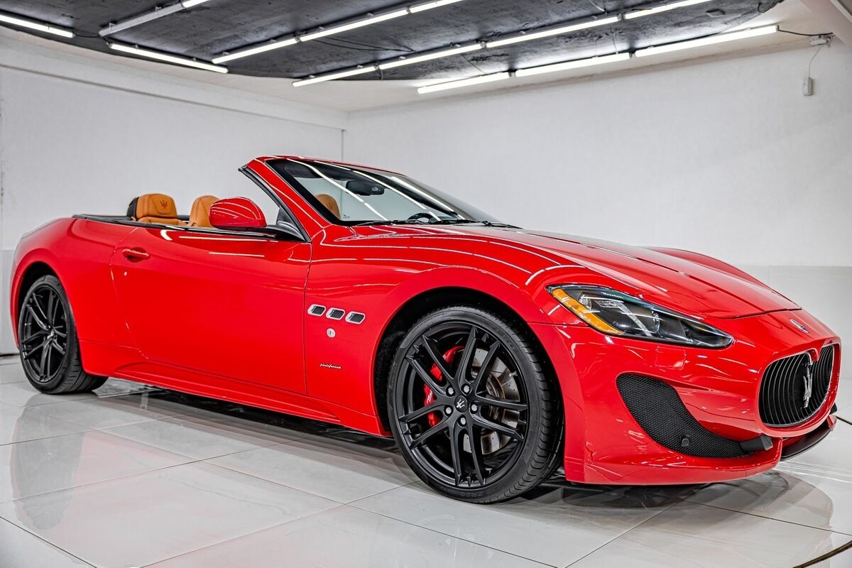EXTERIOR: $3,000 optional paint color Rosso Mondiale! It's a special edition paint Maserati offered briefly. The sport front end eliminates fog lights and compliments the honeycomb massive front grill. Also the rear exhaust tips are larger on the C sports. The C sport sits on 20" satin black wheels and is fitted with large 4 wheel disc brakes for ultimate stopping power. The black convertible soft top is in great condition, and is able to go up or down with the push of a button!