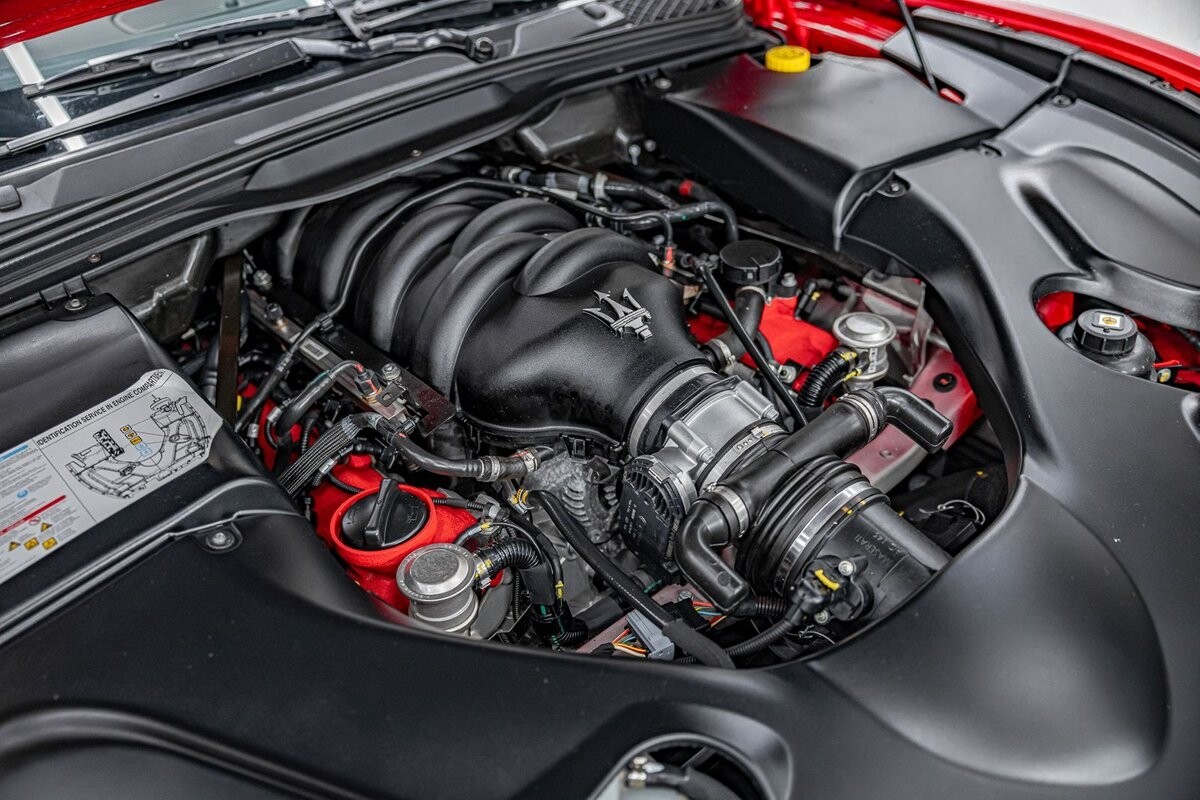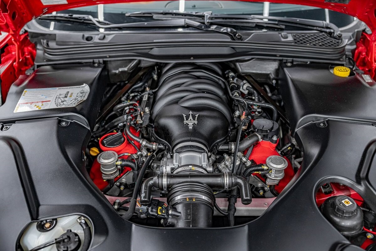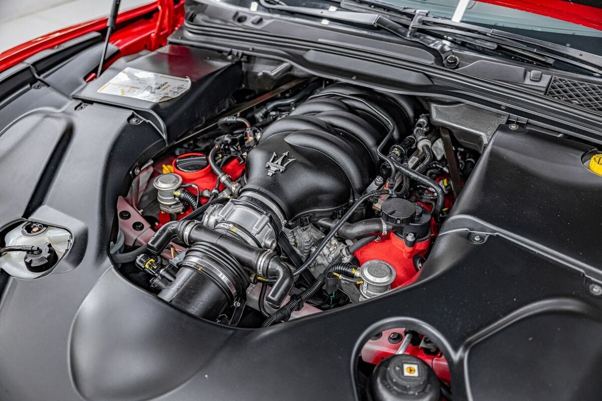 ENGINE COMPARTMENT: Under the hood you'll find the incredible 4.7L 454HP V8 that is also shared with the Ferrari 458. The center piece is a very large intake embedded with the trident Maserati logo. The engine bay is clean with no rust or corrosion. The car lived in Florida for most of its life!