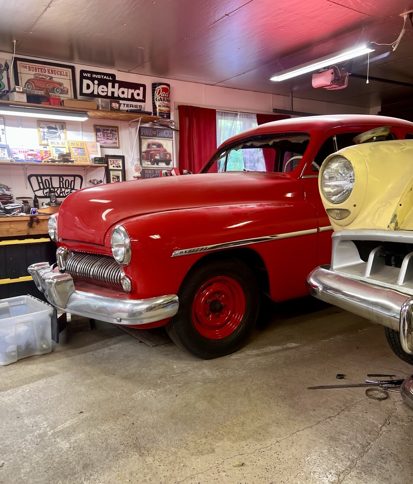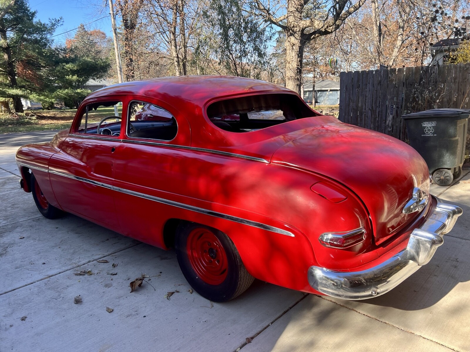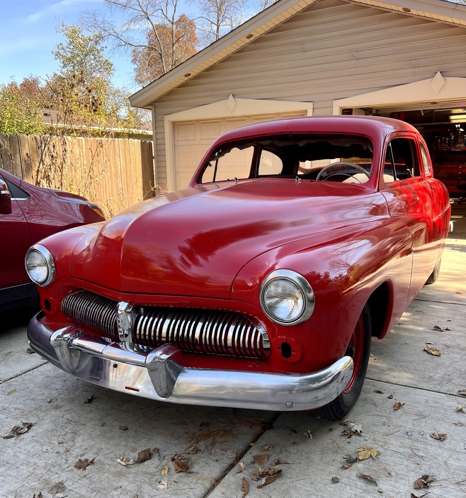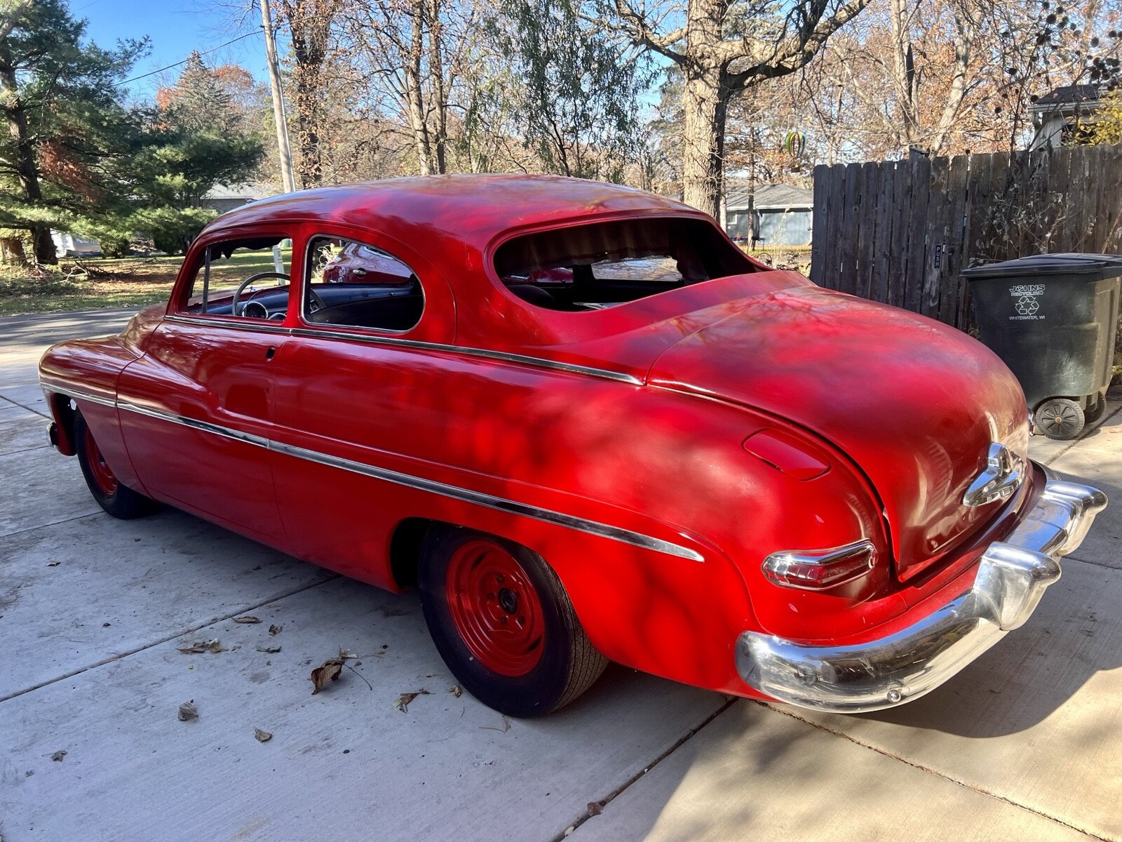 Nice 1949 Mercury coupe that I discovered in long term storage, it had the rockers replaced and an amateur paint job. Car was missing most of the bright work (bumpers,moldings,etc. I have spent the last 2 years rounding up missing parts. I have located and purchased about 90% of the stuff need to complete. Engine runs but needs the fuel tank cleaned flathead and 3 speed overdrive trans. New brakes, hoses, belts,lamps etc