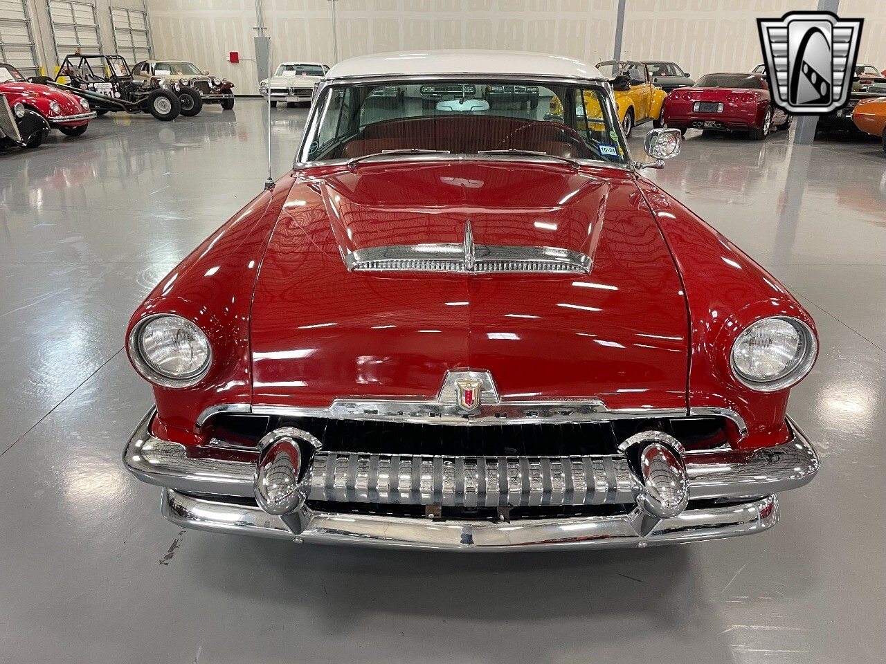Gateway Classic Cars of San Antonio/Austin is proud to present this 1954 Mercury Monterey. This classic vehicle is a striking vision in red and white exterior color, a timeless color combination that is sure to turn heads. The interior is equally impressive, featuring a tasteful cream and tangerine color scheme that complements the exterior. Under the hood, you'll find a powerful 256 CID L Block V8 engine, a testament to the era's engineering prowess. The automatic transmission ensures a smooth and effortless driving experience, allowing you to focus on the joy of the journey. In terms of features, the 1954 Mercury Monterey stays true to its roots. The power brakes, power seats, and power steering add comfort and convenience, enhancing your driving experience. This Monterey rides on radial tires, providing a smooth and stable ride. The wide white walls add an extra touch of classic charm, encapsulating the vehicle's vintage appeal. The interior is completed with a vinyl finish, a material known for its durability and easy maintenance. This is a car that not only looks great but also offers practicality. This 1954 Mercury Monterey is a beautiful representation of a bygone era. Its unique combination of style, power, and features make it a standout choice for any classic car enthusiast..
