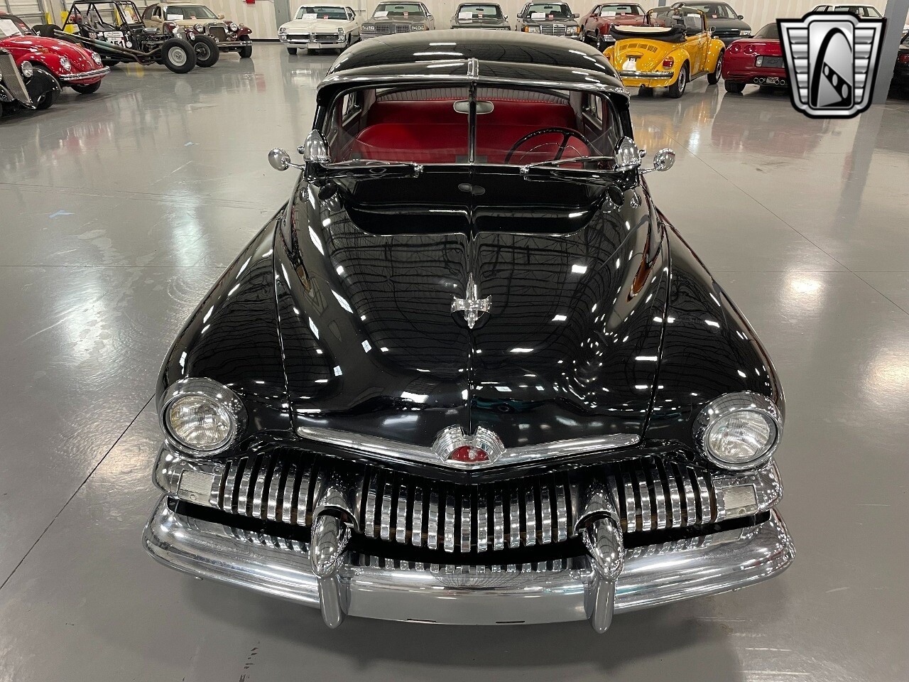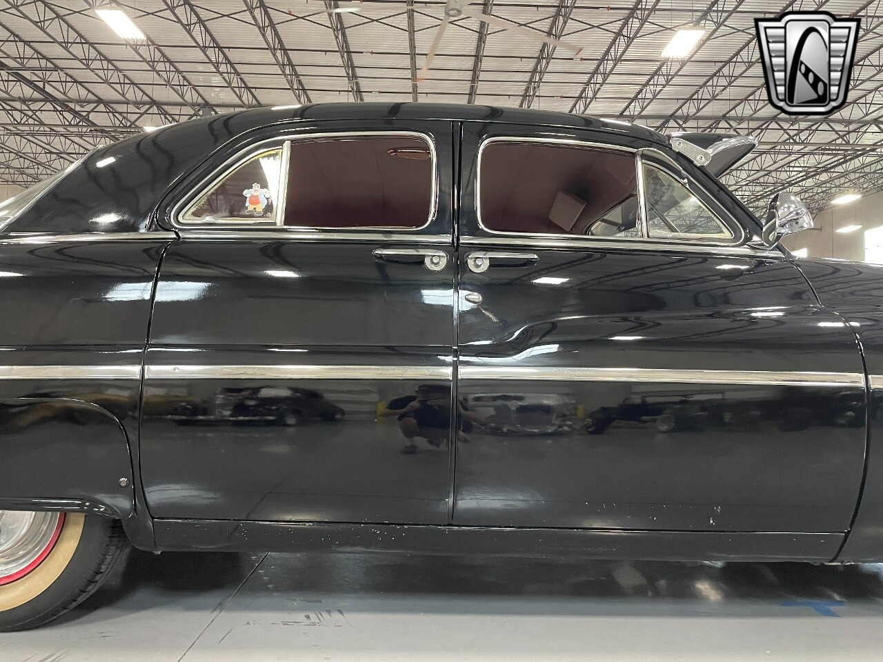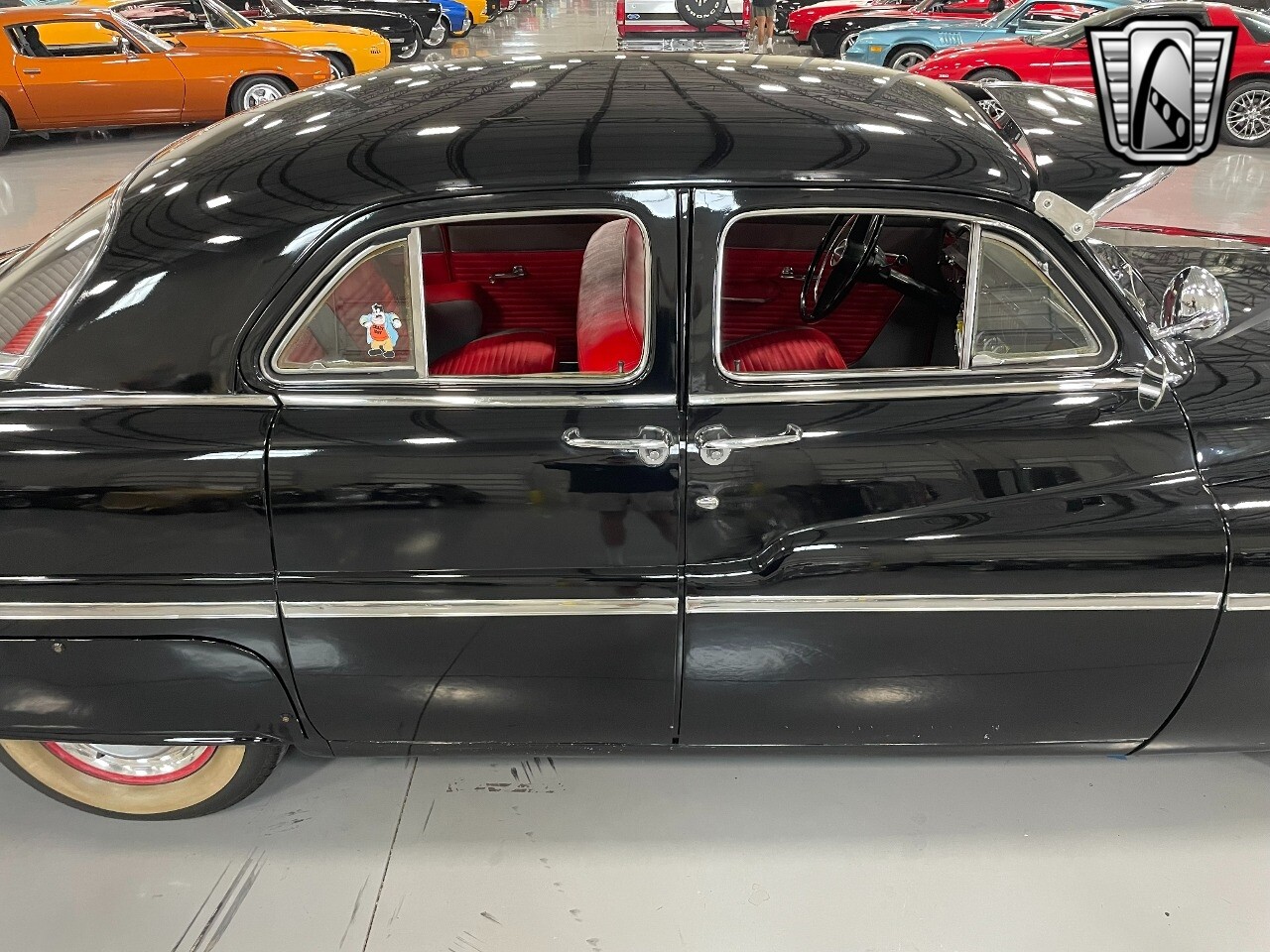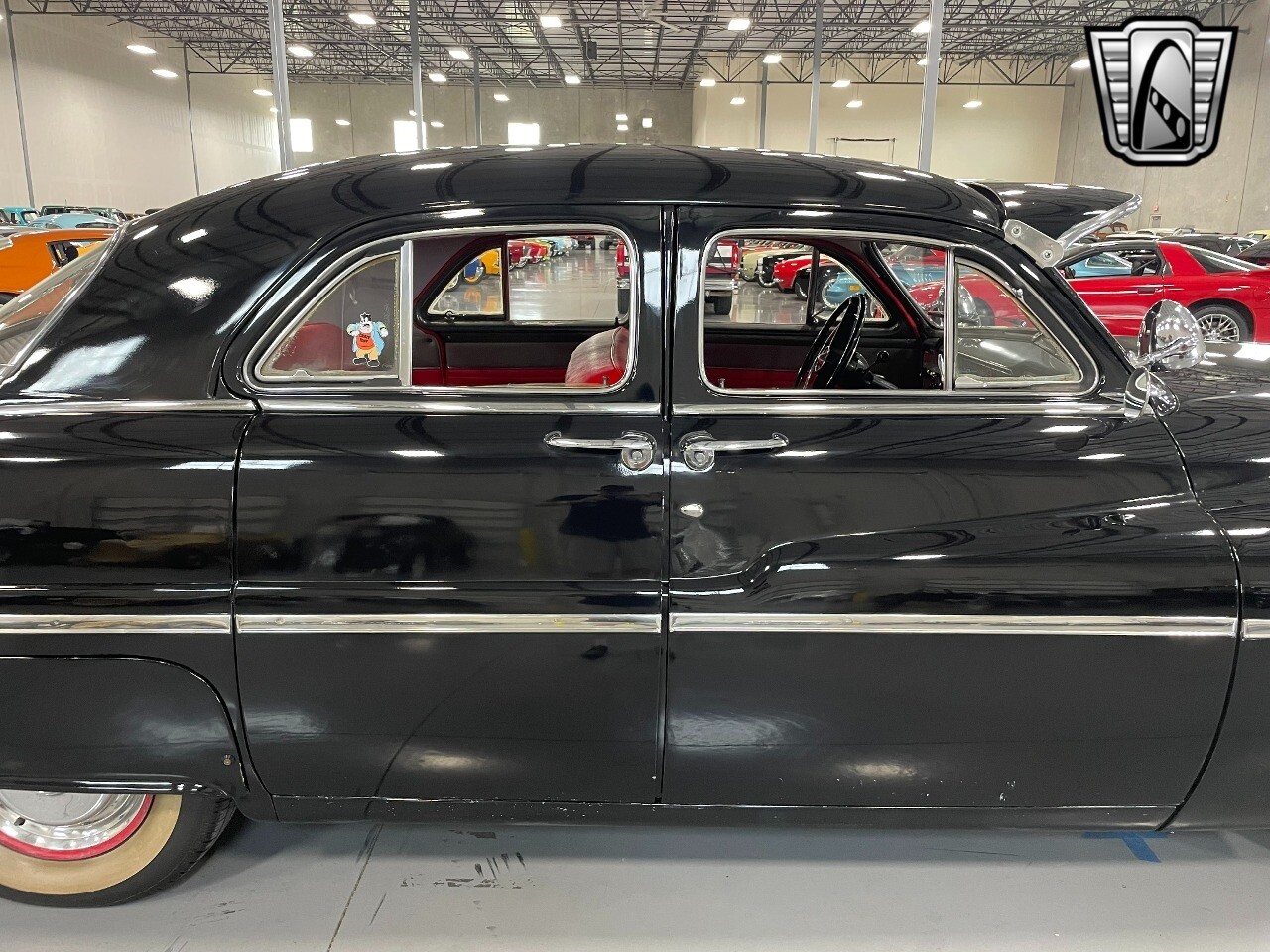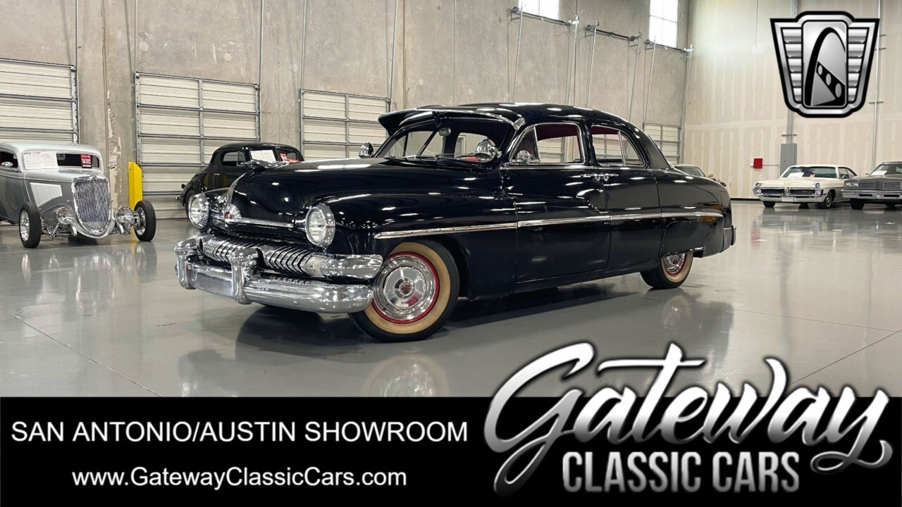 Gateway Classic Cars of San Antonio/Austin is proud to present this 1951 Mercury Monterey 4-door sedan, distinguished by its sleek black exterior and striking red interior. This iconic automobile captures the essence of early 1950s American automotive design, offering a blend of elegance and performance that is sure to captivate enthusiasts and collectors alike. Under the hood, this Monterey is powered by a Tuned Port Injection 350 CID V8 engine with a new Holley carburetor and an automatic transmission from a 1987 Camaro, providing a smooth and powerful driving experience. This combination ensures that the vehicle not only looks impressive but also delivers commendable performance on the road. Inside, the vibrant red interior complements the exterior, creating a striking visual contrast. The exterior is further accentuated by hub caps and wide white wall tires, which are quintessential elements of the era's automotive style. These features contribute to the car's classic appeal and make it a standout on any road. The 1951 Mercury Monterey is a remarkable representation of its time, offering a unique opportunity to own a piece of automotive history. Whether you are a seasoned collector or a classic car enthusiast, this vehicle promises to be a cherished addition to your collection..