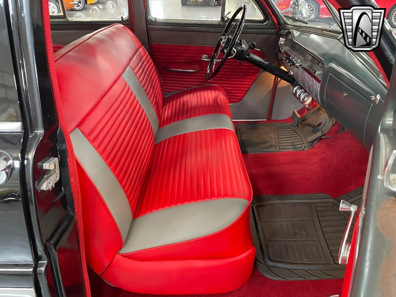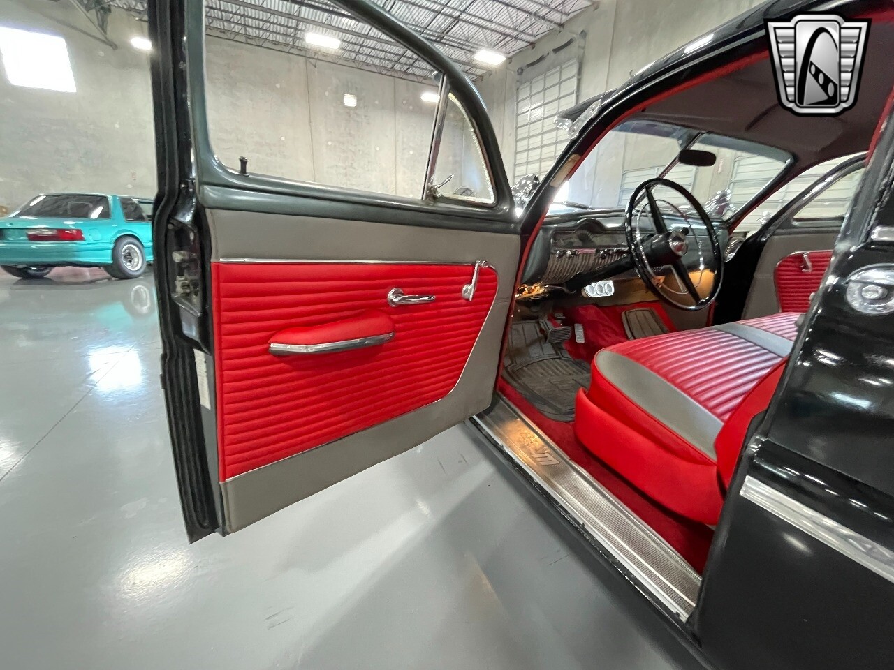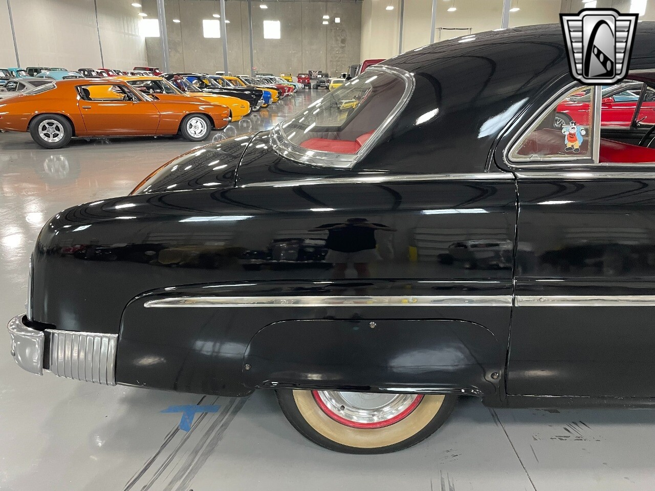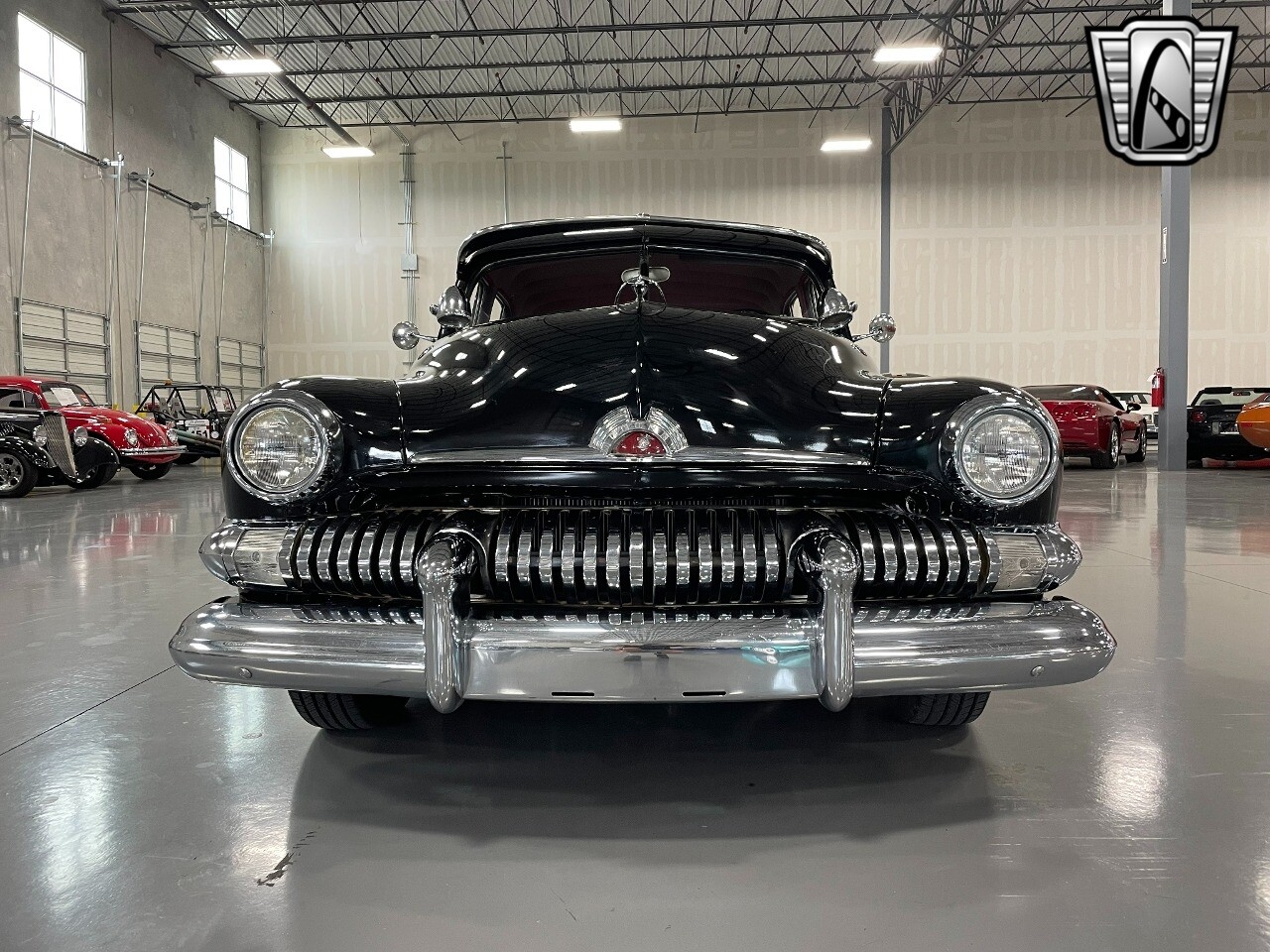 Gateway Classic Cars of San Antonio/Austin is proud to present this 1951 Mercury Monterey 4-door sedan, distinguished by its sleek black exterior and striking red interior. This iconic automobile captures the essence of early 1950s American automotive design, offering a blend of elegance and performance that is sure to captivate enthusiasts and collectors alike. Under the hood, this Monterey is powered by a Tuned Port Injection 350 CID V8 engine with a new Holley carburetor and an automatic transmission from a 1987 Camaro, providing a smooth and powerful driving experience. This combination ensures that the vehicle not only looks impressive but also delivers commendable performance on the road. Inside, the vibrant red interior complements the exterior, creating a striking visual contrast. The exterior is further accentuated by hub caps and wide white wall tires, which are quintessential elements of the era's automotive style. These features contribute to the car's classic appeal and make it a standout on any road. The 1951 Mercury Monterey is a remarkable representation of its time, offering a unique opportunity to own a piece of automotive history. Whether you are a seasoned collector or a classic car enthusiast, this vehicle promises to be a cherished addition to your collection..