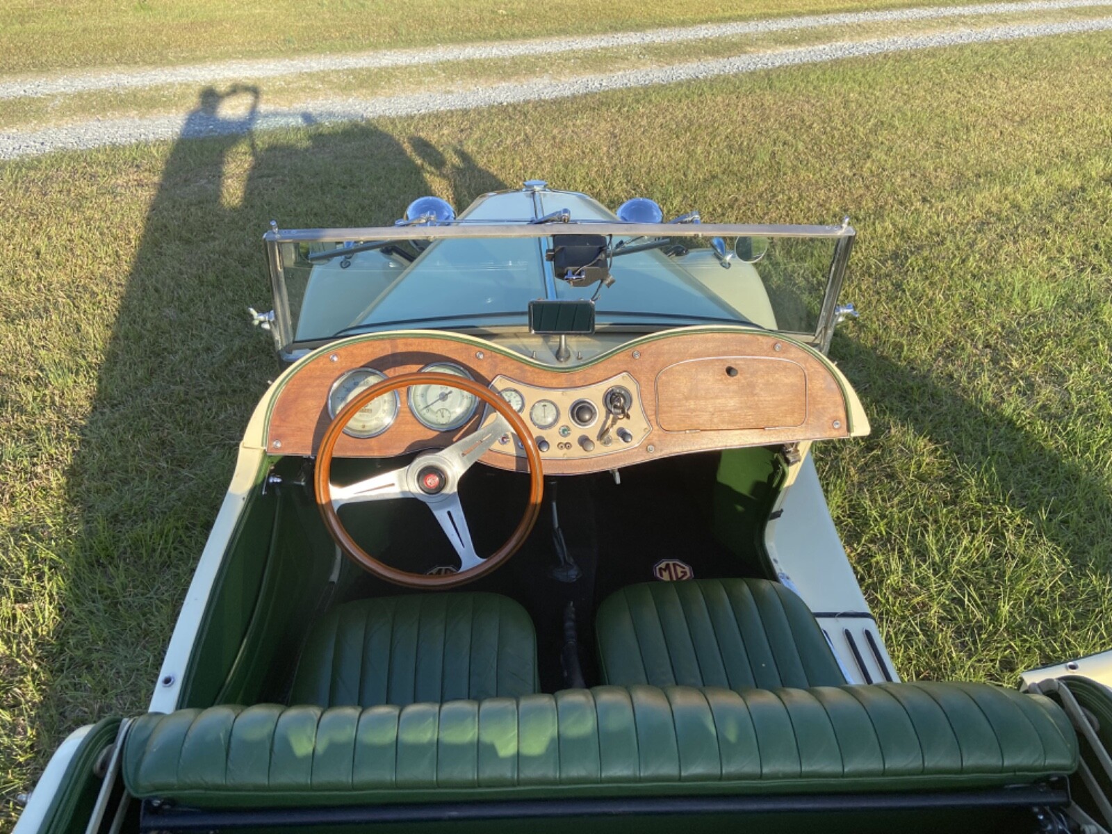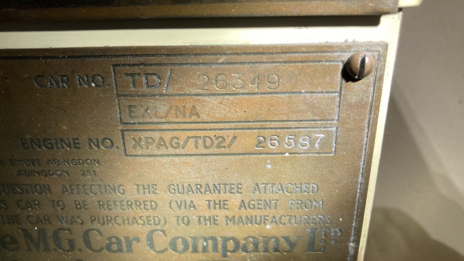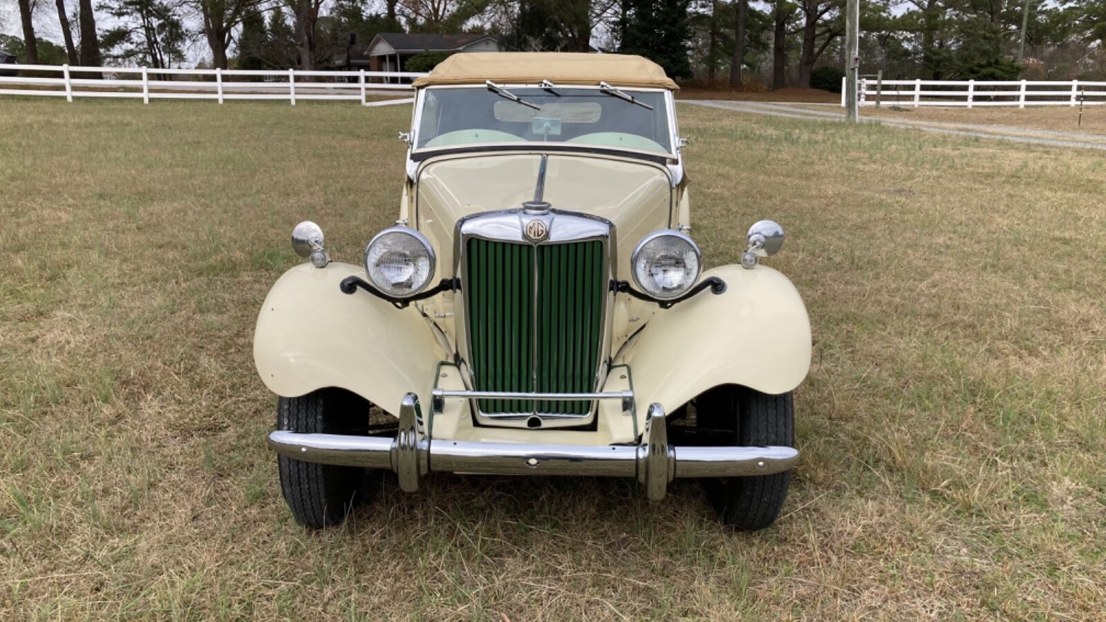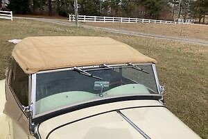 The Ivory exterior finish is also original, per the seller, who describes the condition as “fair to good, with a few paint chips and scratches” commensurate with the originality and age. No rust is reported. Photos provided appear to show the TD as complete, with a large chip on the driver’s side of the fuel tank. All lights and trim appear to be well-maintained and the lights are described as in working order. All original glass is also described as “good,” and the seals as “fair.” A tan canvas top and full side curtains can also be seen in the photos and are said to be in “good condition.” There is a small ding on the passenger side step but could be smoothed out with a good PDF guy. No modifications have been made to the exterior from new.