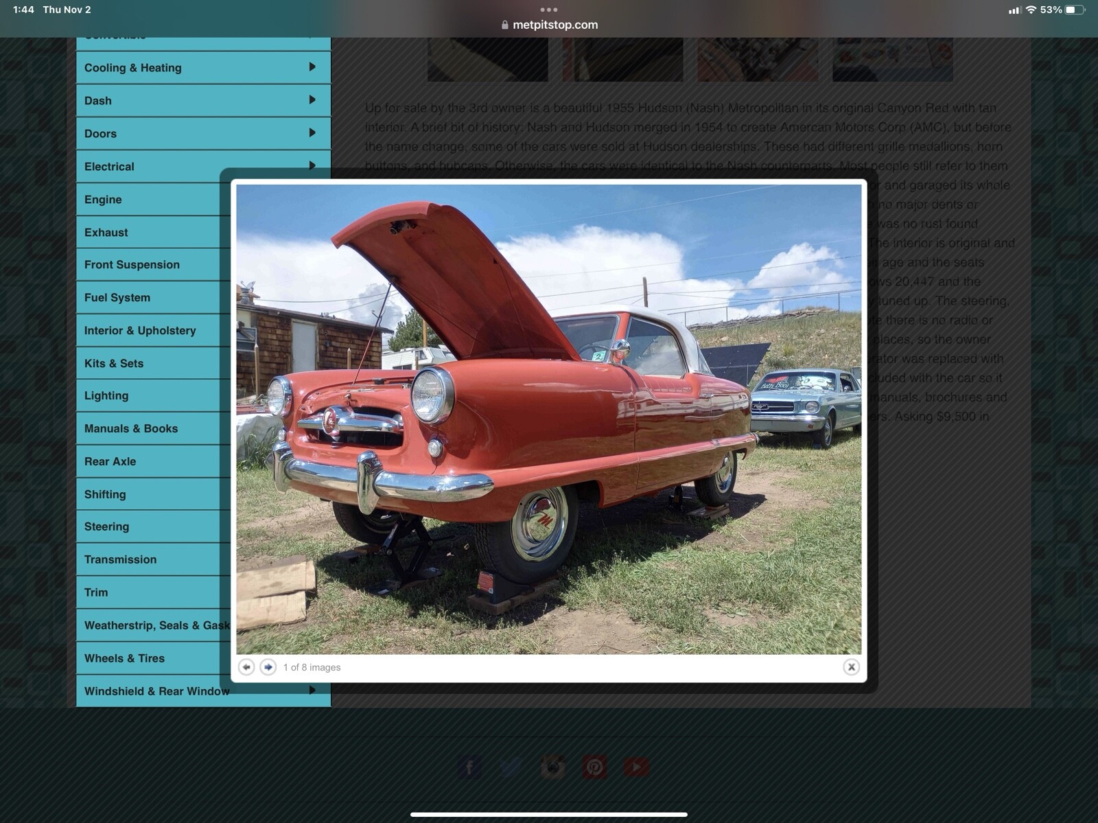 1955 Hudson/Nash Metropolitan This 1955 Nash Metropolitan is a super cute 50s microcar and is ready to cruise, especially considering the price of gas these days! When the Metropolitan debuted in 1954, it was ahead of its time for 2 reasons. First, it was the first American-made subcompact economy car, a genre of passenger cars that has risen over the past few decades and really seems to be hitting its stride today. Second, it was in a way a forerunner to Cadillac's Allente which, like the Metro, was a joint venture that combined parts from an American auto maker with that of a European manufacturer. In the case of the Nash Metropolitan, the drivetrain was sourced from British manufacturer, Austin. The bodies built by British company Fisher & Ludlow, and then assembled Austin's Longbridge, England, plant, with the final products being shipped the United States for sale through Nash dealers.Seller's Notes