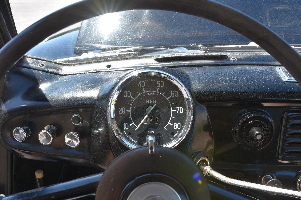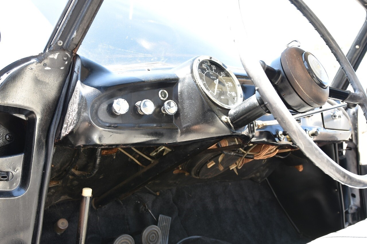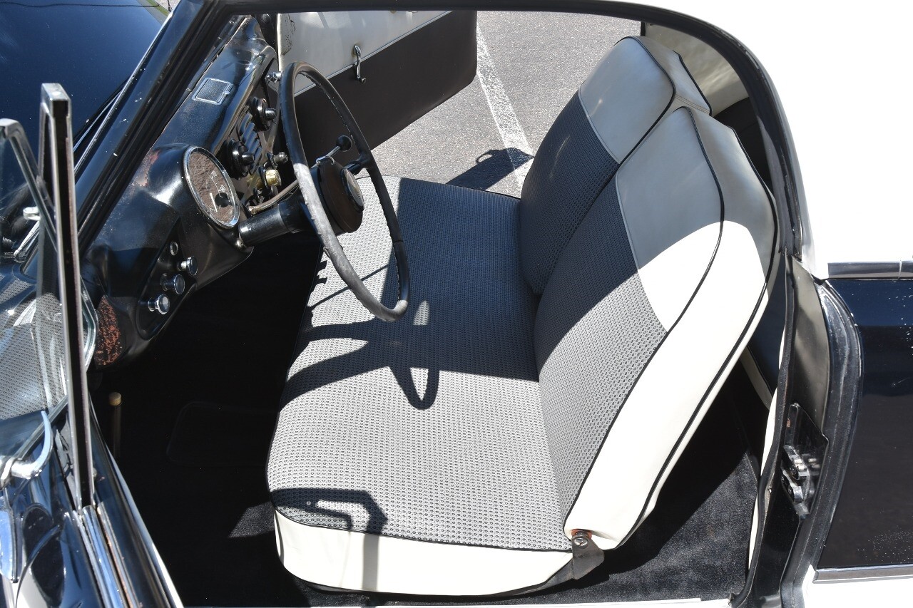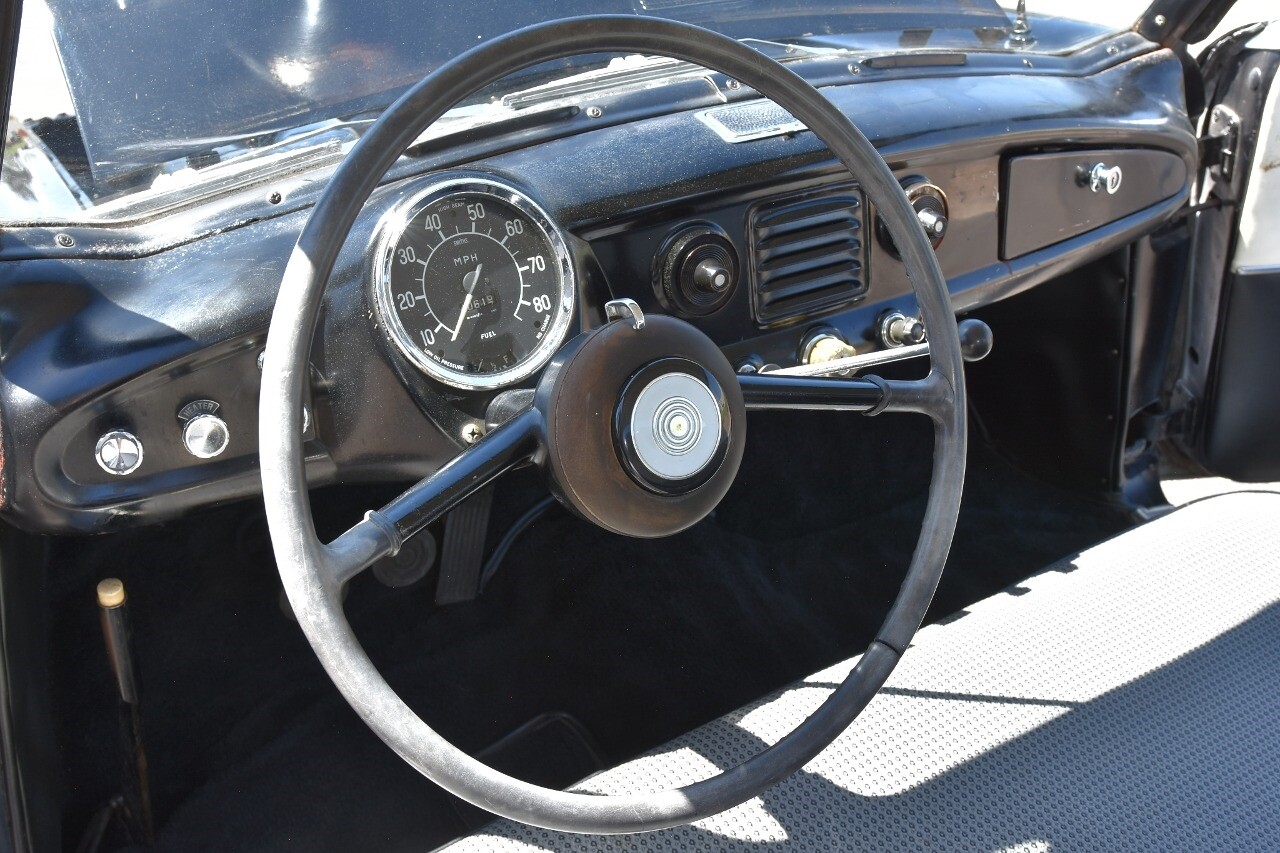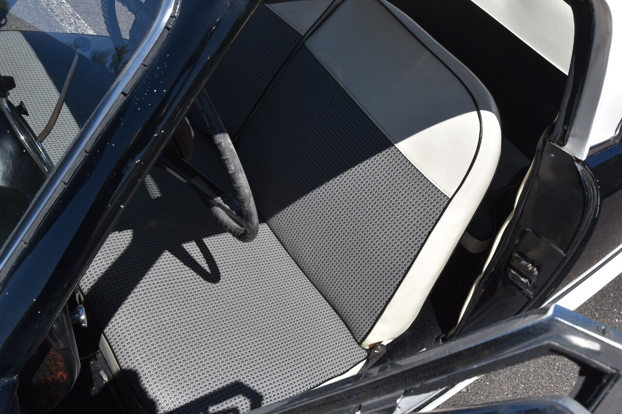 Inside, the car maintains its vintage charm with a vinyl interior. This not only adds to the car's retro aesthetic, but also offers durability and easy maintenance.