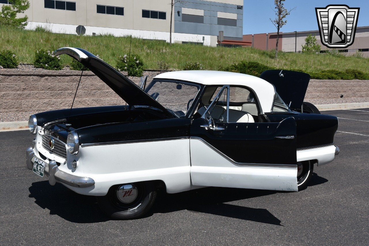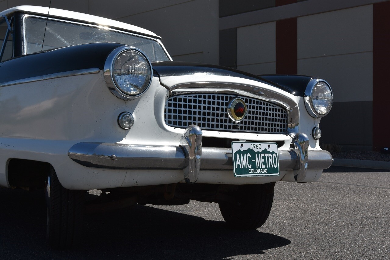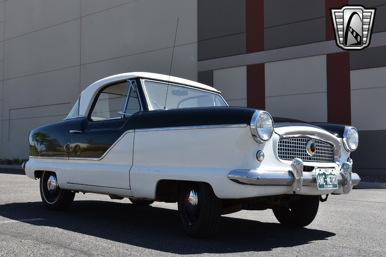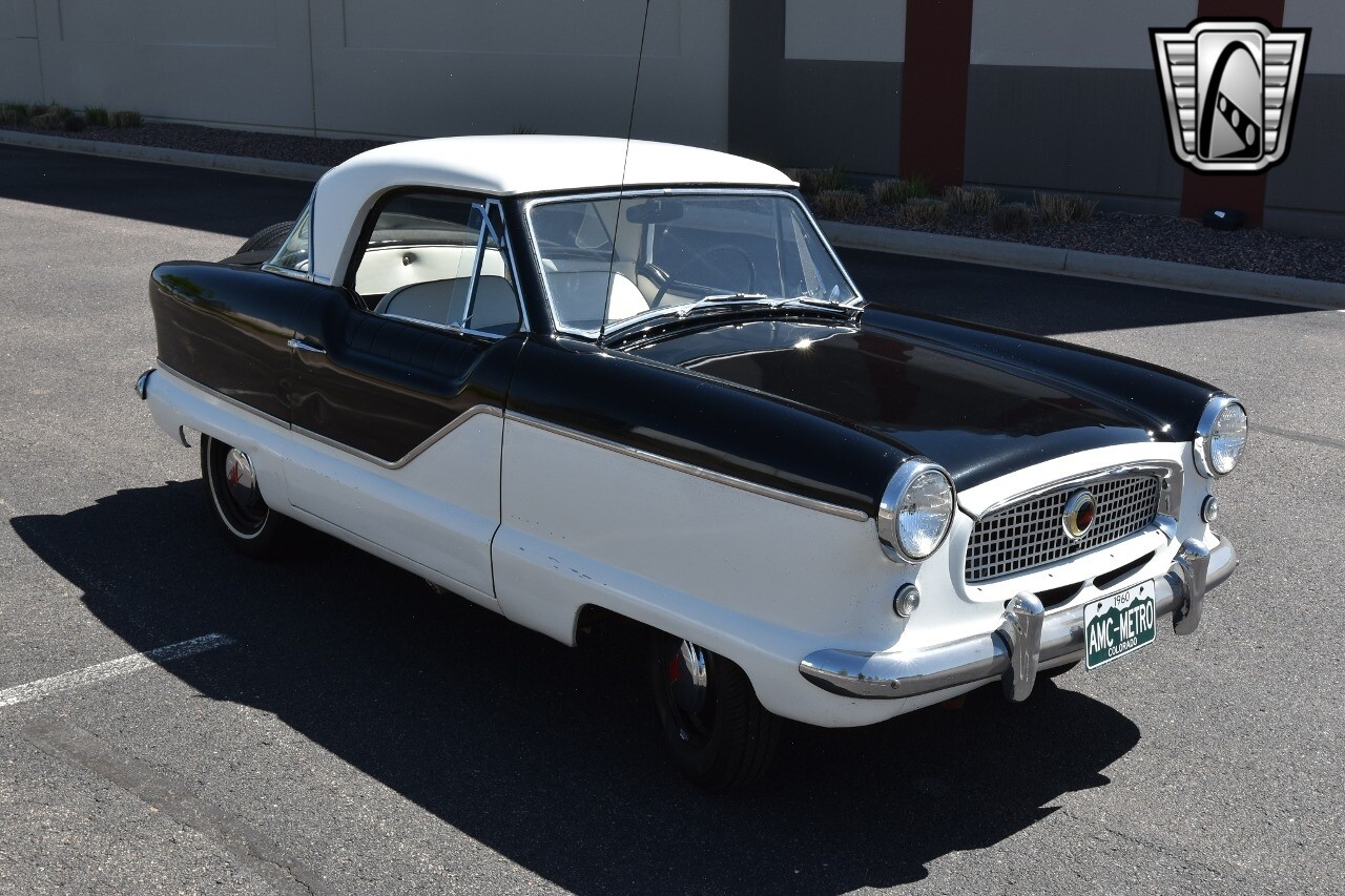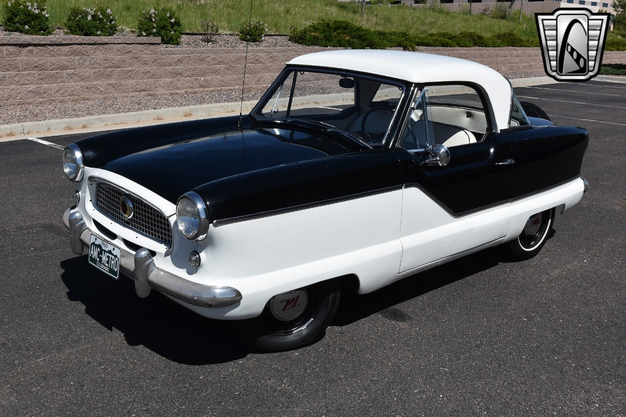 Gateway Classic Cars of Denver presents this 1960 Nash Metropolitan. This classic beauty boasts a sleek black exterior that is complemented by a matching black interior, creating a timeless and elegant aesthetic that is sure to turn heads wherever you go.