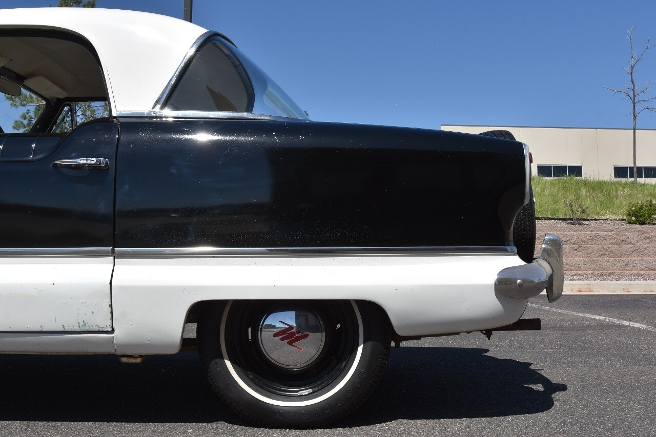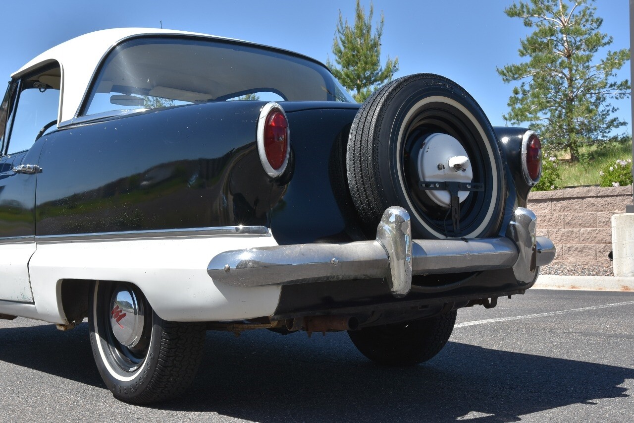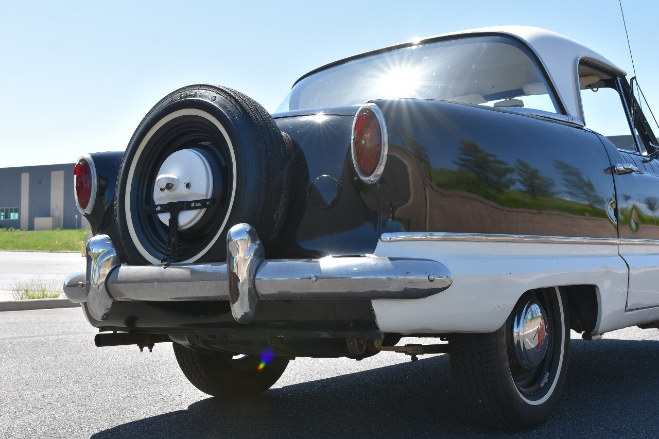 Despite its age, this Nash Metropolitan is not without its comforts. It comes equipped with an AM radio, allowing you to enjoy your favorite stations as you cruise down the road. The car also features original hub caps and radial tires, enhancing its classic appeal while ensuring a comfortable and stable ride.