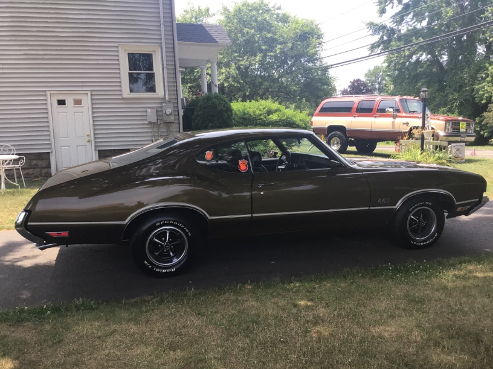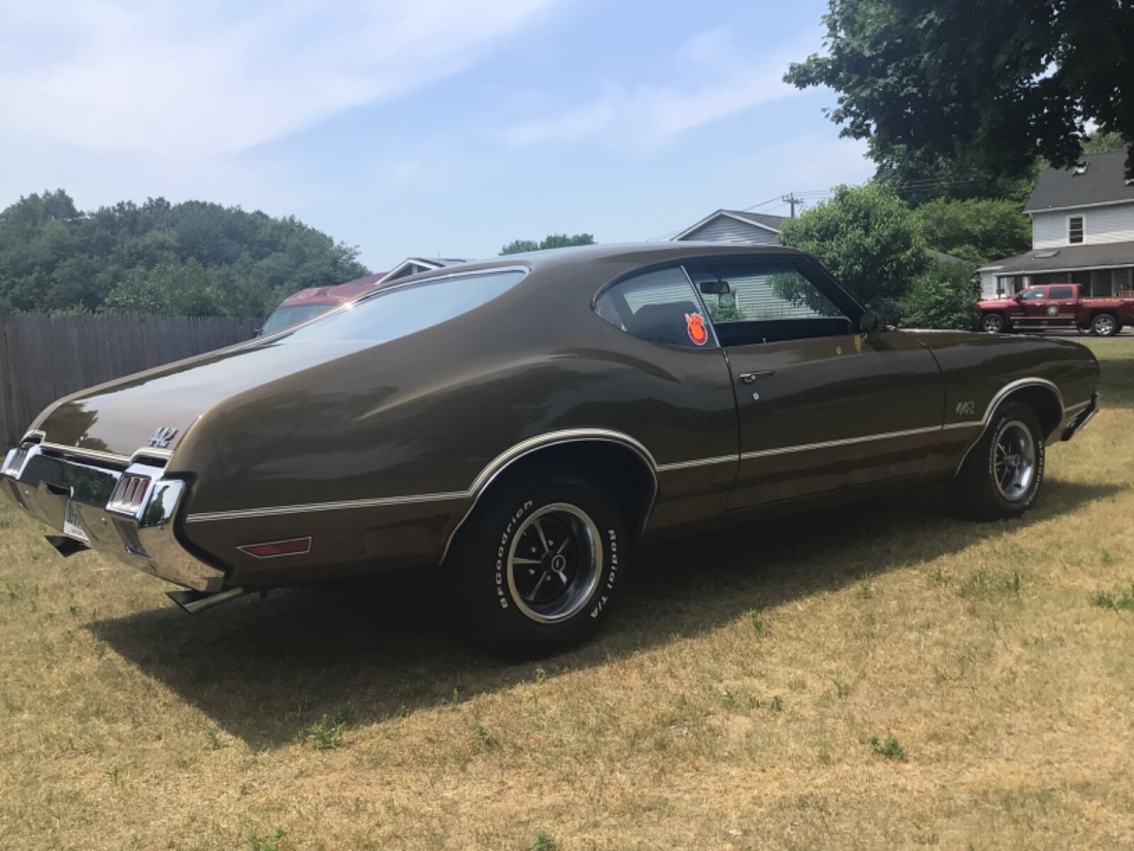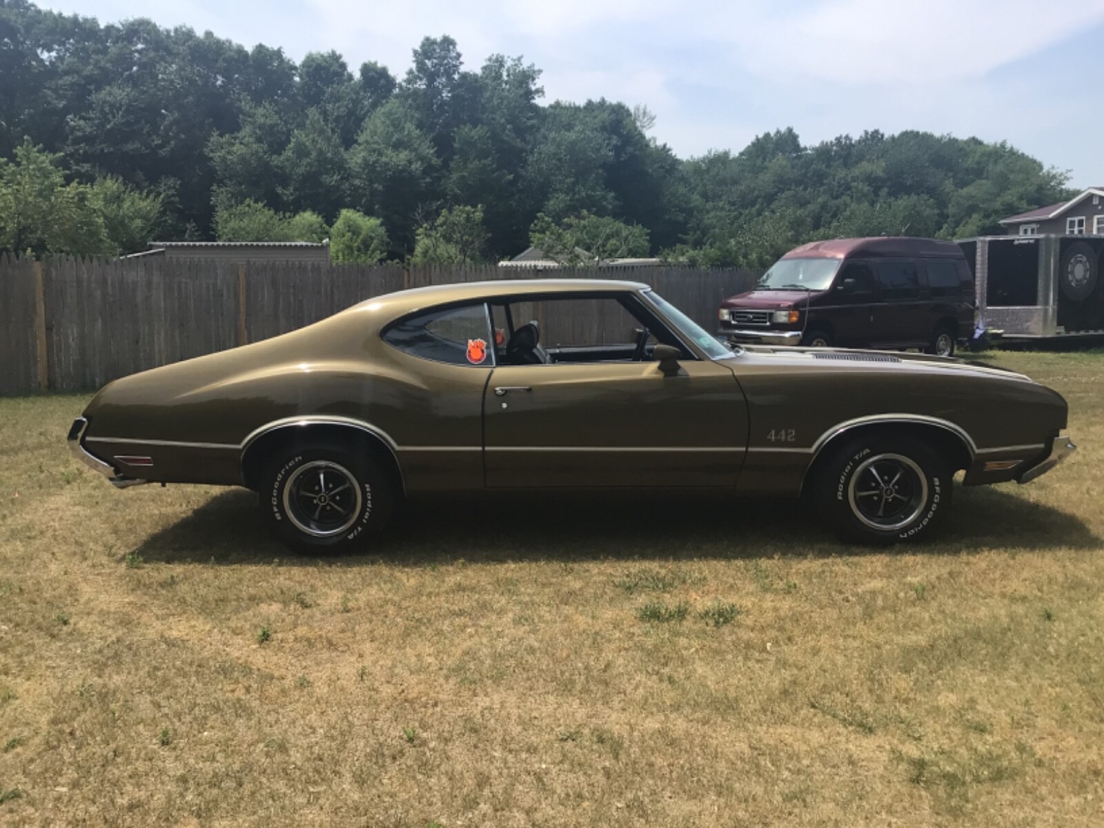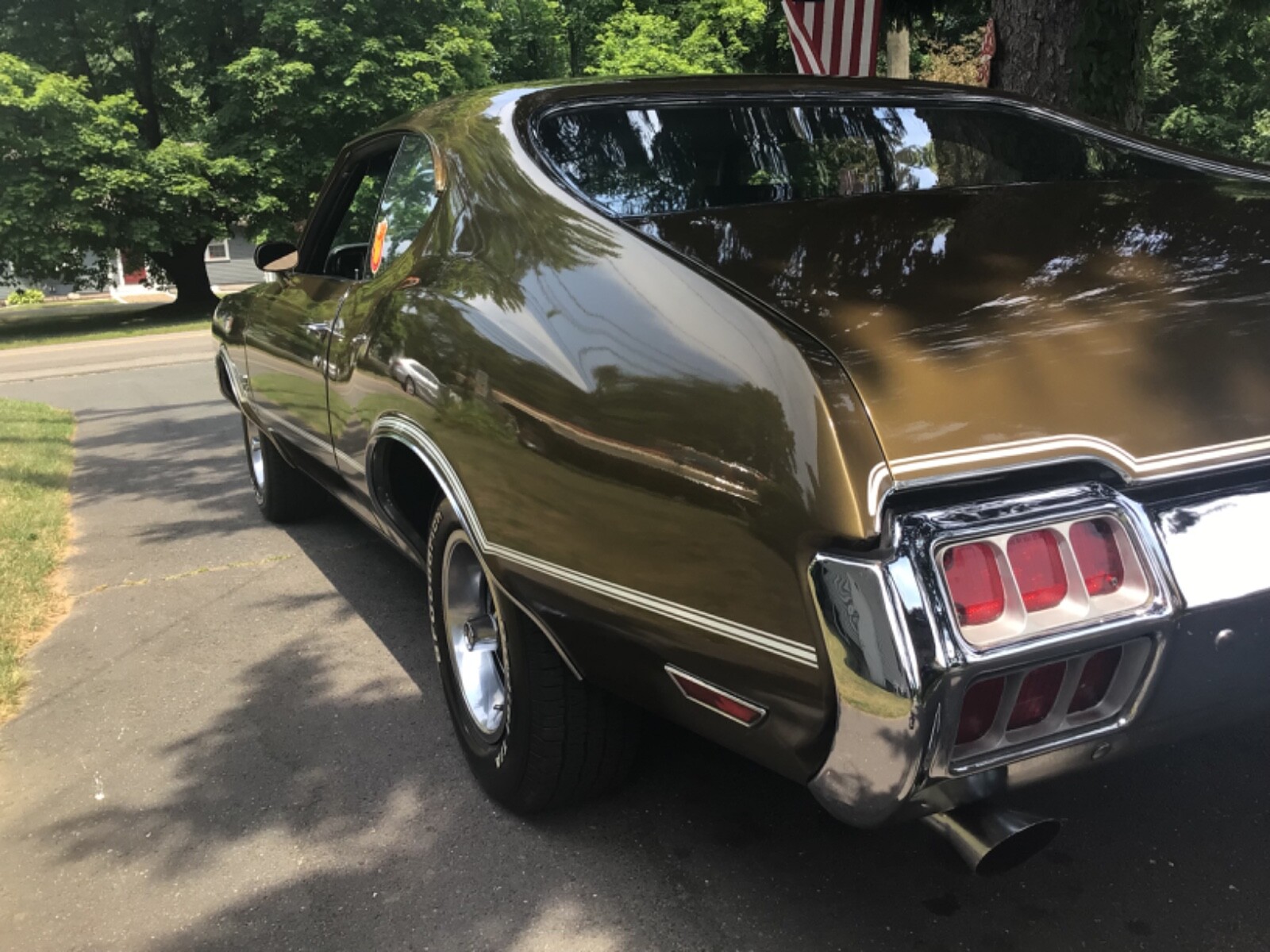 Up for auction is my 1 family owned 1972 Olds 442. This car has been in the same family since new. Has a numbers matching 350 motor that runs like a new car, TH-350 transmission that shifts spot on. Car was repainted in its original Baroque Gold color and still looks beautiful. Straight clean body, never a rotted or rusted car. Interior is in amazing original survivor condition, no rips or stains and the dash has no cracks. Underneath is spotless with no rust or rot issues and still retains its original factory undercoating. Trunk is beautiful as well and still has its original jack and spare tire. Newer BFG tires and battery. Car runs, drives, shifts and stops like it supposed to. Has just 81,000 original miles. Located in Connecticut with clean title. I relisted the car as there was some confusion on the last ad. I have plenty more pictures I can send as well. They are only original once. Happy Bidding. If you have zero feedback you must contact me or I reserve the right to cancel your bid.