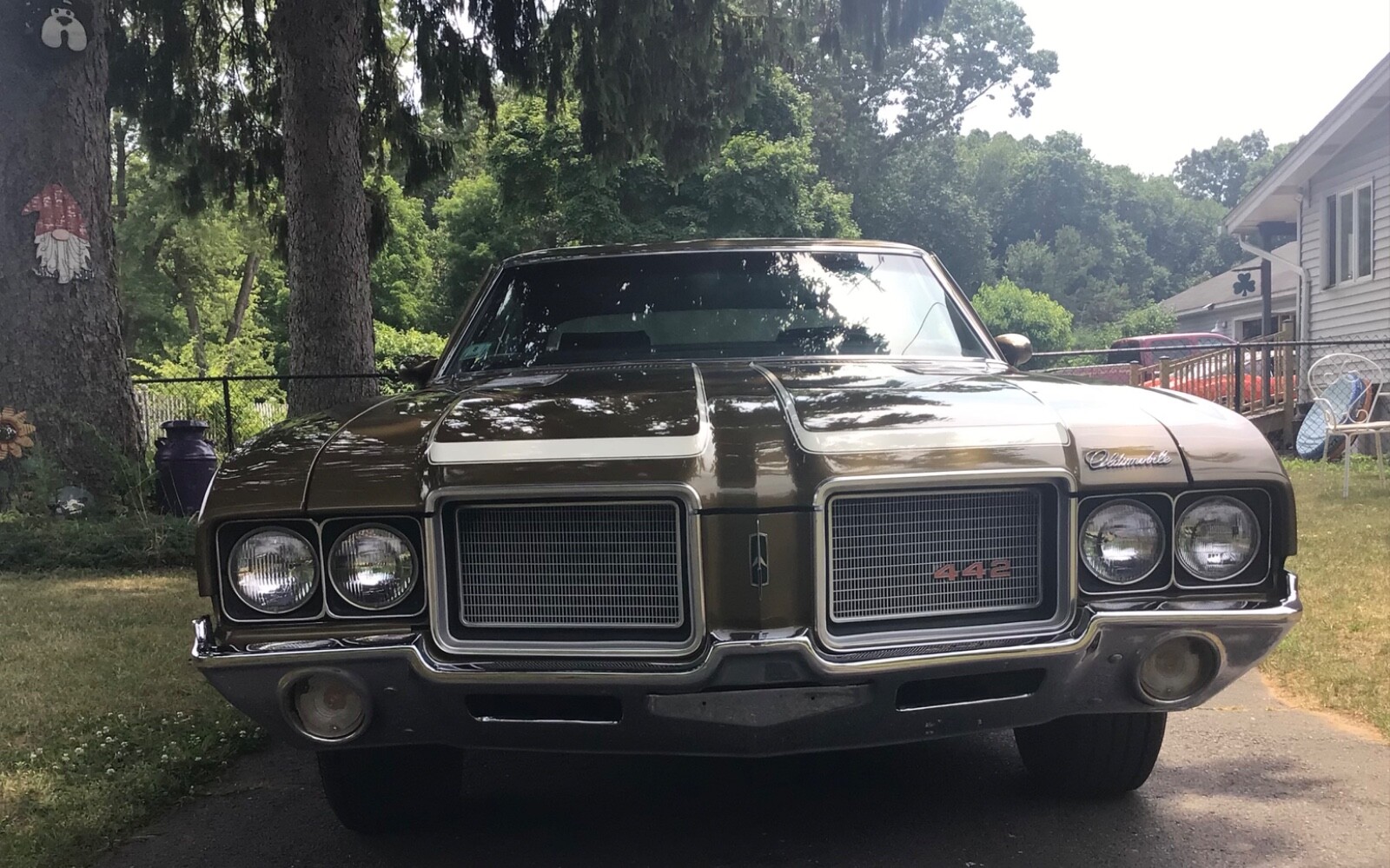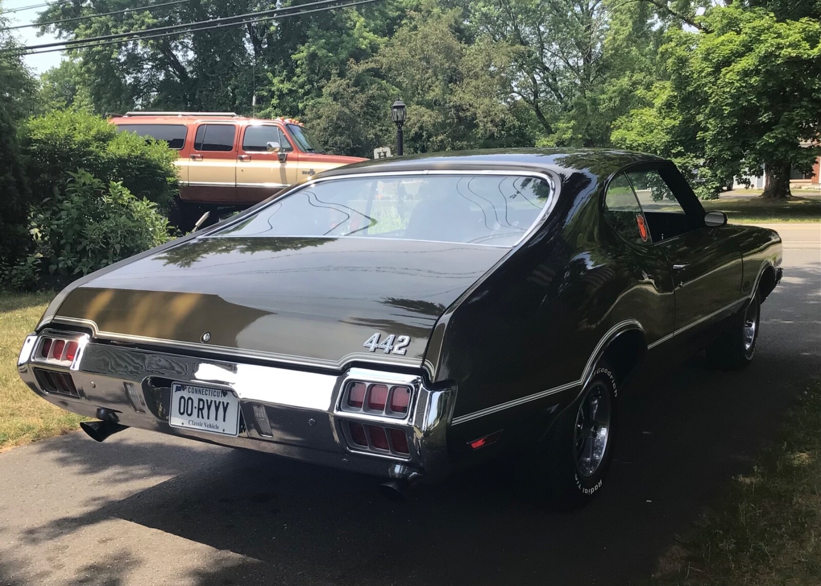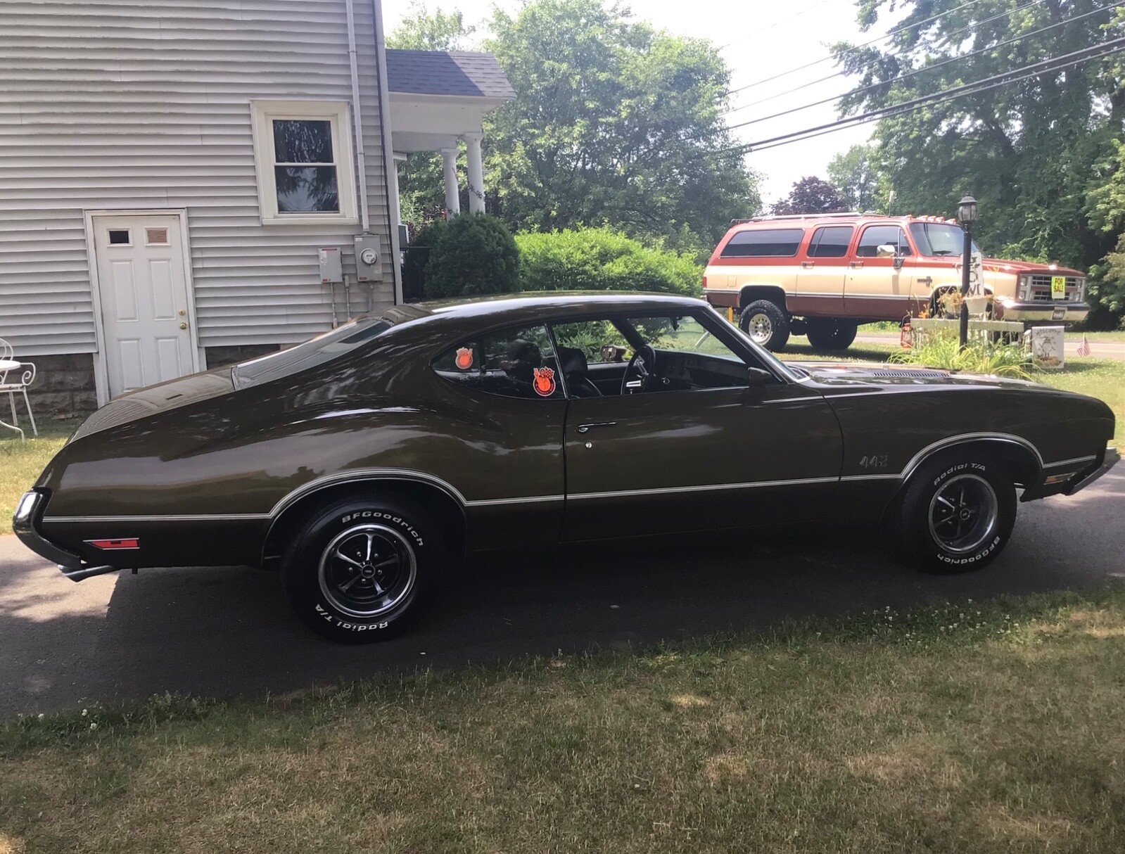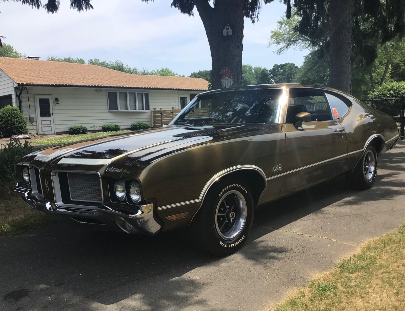 Up for auction is my 1 family owned 1972 Olds 442. This car has been in the same family since new. Has a numbers matching 350 motor that runs like a new car, TH-350 transmission that shifts spot on. Car was repainted in its original Baroque Gold color and still looks beautiful. Straight clean body, never a rotted or rusted car. Interior is in amazing original survivor condition, no rips or stains and the dash has no cracks. Underneath is spotless with no rust or rot issues and still retains its original factory undercoating. Trunk is beautiful as well and still has its original jack and spare tire. Newer BFG tires and battery. Car runs, drives, shifts and stops like it supposed to. Has just 81,000 original miles. Located in Connecticut with clean title. I relisted the car as there was some confusion on the last ad. I have plenty more pictures I can send as well. They are only original once. Happy Bidding. If you have zero feedback you must contact me or I reserve the right to cancel your bid.